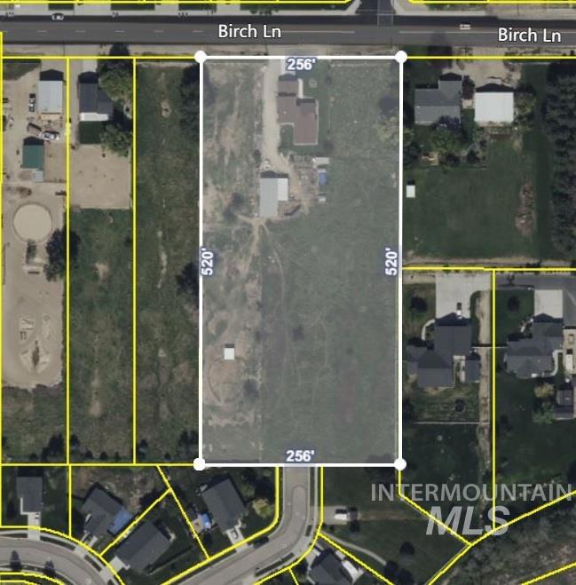 Excellent small development project close to the Idaho Center and Freeway access. 3 acres with all utilities at street with 256 feet of frontage on Birch Lane or connect at back of property in neighboring subdivision. City is open to Zoning of RD, R-4 or R-6 which would allow duplex, townhomes or lot sizes at 6,000 sq ft or greater; NO multifamily or high density currently as options.