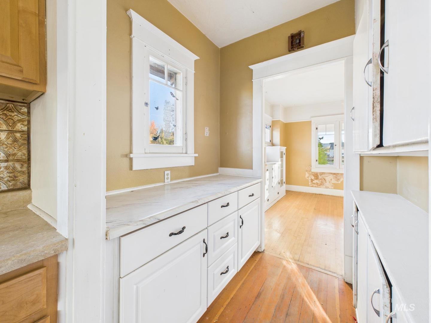 Tons of character and potential in this wonderful older home with original wood work. Hardwood floors, built-in China cabinet, butler`s pantry, breakfast nook & original crown molding. Fireplace. Detached single car garage, covered front porch, large back deck and fenced backyard with landscape curbing. Large corner lot. Bathrooms were in the process of remodeling - needs repairs to make functional. Upstairs has 1 bedroom and another room which was in the process of remodeling to make large master bathroom. Basement houses heating system and utility area. Selling as-is. This is a golden opportunity to restore this timeless traditional home.