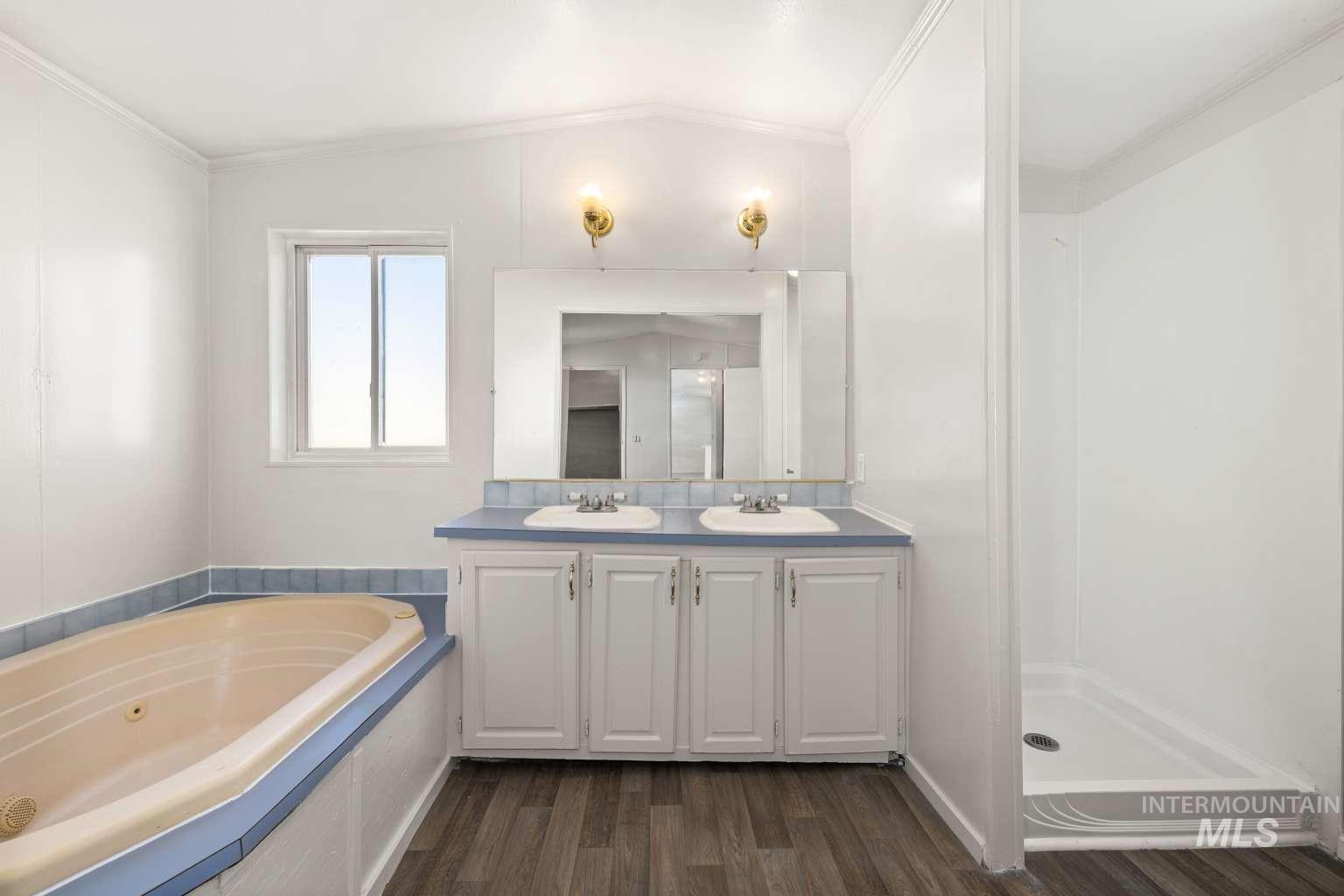 This 1994 manufactured home features 2 bedrooms and 2 bathrooms and is located in Eagle Wing Mobile Home Park in Mountain Home, Idaho. It comes equipped with a stove, dishwasher, refrigerator, and convenient washer/dryer hook-ups. The home also includes central heat and A/C for year-round comfort, plus off-street parking for added convenience.