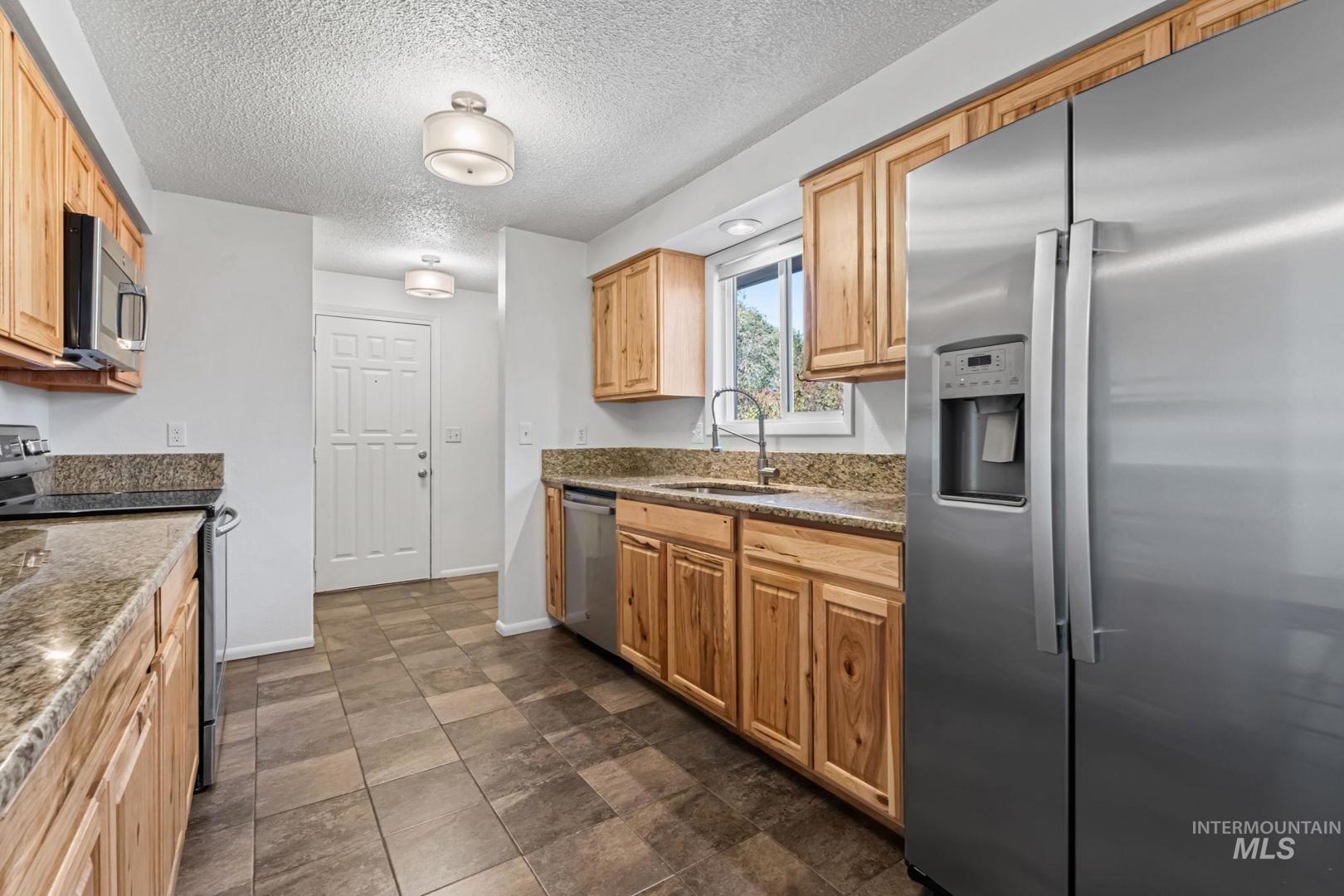 Discover a unique opportunity to own nearly half an acre in a prime Kuna location, perfect for building your dream shop, parking all your toys, or exploring investment potential. Zoned R-6, this property offers the potential to split the lot and build another home. Step inside to a spacious, nearly 2,400 sq ft residence featuring 4 bedrooms, 2 full baths, a remodeled kitchen with granite counters and stainless steel appliances, and multiple living spaces including a rec room and pool table area (pool table included!). Recent upgrades include 2 brand new mini splits, all new windows 2 yrs ago, newer water heater, a 2018 roof, heated tile floors, and more. Enjoy your private backyard oasis with mature landscaping, an above-ground pool, a huge garden, fruit trees, storage shed, RV parking, and extra elbow room thanks to the unopened right of way on two sides. Full irrigation water (flood and sprinklers) keeps everything lush. Experience small-town charm with easy access to Boise (just 30 minutes to downtown or the airport), and an easy walk to downtown Kuna, parks, schools, restaurants, shopping, the library, and the greenbelt trail along popular Indian Creek, perfect for summer floats, swimming, and fishing. Don’t miss this rare chance; lots like this are hard to find!