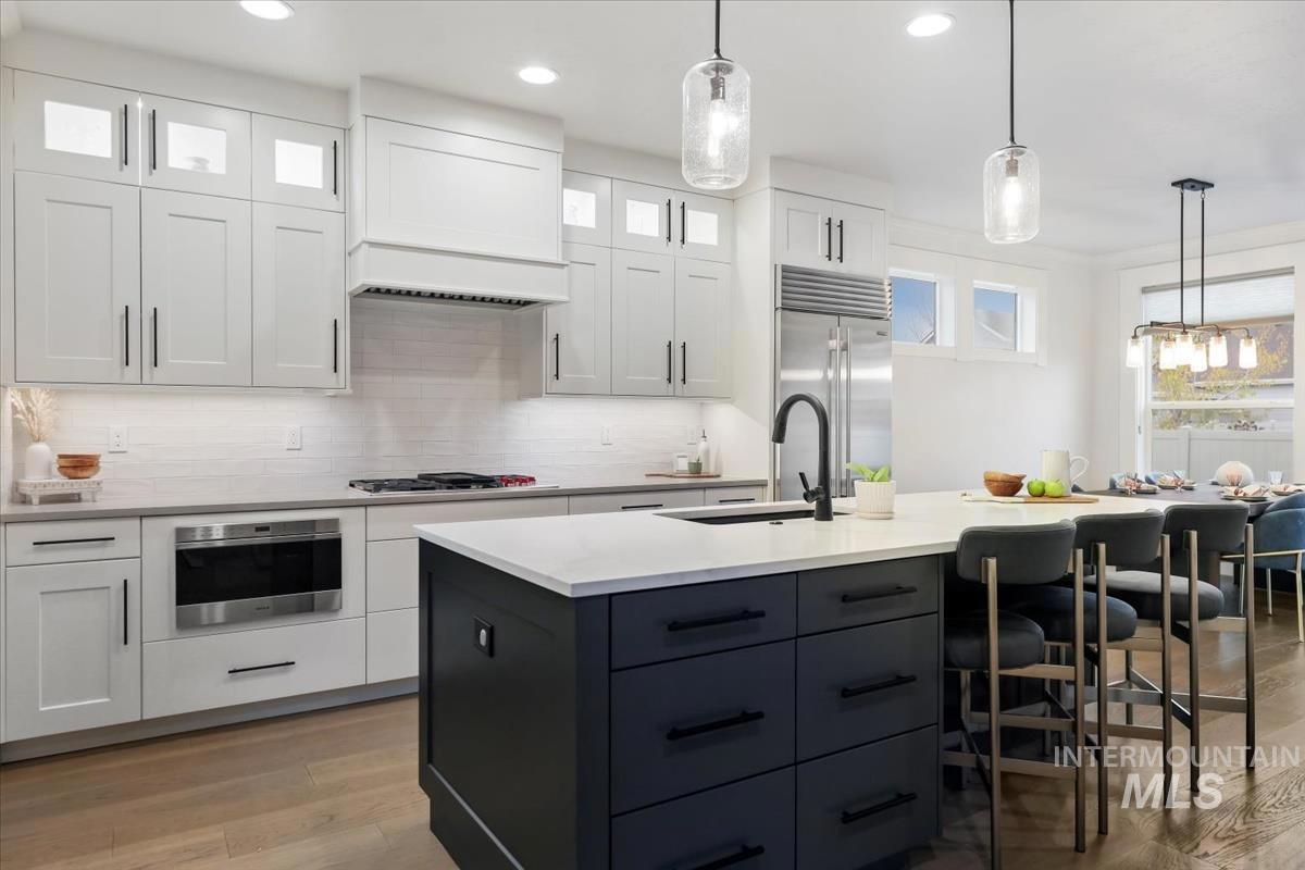 Nestled in a sought after neighborhood this 5 bedroom+office home built by Venta Homes known for their highest-quality craftsmanship is beautifully designed & blends luxury, functionality, and comfort in every detail. The layout is perfectly planned with oversized bedrooms, spacious living areas, and a seamless, thoughtful flow throughout. Spa like primary suite features dual vanities, soaker tub & walk in shower. The chef’s kitchen features a Wolf 5-burner gas cooktop, double wall ovens, and a Sub-Zero refrigerator. Custom cabinetry extends to the ceiling with under-cabinet lighting, dovetail construction, and soft-close drawers. Enjoy pull-out drawers beneath the coffee bar, walk in pantry with appliance bar, outlets built into the island cabinetry, and a touchless faucet where elegance meets practicality. High-end finishes include quartz surfaces, hardwood and tile flooring & dramatic millwork. The extra-large 4-car garage is finished, insulated, and epoxied offering a truly multi-functional space ideal for a home gym, office, hobby area, or toy storage. Expansive backyard ideal for entertaining, garden space or chickens if that`s your thing! Located minutes from The Village this home delivers the best of design, quality, and convenience. HERS rated for energy efficiency.