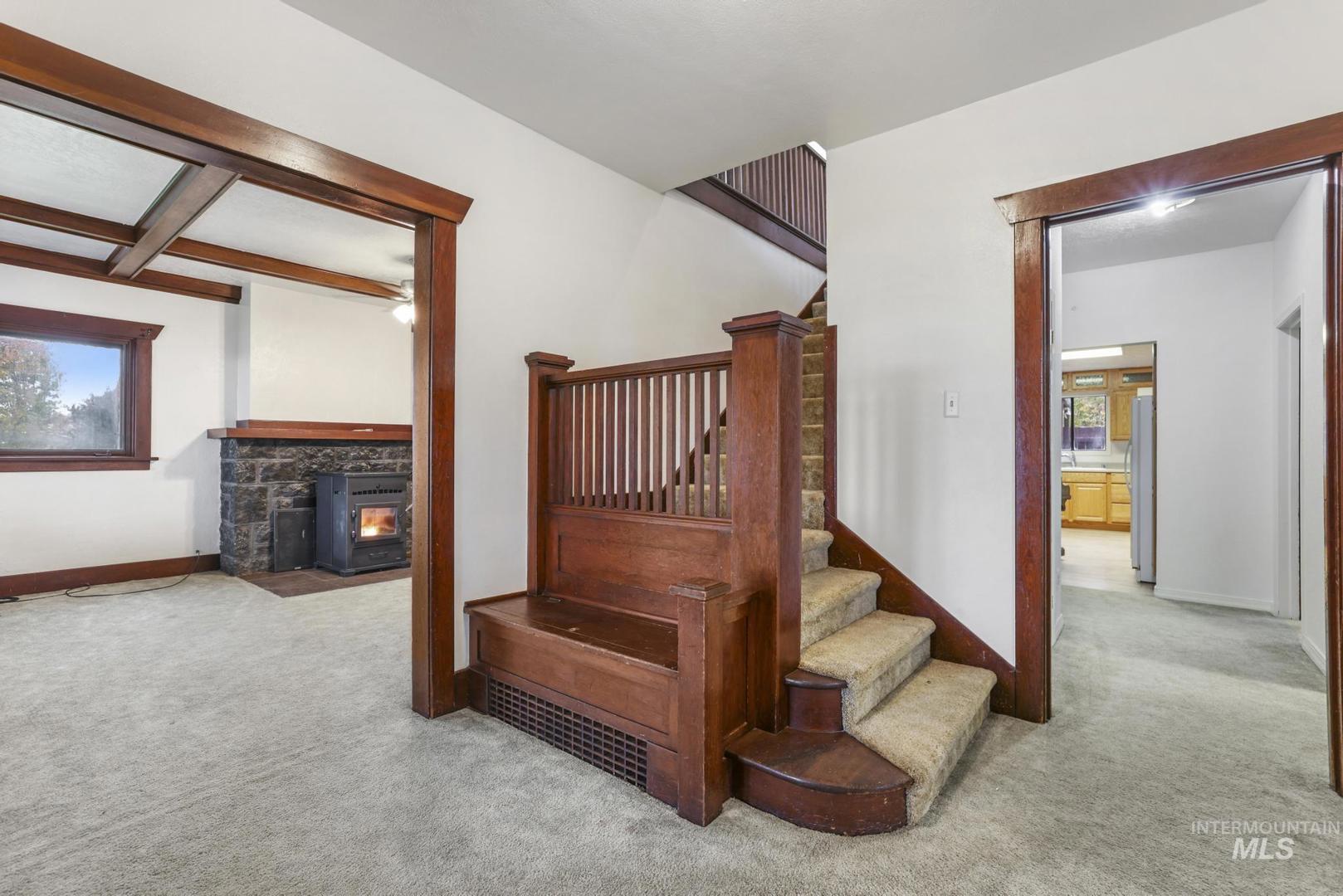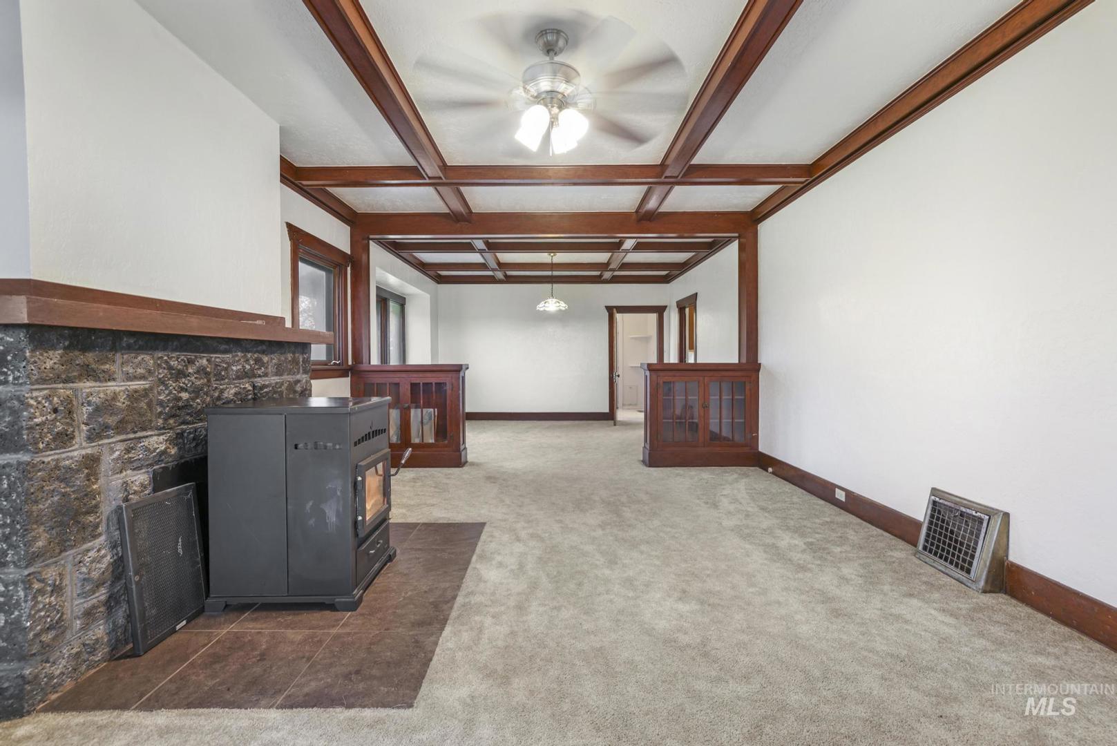 Welcome to 476 E 200 S—a picturesque property where classic character meets wide-open living. Nestled on over an acre of lush green space and backing to the golf course, this 2,252 sq ft Craftsman-inspired home combines vintage charm with functional space. Inside, warm wood trim, built-in cabinetry, and coffered ceilings set a tone of craftsmanship rarely found today. The spacious living room centers around a pellet stove framed by stone, offering cozy evenings in every season. The main-level office provides excellent flexibility as a guest suite or potential fourth bedroom, complete with a sunny window-seat reading nook. Outside, mature pines frame the home’s covered porch, while the expansive lawn and surrounding trees create a sense of privacy and peace. The 36` x 40` detached garage/shop offers endless possibilities—vehicle storage, workshop, or space for outdoor gear. And with no CC&Rs, you’ll have the freedom to garden, park your RV, or expand as you wish. All this, just minutes from local conveniences yet surrounded by nature and open views. Whether you’re seeking serenity, space, or small-town charm, this property truly has it all.