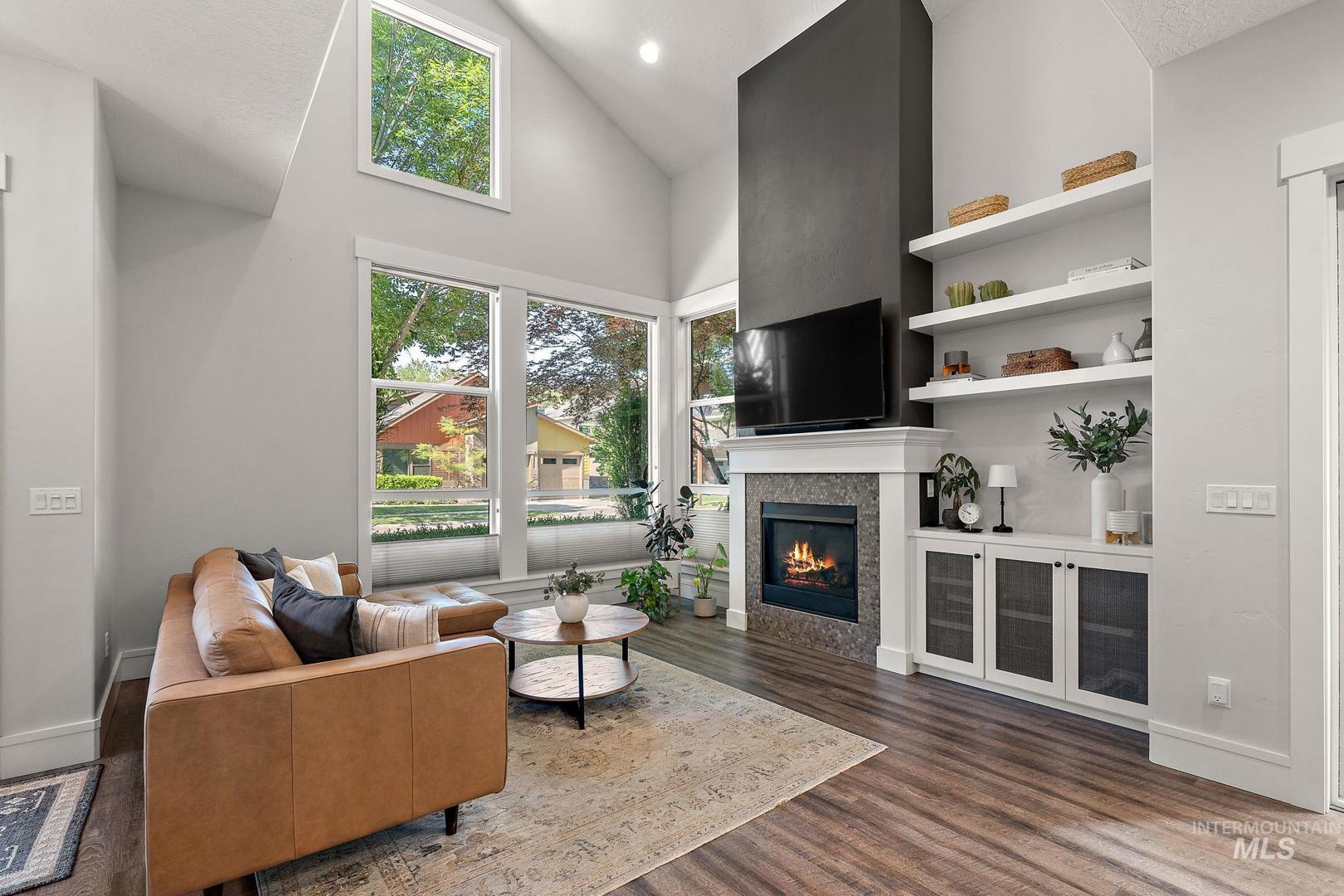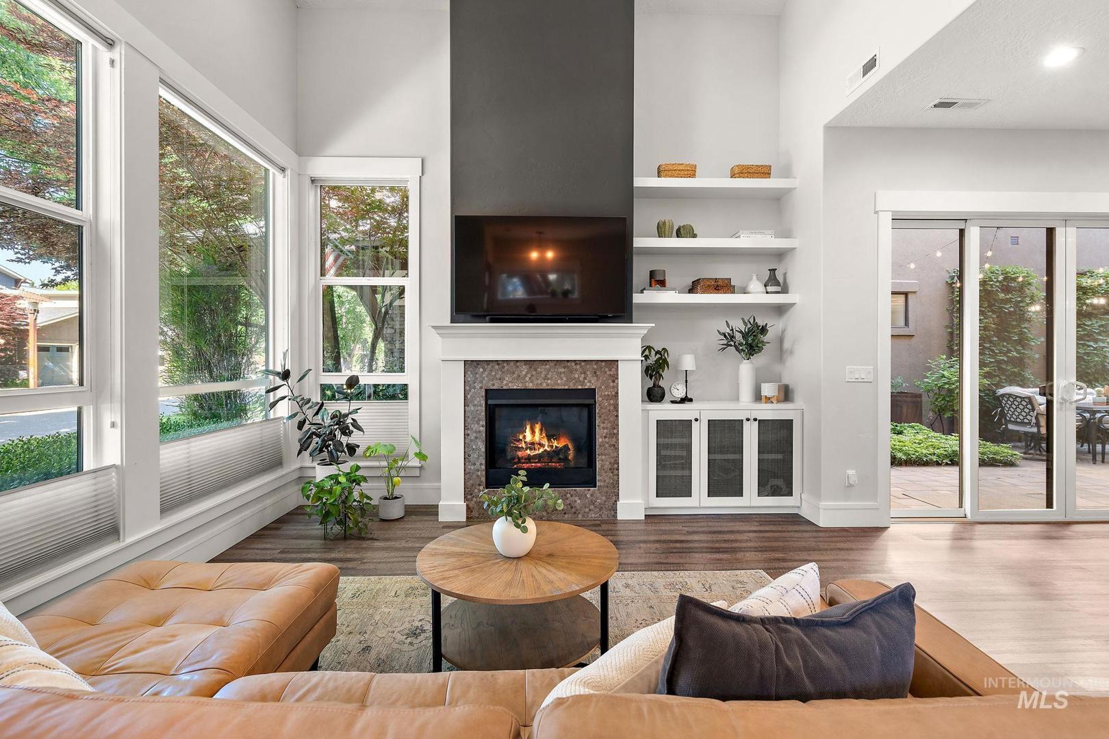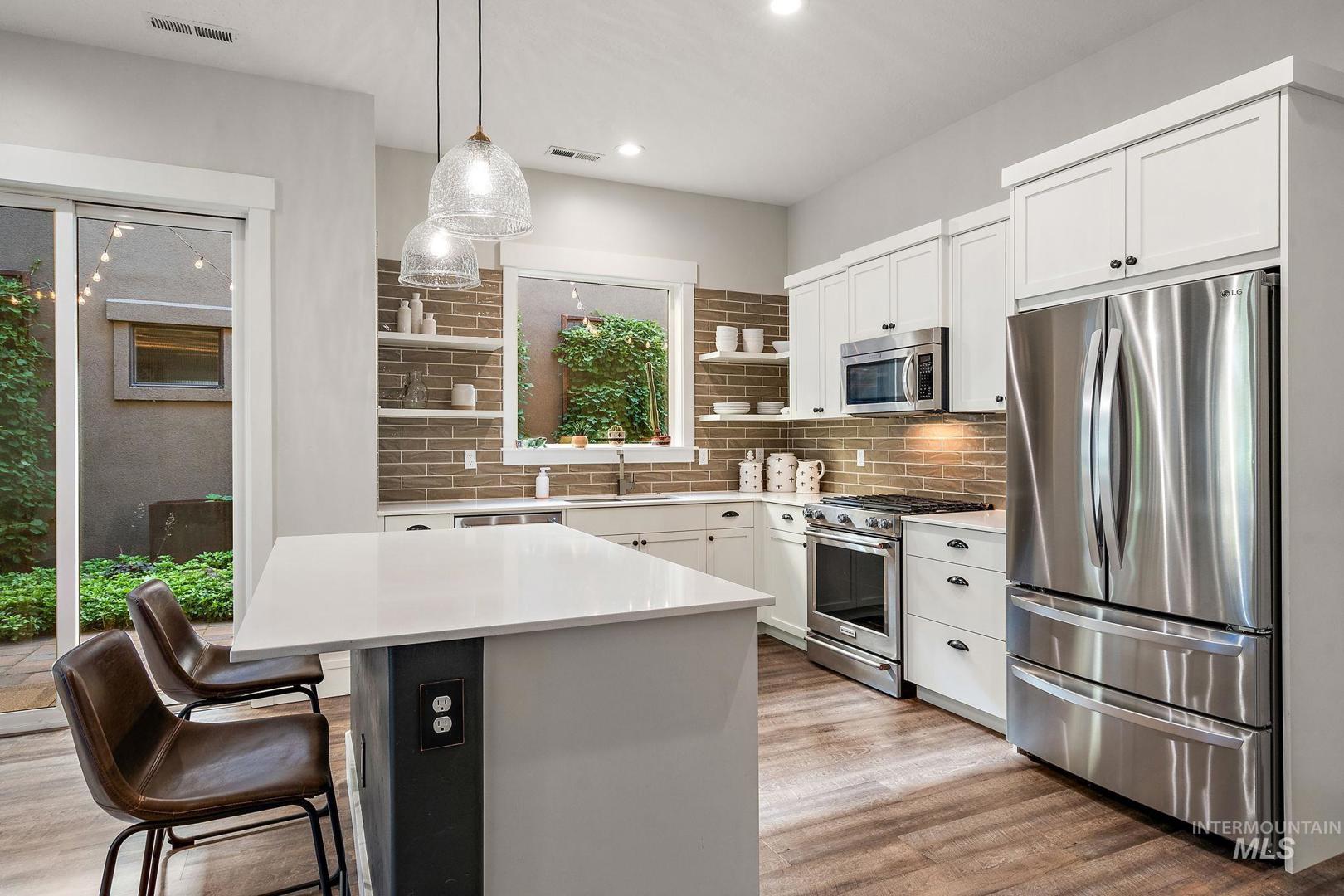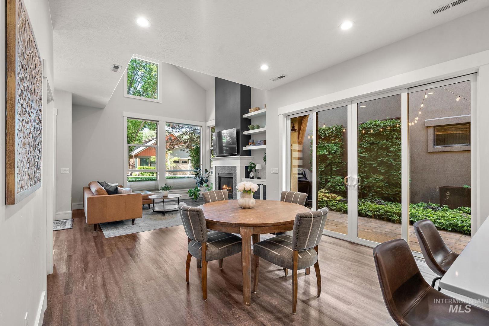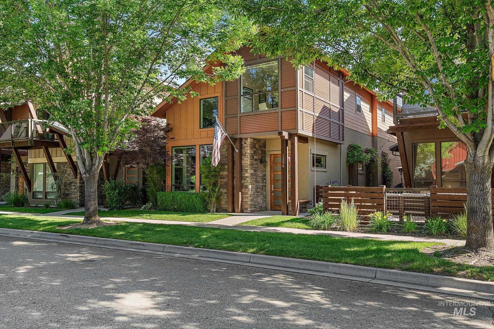 Welcome home to the highly desired River District! This beautifully updated 3-bed, 2-bath carriage-style home with an office offers comfort, style, and lasting value in one of the best locations near the Boise River and greenbelt. Enjoy resort-style living with access to the community pool, clubhouse, and private fishing pond—perfect for relaxation and recreation. The open-concept design features soaring ceilings, expansive windows, and a modern kitchen with quartz countertops, subway tile backsplash, and a walk-in pantry. The inviting great room with a gas fireplace opens to a covered patio and private courtyard, ideal for year-round entertaining and quiet evenings outdoors. Upstairs, the spacious primary suite includes a tiled shower, soaking tub, dual vanities, and a generous walk-in closet. Two additional bedrooms and a bright office/bonus room offer flexibility for family, guests, or remote work. Recent updates include fresh interior paint, LVP flooring, and new carpet. With HOA-maintained landscaping, up/down blinds throughout, and an extra-deep garage with alley access, this home combines modern convenience with low-maintenance living. Close to parks, shopping, and dining—this is the perfect place to settle in and enjoy Boise living at its best.