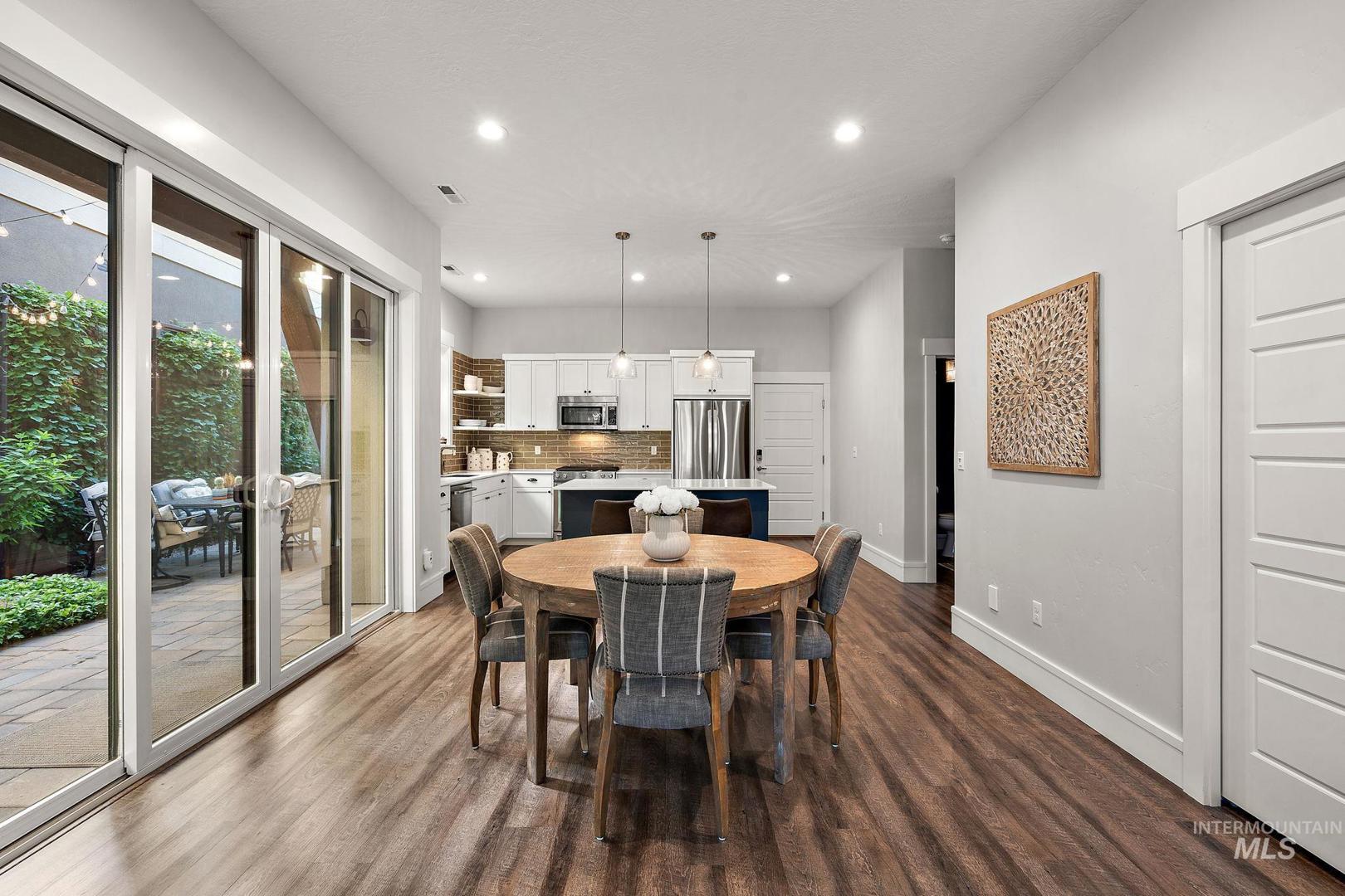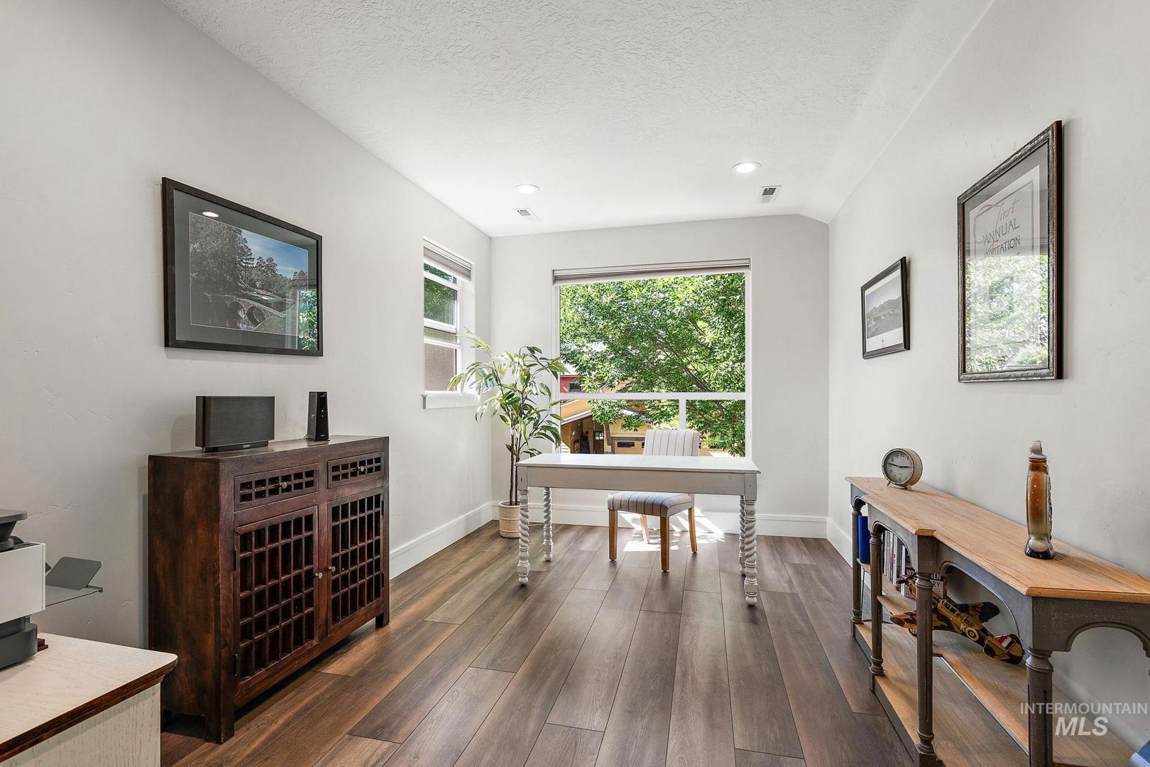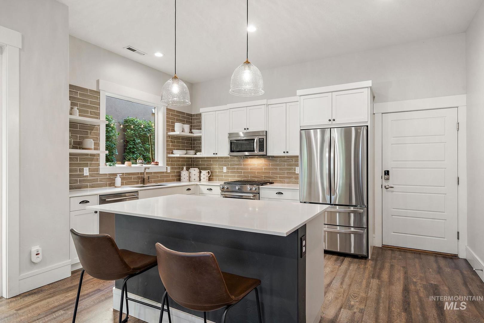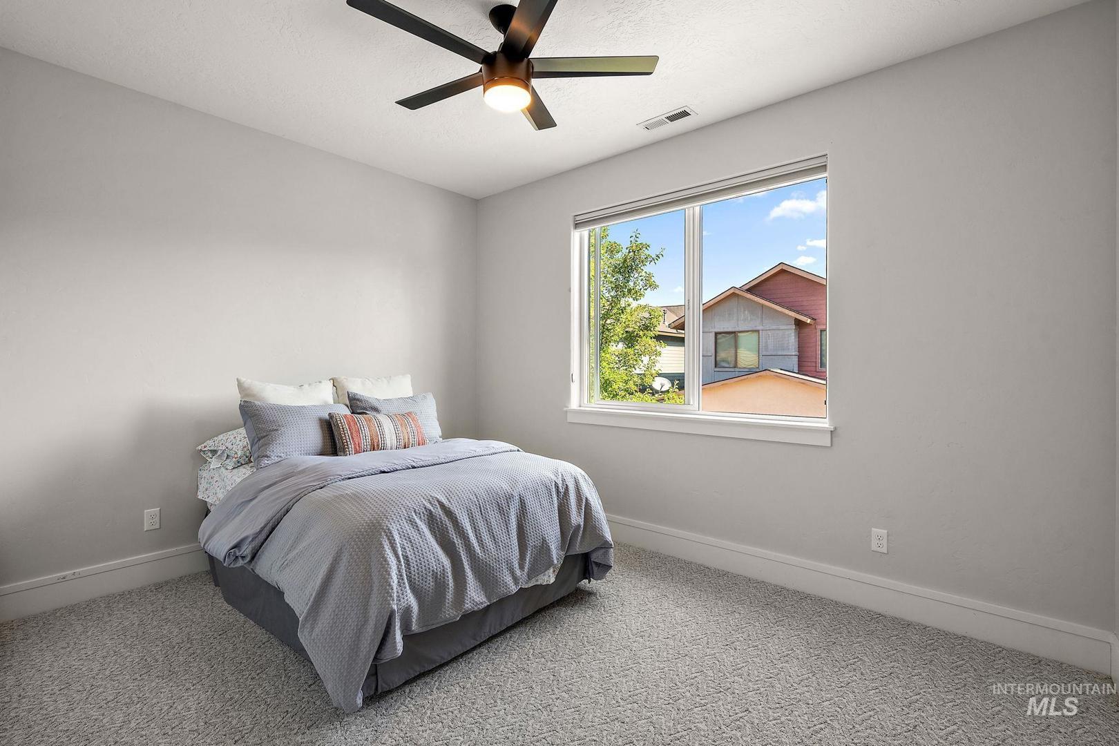 Welcome home to the highly desired River District! This beautifully updated 3-bed, 2-bath carriage-style home with an office offers comfort, style, and lasting value in one of the best locations near the Boise River and greenbelt. Enjoy resort-style living with access to the community pool, clubhouse, and private fishing pond—perfect for relaxation and recreation. The open-concept design features soaring ceilings, expansive windows, and a modern kitchen with quartz countertops, subway tile backsplash, and a walk-in pantry. The inviting great room with a gas fireplace opens to a covered patio and private courtyard, ideal for year-round entertaining and quiet evenings outdoors. Upstairs, the spacious primary suite includes a tiled shower, soaking tub, dual vanities, and a generous walk-in closet. Two additional bedrooms and a bright office/bonus room offer flexibility for family, guests, or remote work. Recent updates include fresh interior paint, LVP flooring, and new carpet. With HOA-maintained landscaping, up/down blinds throughout, and an extra-deep garage with alley access, this home combines modern convenience with low-maintenance living. Close to parks, shopping, and dining—this is the perfect place to settle in and enjoy Boise living at its best.