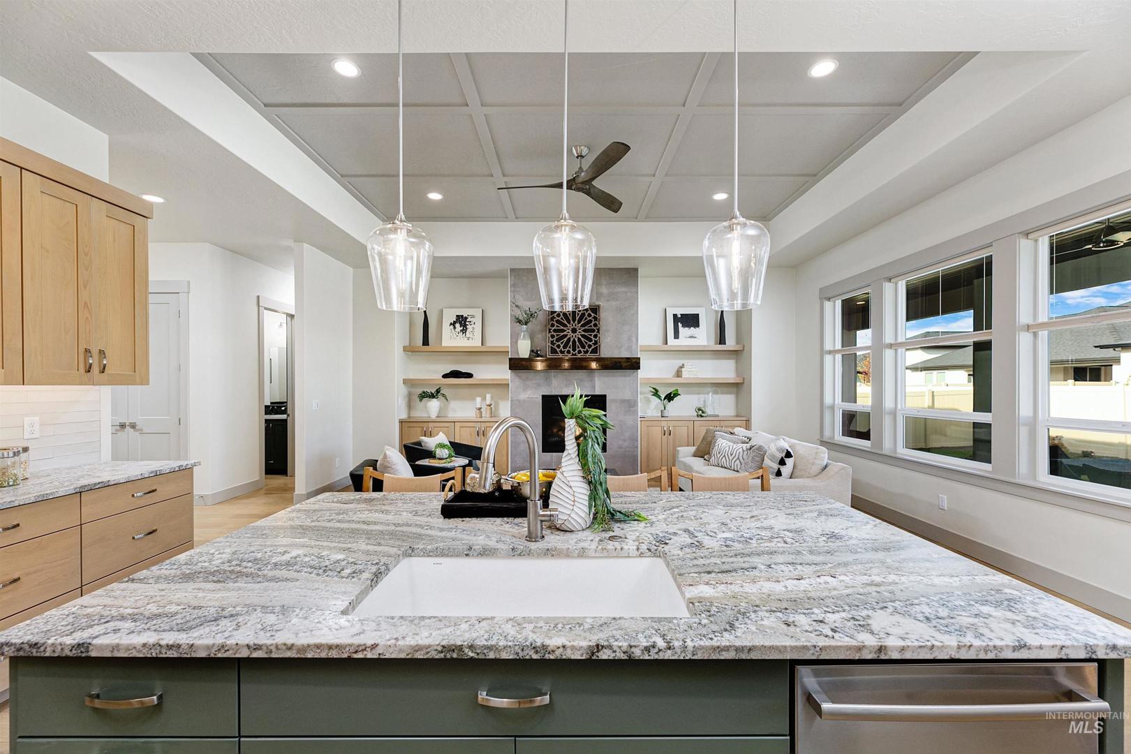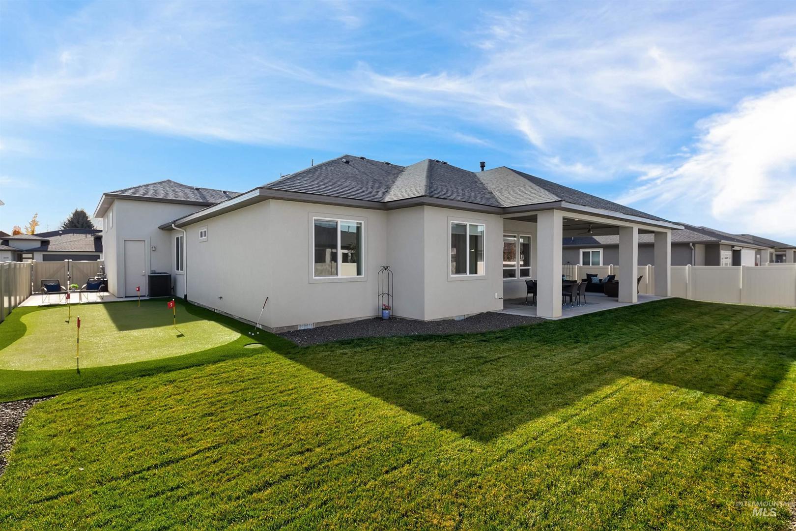 Beautiful, better than new home with 3 bedrooms, an office, and 2.5 bathrooms in desirable Whitecliffe sub. The spacious great room impresses with its 11’ coffered ceiling, custom built-ins, and inviting gas fireplace. The deluxe kitchen offers a walk-in pantry, soft close custom cabinets, a 7’ granite island, and premium Bosch appliances. The luxurious primary suite showcases 10’ ceilings, abundant natural light, a spa-like bathroom with dual vanities, tile shower, freestanding tub, and expansive walk-in closet. The backyard retreat features a huge covered patio and 38’x16’ four-hole putting green. Quality continues in the oversized garage with the durable epoxy floor, large 2 car bay, and 29’ boat bay with 12’x12’ door. Conveniently located near schools, shopping, restaurants and parks, this home offers exceptional quality and lifestyle.