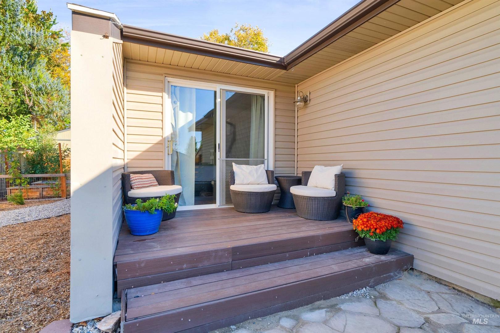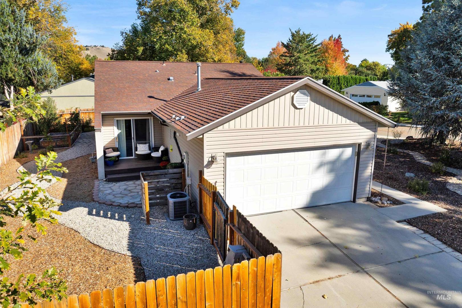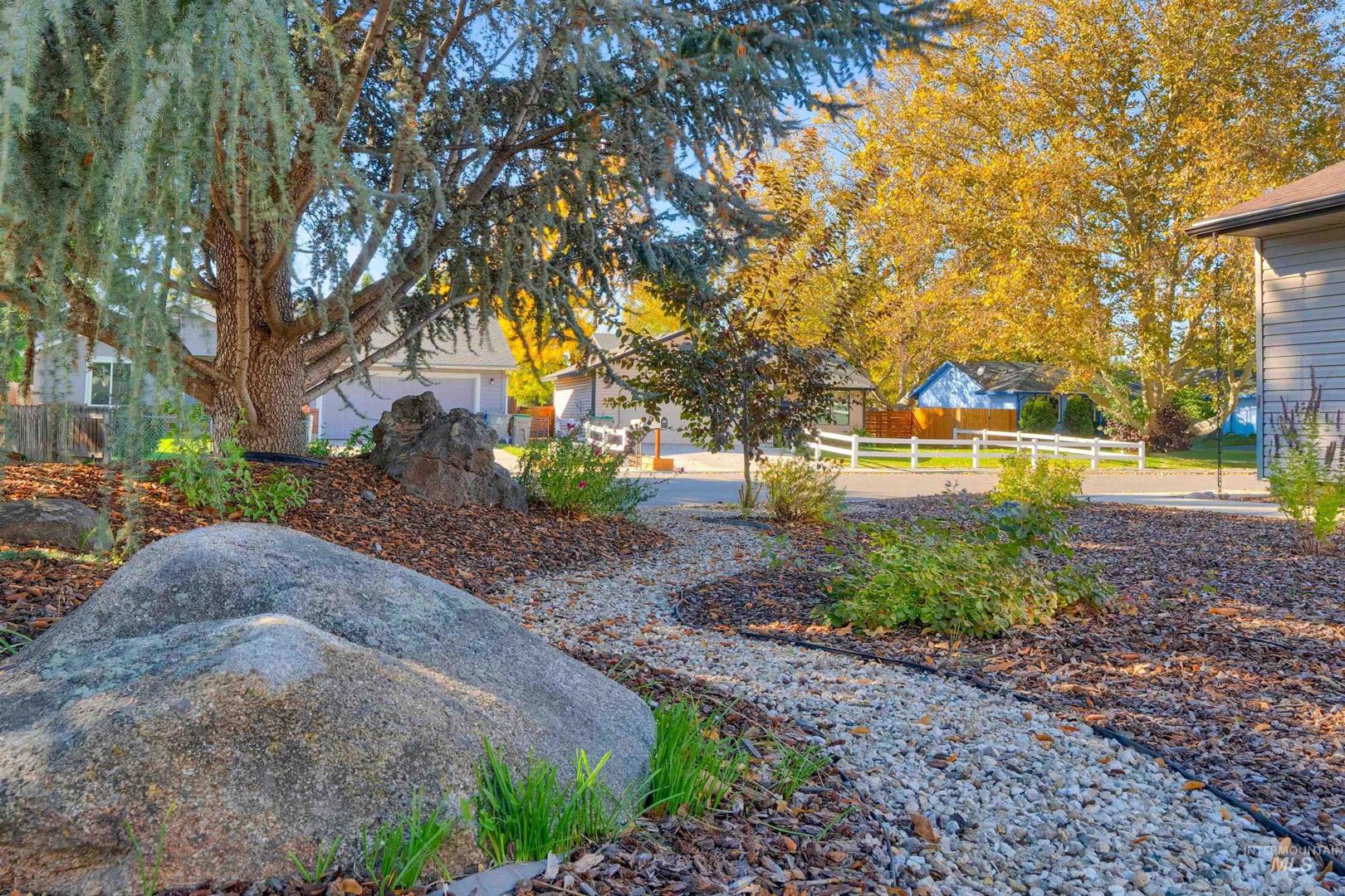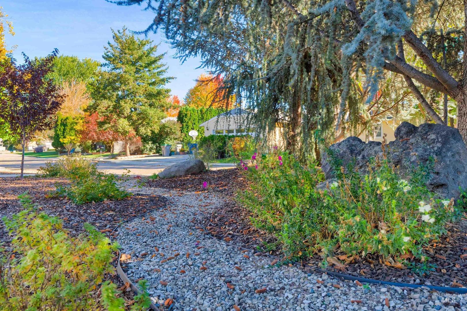 Welcome to your retreat in the desirable Collister area of Northwest Boise! Classic charm meets modern luxury in this thoughtfully renovated home. Situated on a corner lot with low- maintenance, mature landscaping, you are invited to a life of effortless indoor-outdoor living. Step into a light-filled interior where the living room boasts vaulted ceilings and a stunning floor-to-ceiling, stone-tiled gas fireplace for a sense of welcoming warmth. Be inspired to create in a kitchen with gleaming quartz countertops, plentiful cabinetry, sleek stainless-steel appliances, and a walk-in pantry. Beautiful custom lighting in the kitchen and dining room elevates the space. The primary suite escape offers a peaceful covered deck with direct access to the private backyard coupled with an ensuite bathroom and spacious walk-in closet. Both bathrooms have been completely refreshed with new cabinetry, tile, hardware, and quartz countertops. Additional interior renovations include warm solid surface floors and custom baseboards throughout, two-inch wood blinds, and interior paint. Outside, your backyard oasis awaits with an expansive patio deck perfect for hosting gatherings, and a quaint stone path leading you to a dedicated garden area. The oversized two car garage features additional storage. More than a home- a lifestyle, offering easy access to the Boise foothills and local amenities.