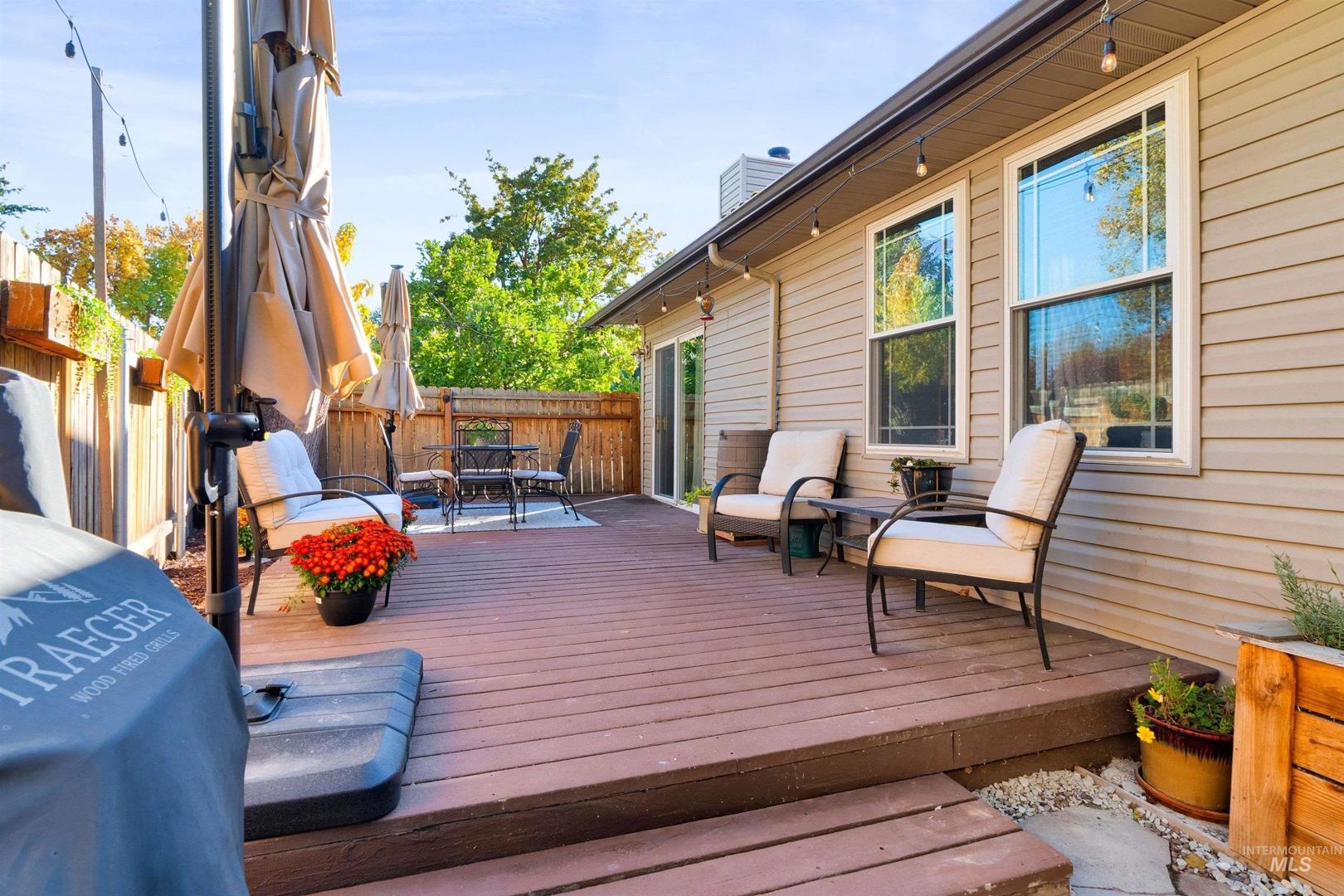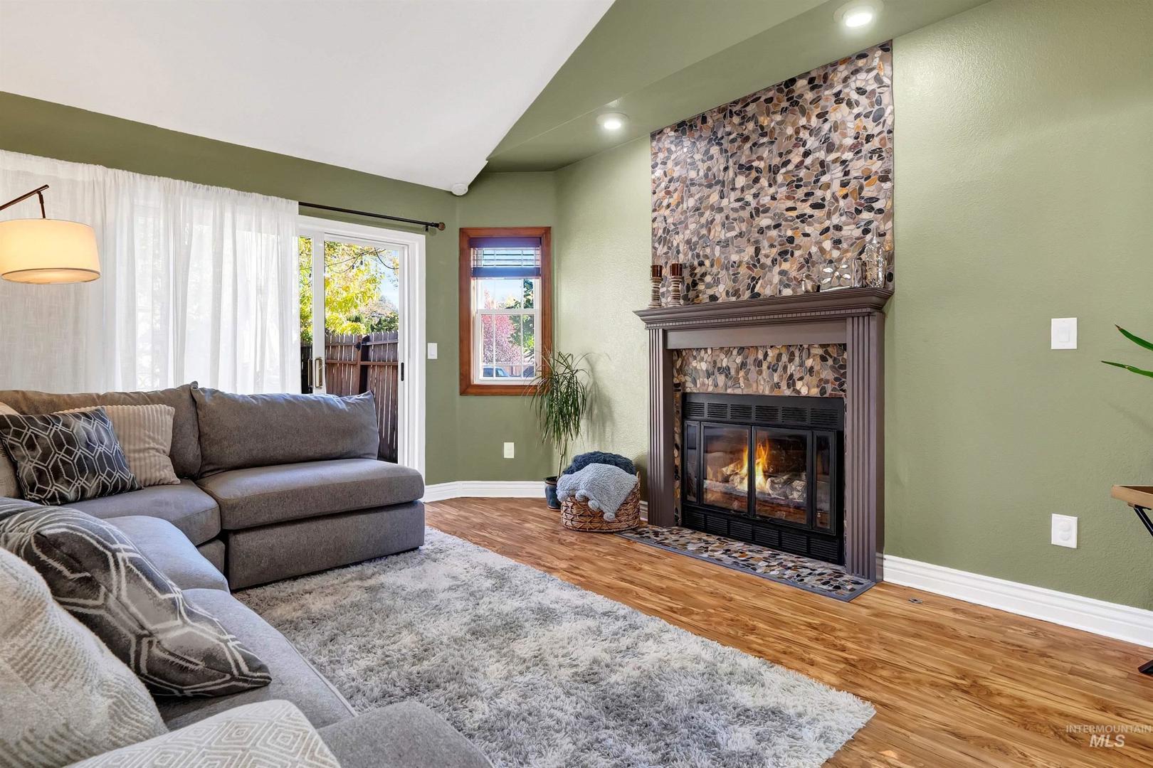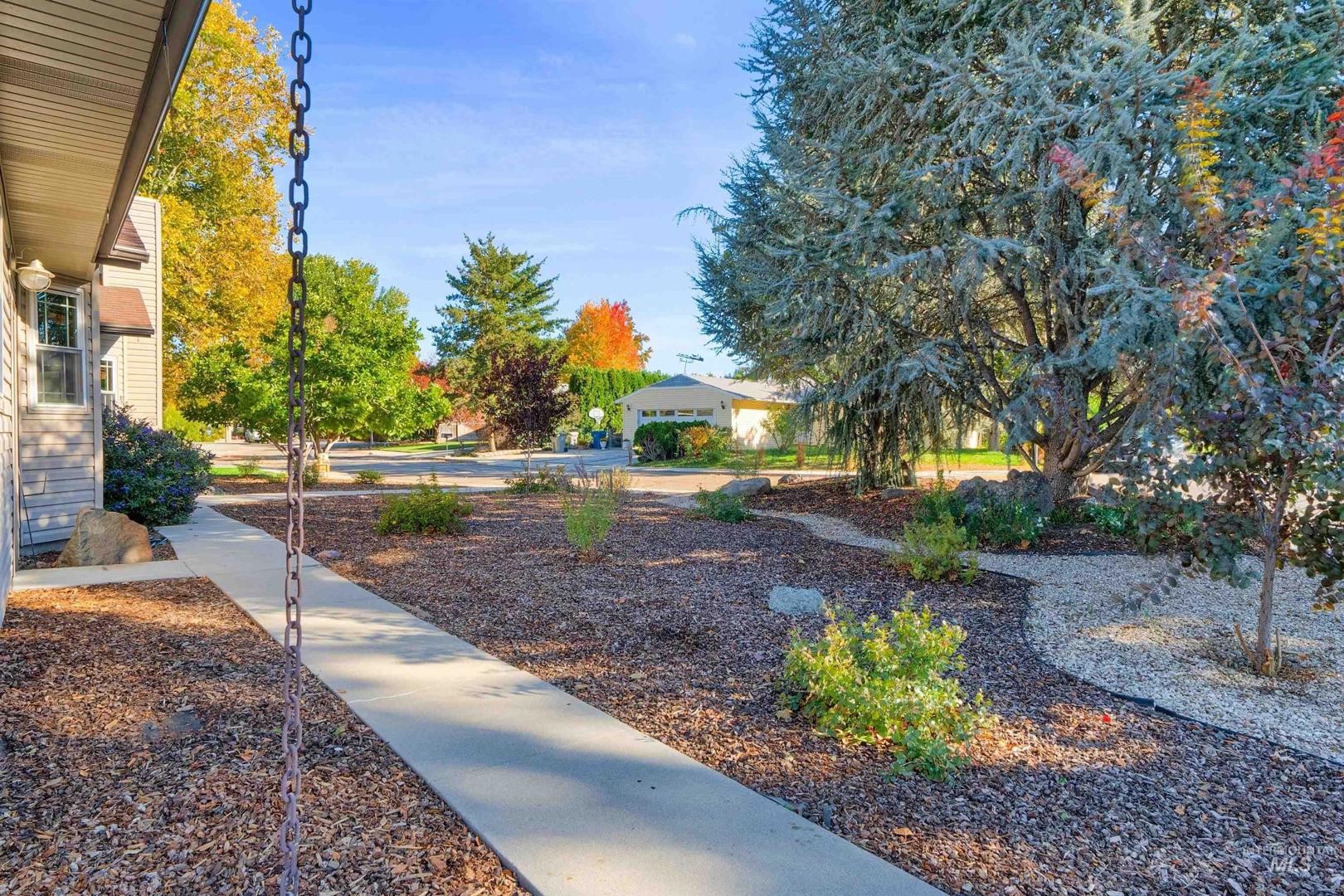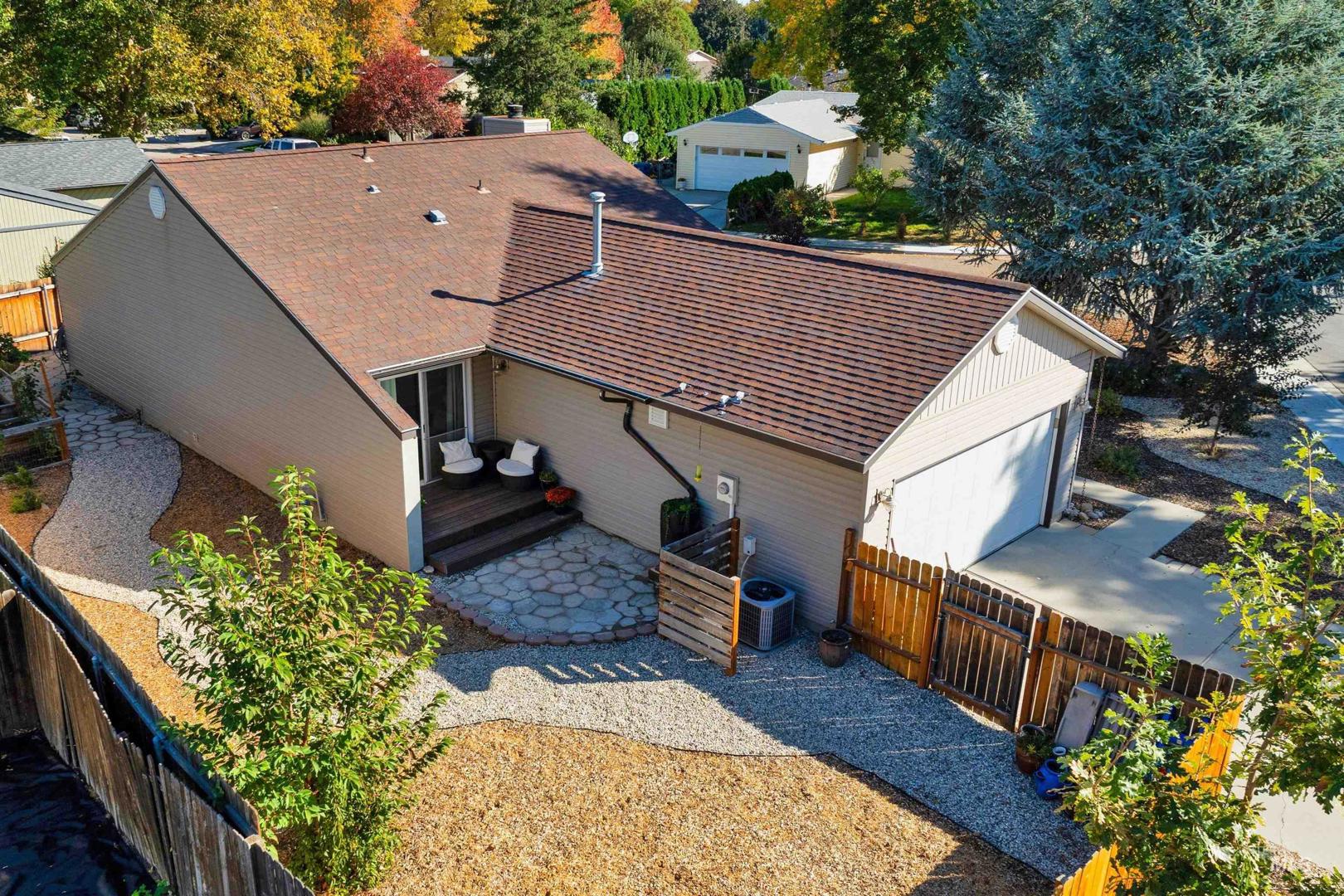 Welcome to your retreat in the desirable Collister area of Northwest Boise! Classic charm meets modern luxury in this thoughtfully renovated home. Situated on a corner lot with low- maintenance, mature landscaping, you are invited to a life of effortless indoor-outdoor living. Step into a light-filled interior where the living room boasts vaulted ceilings and a stunning floor-to-ceiling, stone-tiled gas fireplace for a sense of welcoming warmth. Be inspired to create in a kitchen with gleaming quartz countertops, plentiful cabinetry, sleek stainless-steel appliances, and a walk-in pantry. Beautiful custom lighting in the kitchen and dining room elevates the space. The primary suite escape offers a peaceful covered deck with direct access to the private backyard coupled with an ensuite bathroom and spacious walk-in closet. Both bathrooms have been completely refreshed with new cabinetry, tile, hardware, and quartz countertops. Additional interior renovations include warm solid surface floors and custom baseboards throughout, two-inch wood blinds, and interior paint. Outside, your backyard oasis awaits with an expansive patio deck perfect for hosting gatherings, and a quaint stone path leading you to a dedicated garden area. The oversized two car garage features additional storage. More than a home- a lifestyle, offering easy access to the Boise foothills and local amenities.