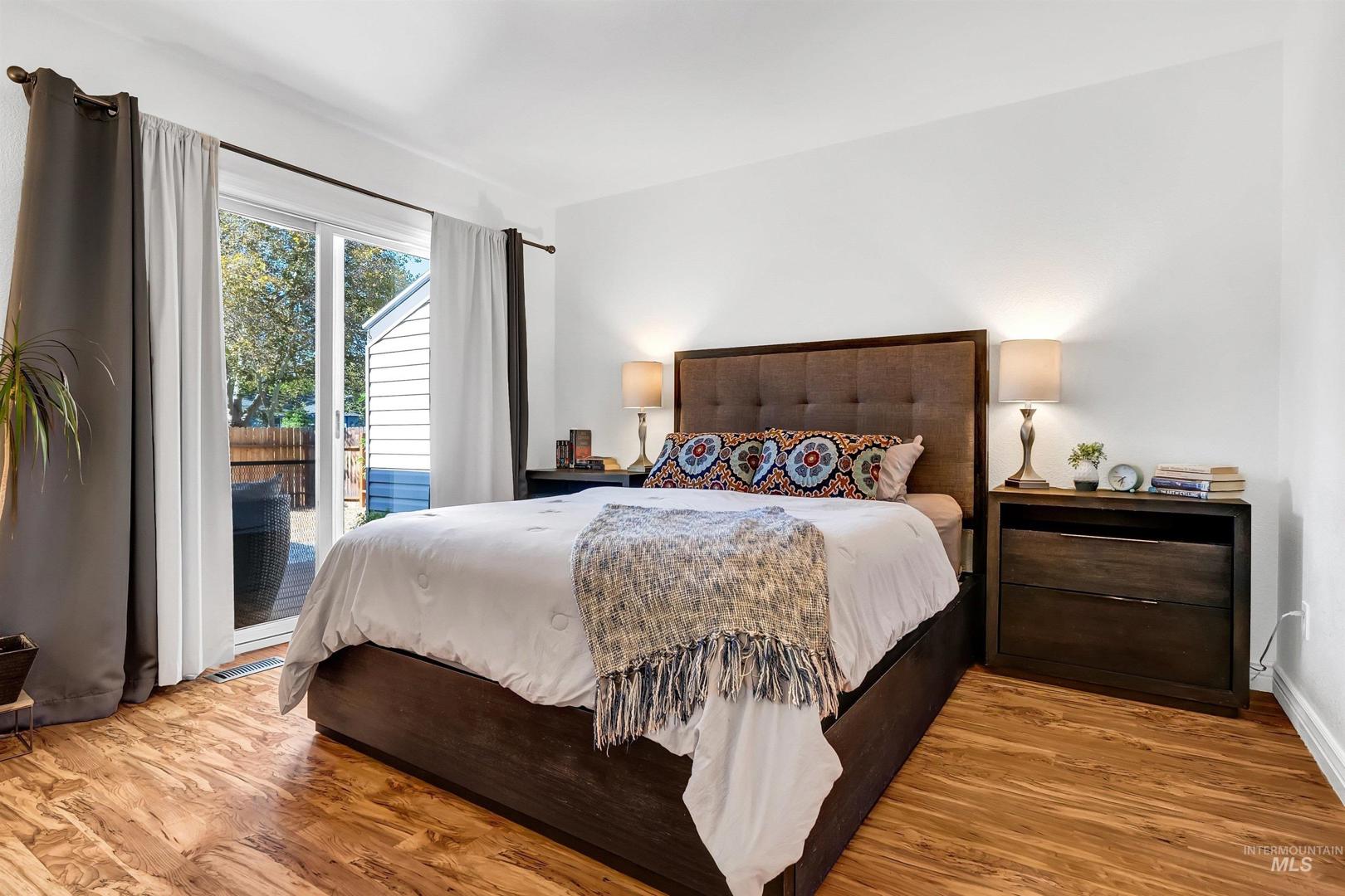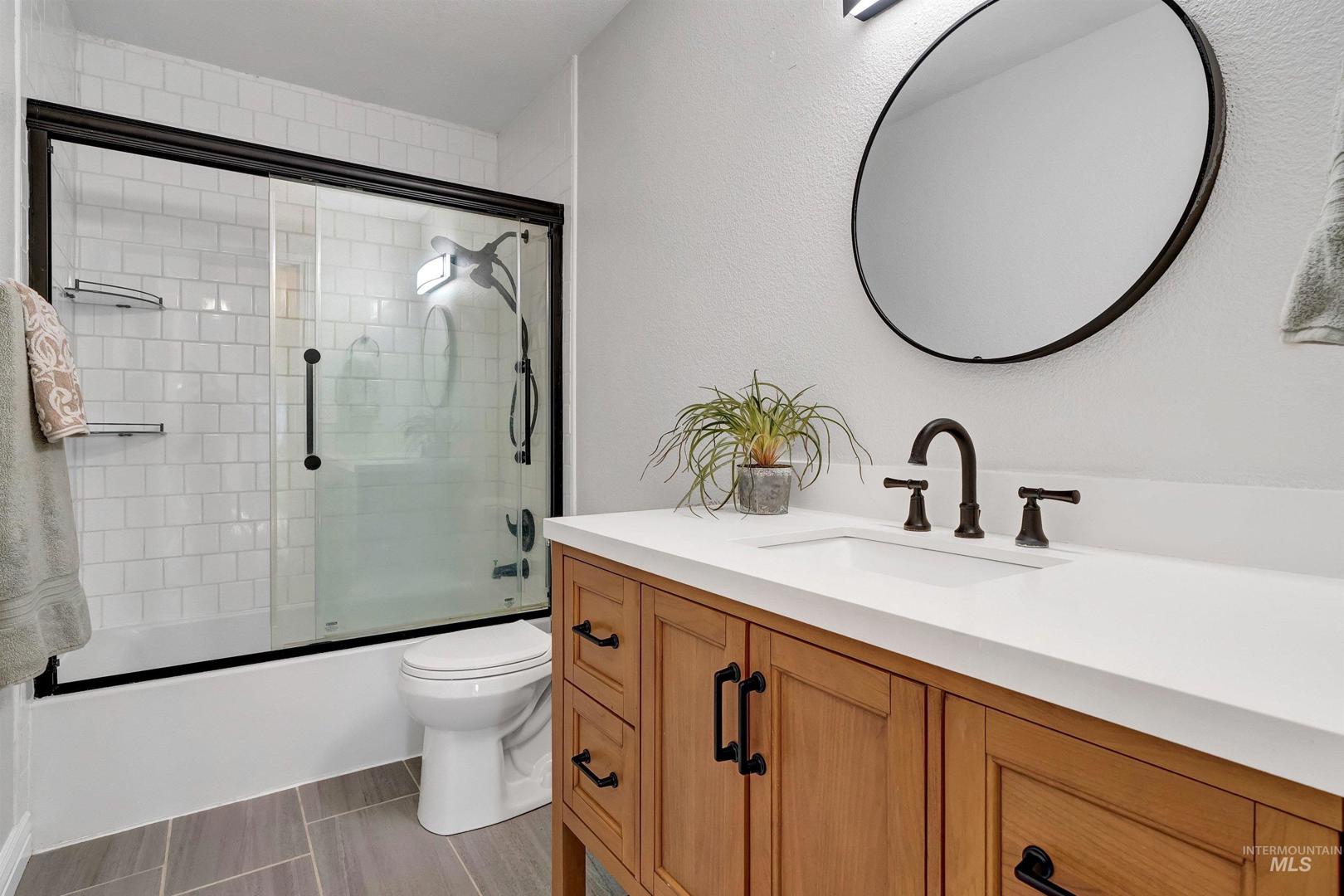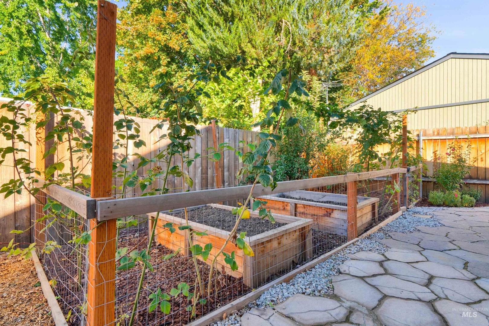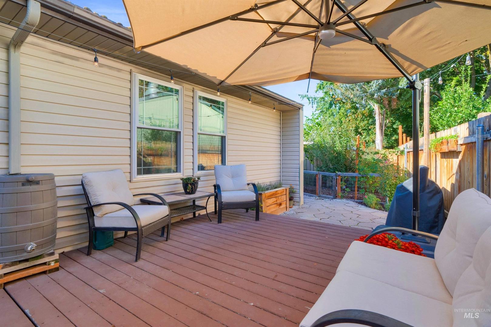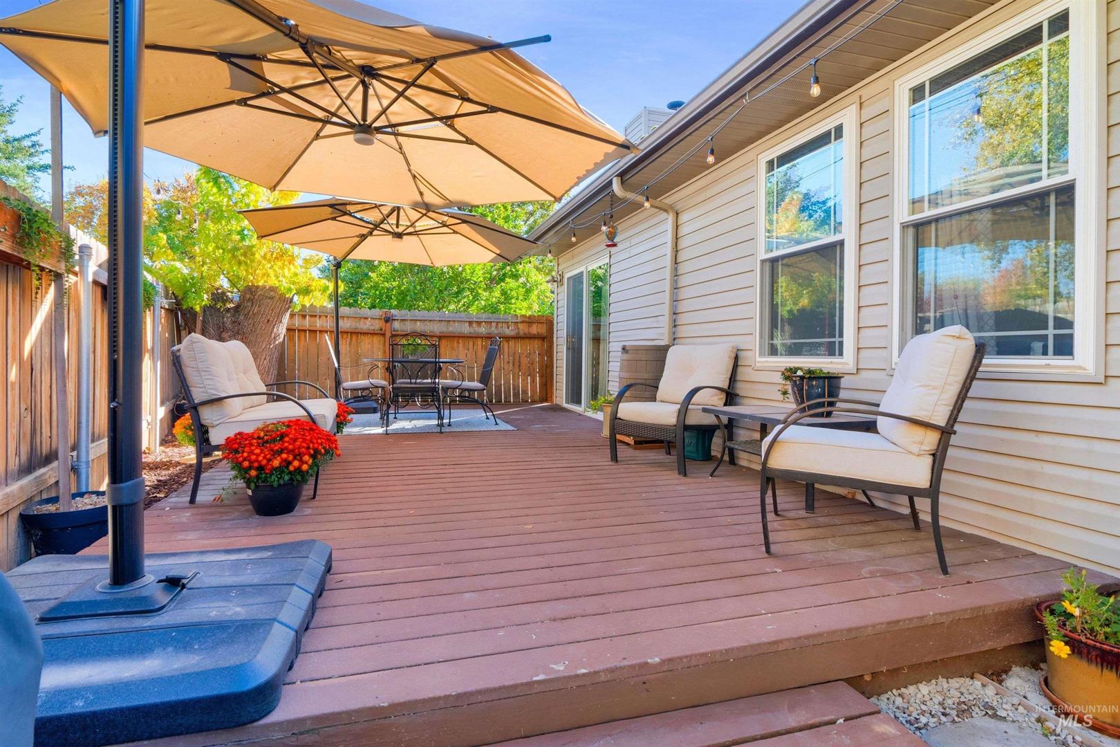 Welcome to your retreat in the desirable Collister area of Northwest Boise! Classic charm meets modern luxury in this thoughtfully renovated home. Situated on a corner lot with low- maintenance, mature landscaping, you are invited to a life of effortless indoor-outdoor living. Step into a light-filled interior where the living room boasts vaulted ceilings and a stunning floor-to-ceiling, stone-tiled gas fireplace for a sense of welcoming warmth. Be inspired to create in a kitchen with gleaming quartz countertops, plentiful cabinetry, sleek stainless-steel appliances, and a walk-in pantry. Beautiful custom lighting in the kitchen and dining room elevates the space. The primary suite escape offers a peaceful covered deck with direct access to the private backyard coupled with an ensuite bathroom and spacious walk-in closet. Both bathrooms have been completely refreshed with new cabinetry, tile, hardware, and quartz countertops. Additional interior renovations include warm solid surface floors and custom baseboards throughout, two-inch wood blinds, and interior paint. Outside, your backyard oasis awaits with an expansive patio deck perfect for hosting gatherings, and a quaint stone path leading you to a dedicated garden area. The oversized two car garage features additional storage. More than a home- a lifestyle, offering easy access to the Boise foothills and local amenities.