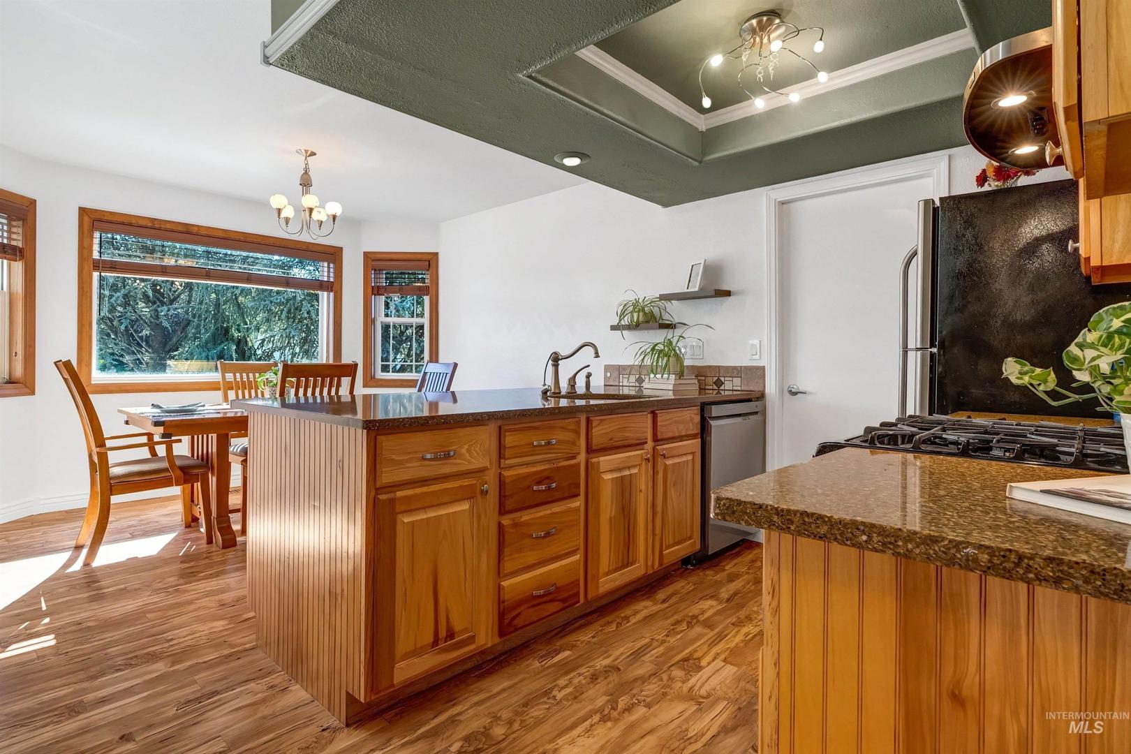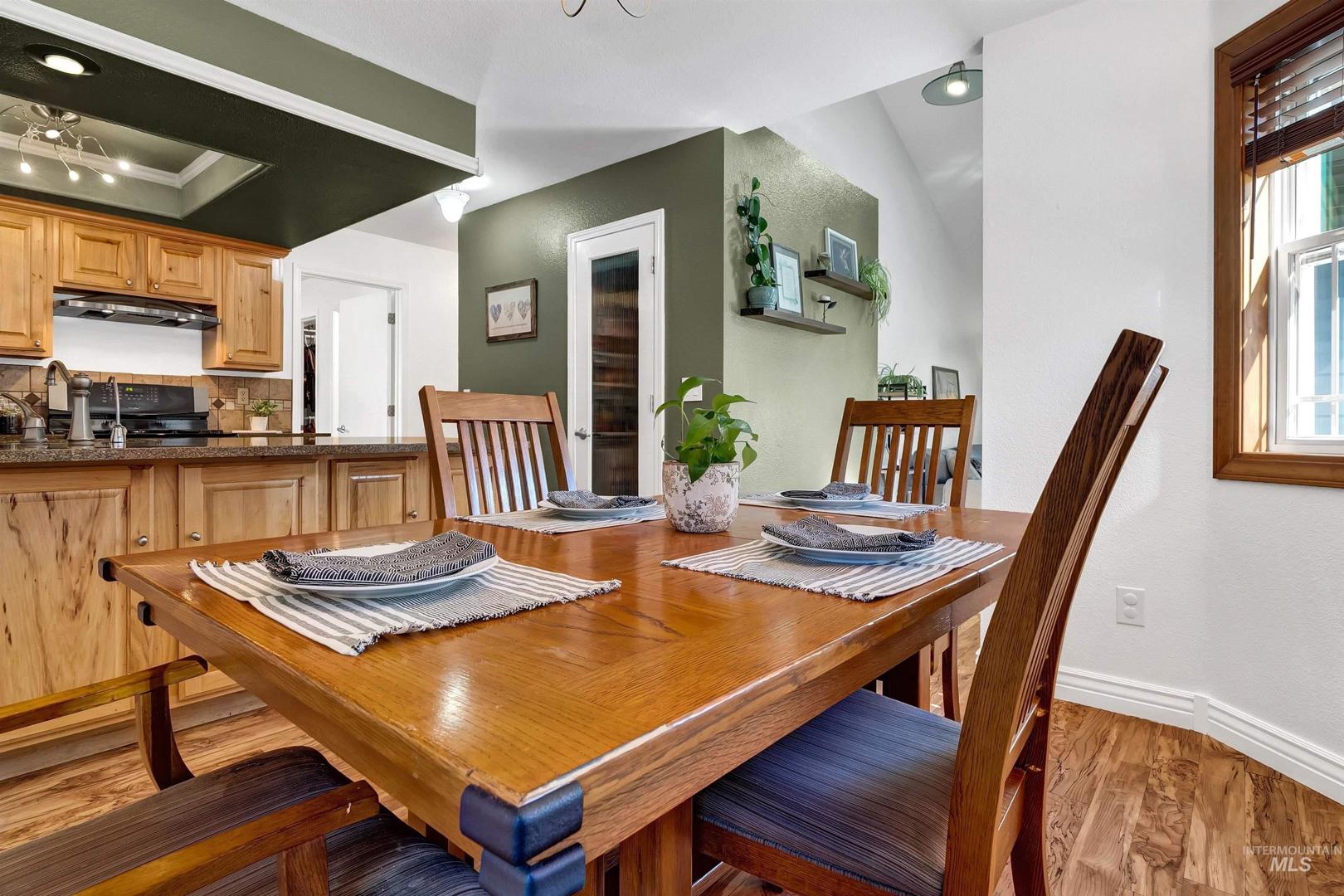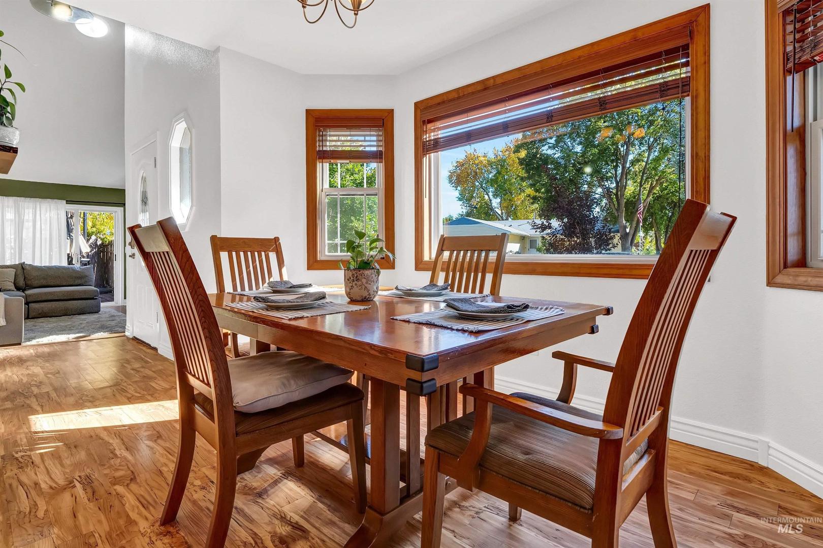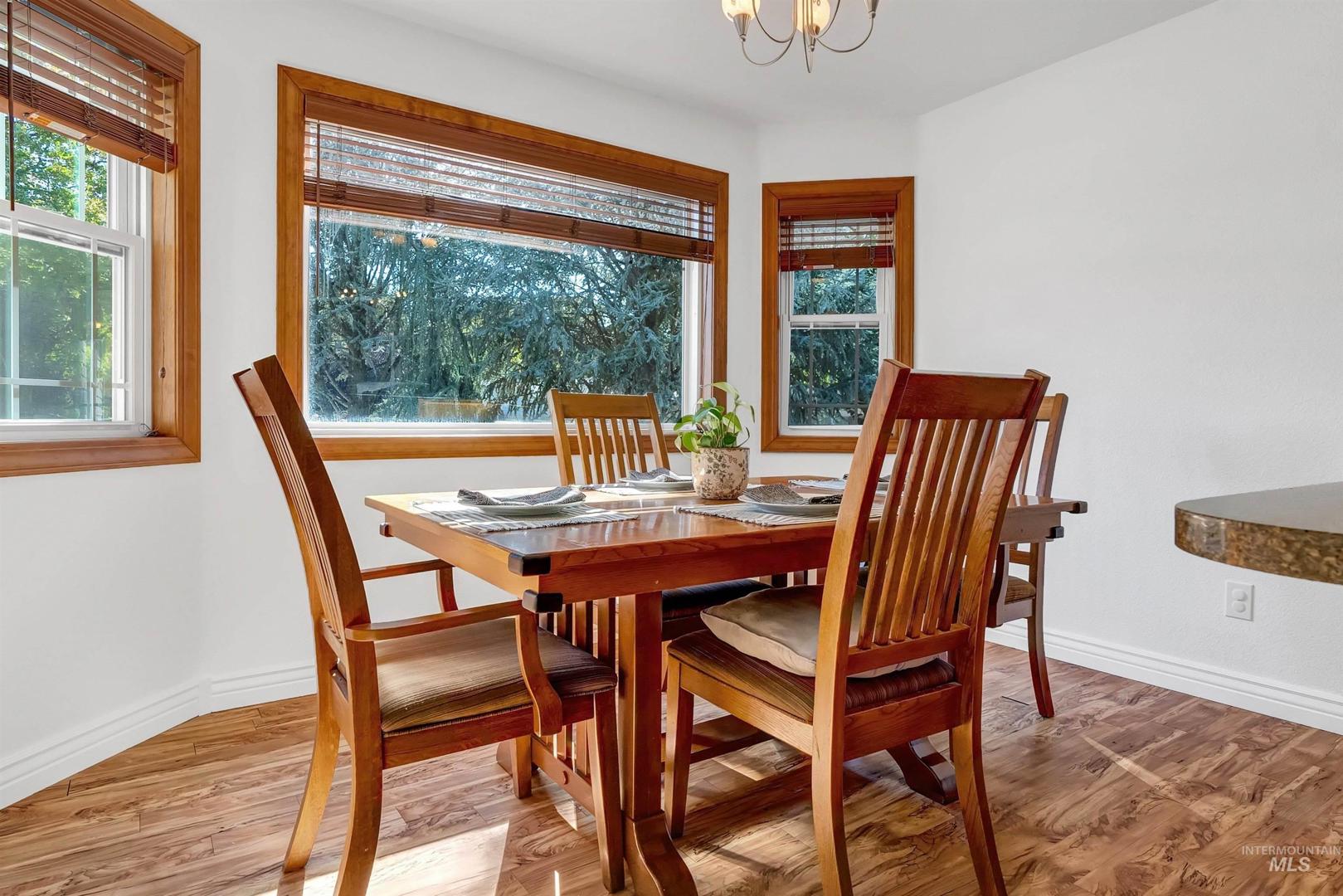 Welcome to your retreat in the desirable Collister area of Northwest Boise! Classic charm meets modern luxury in this thoughtfully renovated home. Situated on a corner lot with low- maintenance, mature landscaping, you are invited to a life of effortless indoor-outdoor living. Step into a light-filled interior where the living room boasts vaulted ceilings and a stunning floor-to-ceiling, stone-tiled gas fireplace for a sense of welcoming warmth. Be inspired to create in a kitchen with gleaming quartz countertops, plentiful cabinetry, sleek stainless-steel appliances, and a walk-in pantry. Beautiful custom lighting in the kitchen and dining room elevates the space. The primary suite escape offers a peaceful covered deck with direct access to the private backyard coupled with an ensuite bathroom and spacious walk-in closet. Both bathrooms have been completely refreshed with new cabinetry, tile, hardware, and quartz countertops. Additional interior renovations include warm solid surface floors and custom baseboards throughout, two-inch wood blinds, and interior paint. Outside, your backyard oasis awaits with an expansive patio deck perfect for hosting gatherings, and a quaint stone path leading you to a dedicated garden area. The oversized two car garage features additional storage. More than a home- a lifestyle, offering easy access to the Boise foothills and local amenities.
