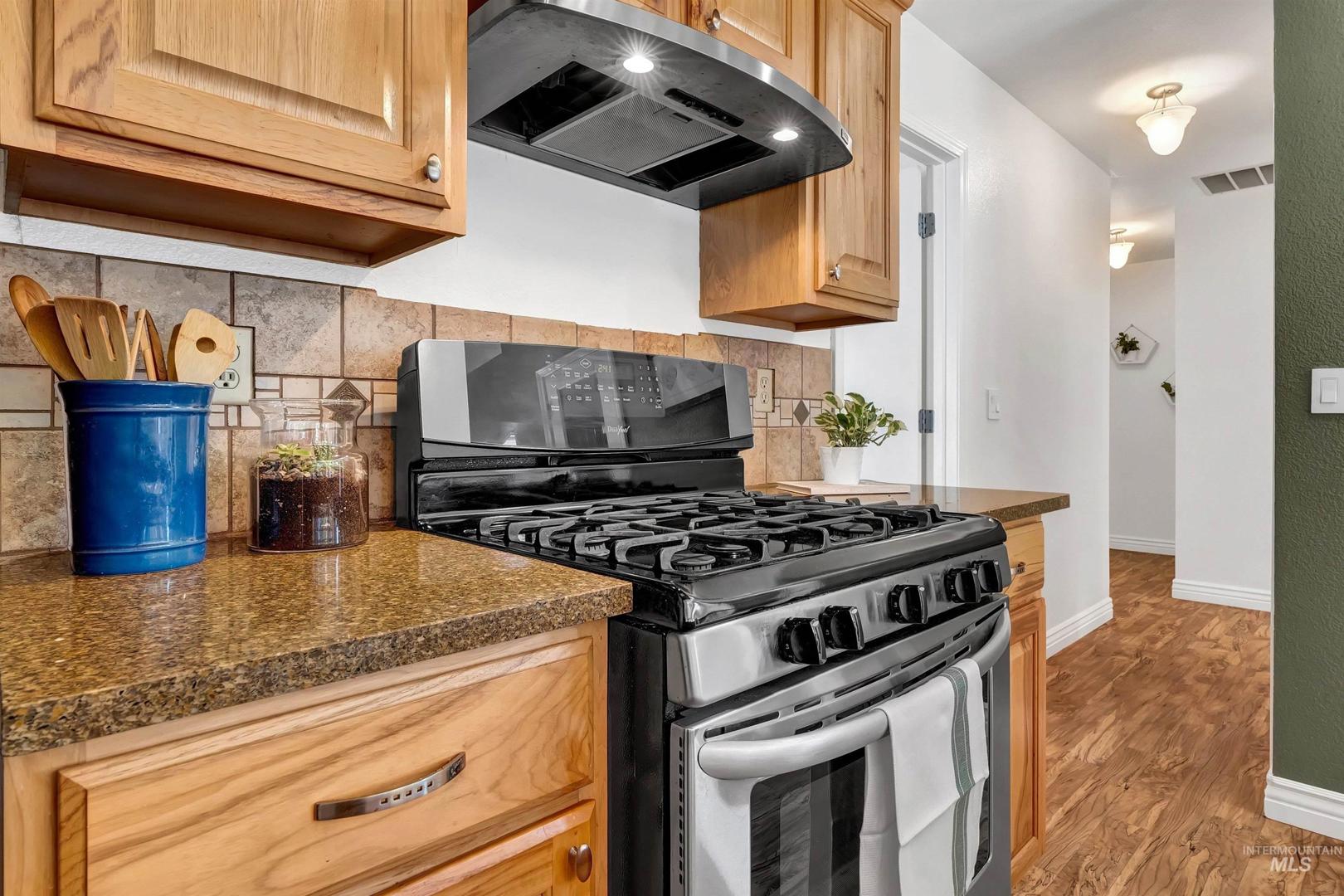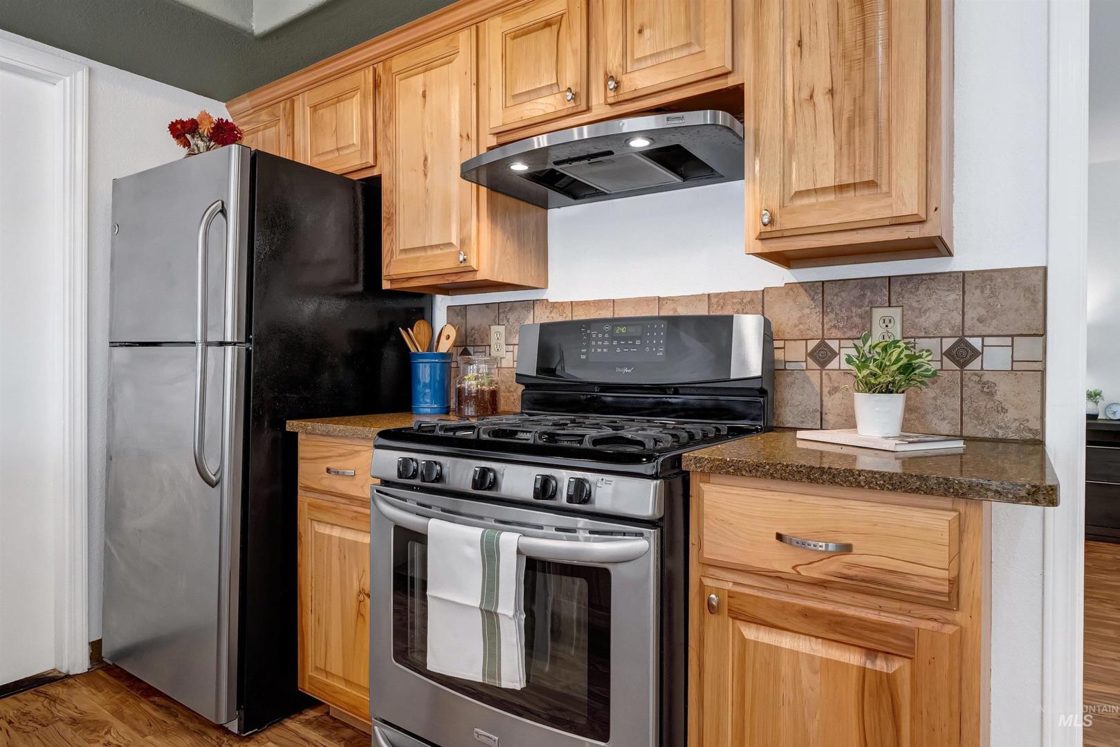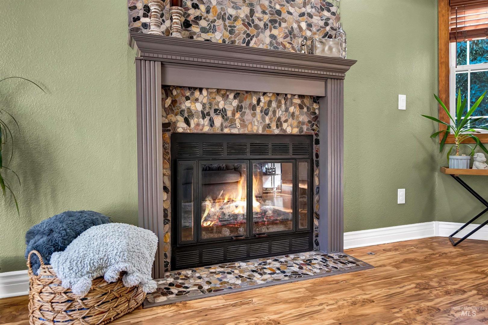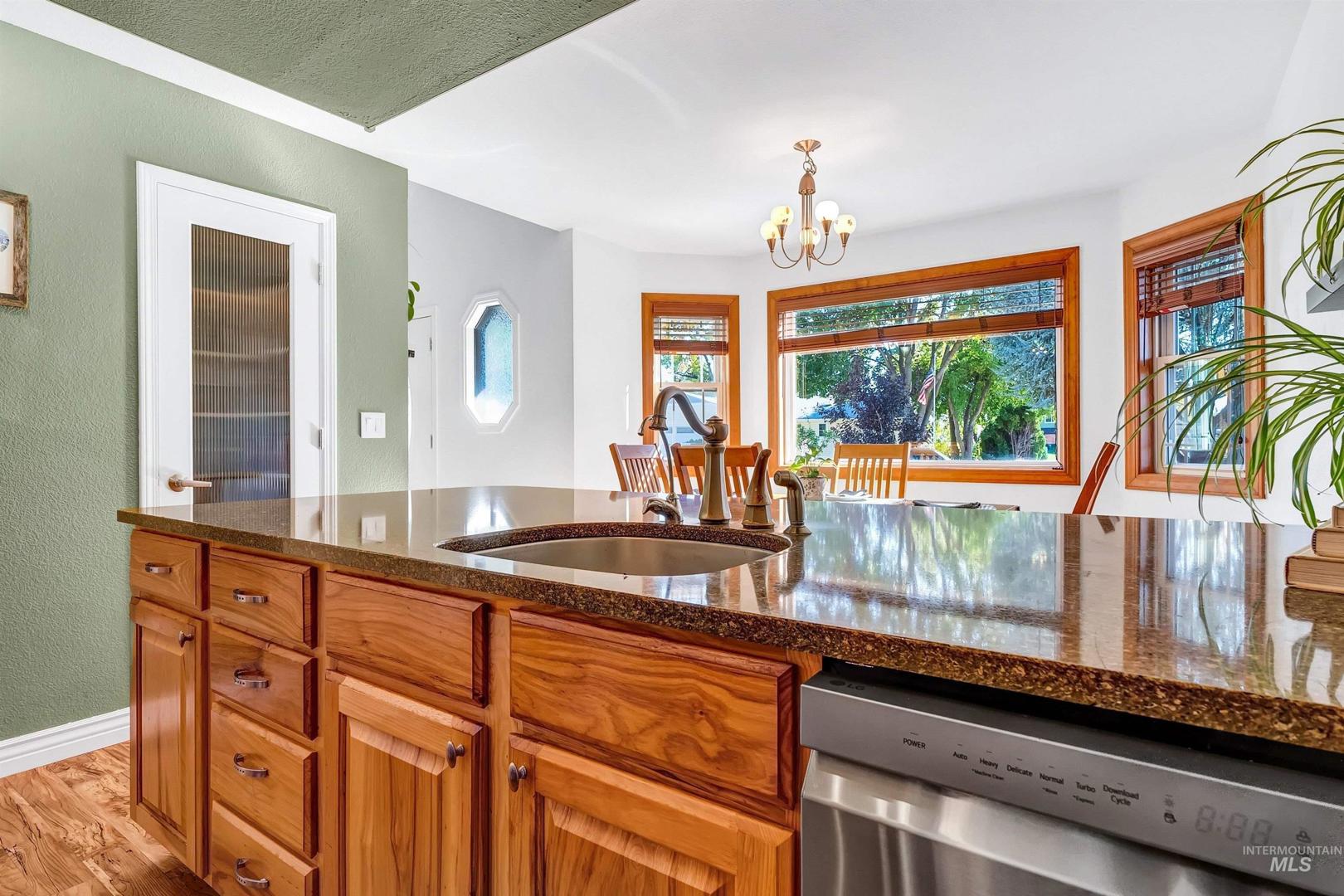Welcome to your retreat in the desirable Collister area of Northwest Boise! Classic charm meets modern luxury in this thoughtfully renovated home. Situated on a corner lot with low- maintenance, mature landscaping, you are invited to a life of effortless indoor-outdoor living. Step into a light-filled interior where the living room boasts vaulted ceilings and a stunning floor-to-ceiling, stone-tiled gas fireplace for a sense of welcoming warmth. Be inspired to create in a kitchen with gleaming quartz countertops, plentiful cabinetry, sleek stainless-steel appliances, and a walk-in pantry. Beautiful custom lighting in the kitchen and dining room elevates the space. The primary suite escape offers a peaceful covered deck with direct access to the private backyard coupled with an ensuite bathroom and spacious walk-in closet. Both bathrooms have been completely refreshed with new cabinetry, tile, hardware, and quartz countertops. Additional interior renovations include warm solid surface floors and custom baseboards throughout, two-inch wood blinds, and interior paint. Outside, your backyard oasis awaits with an expansive patio deck perfect for hosting gatherings, and a quaint stone path leading you to a dedicated garden area. The oversized two car garage features additional storage. More than a home- a lifestyle, offering easy access to the Boise foothills and local amenities.