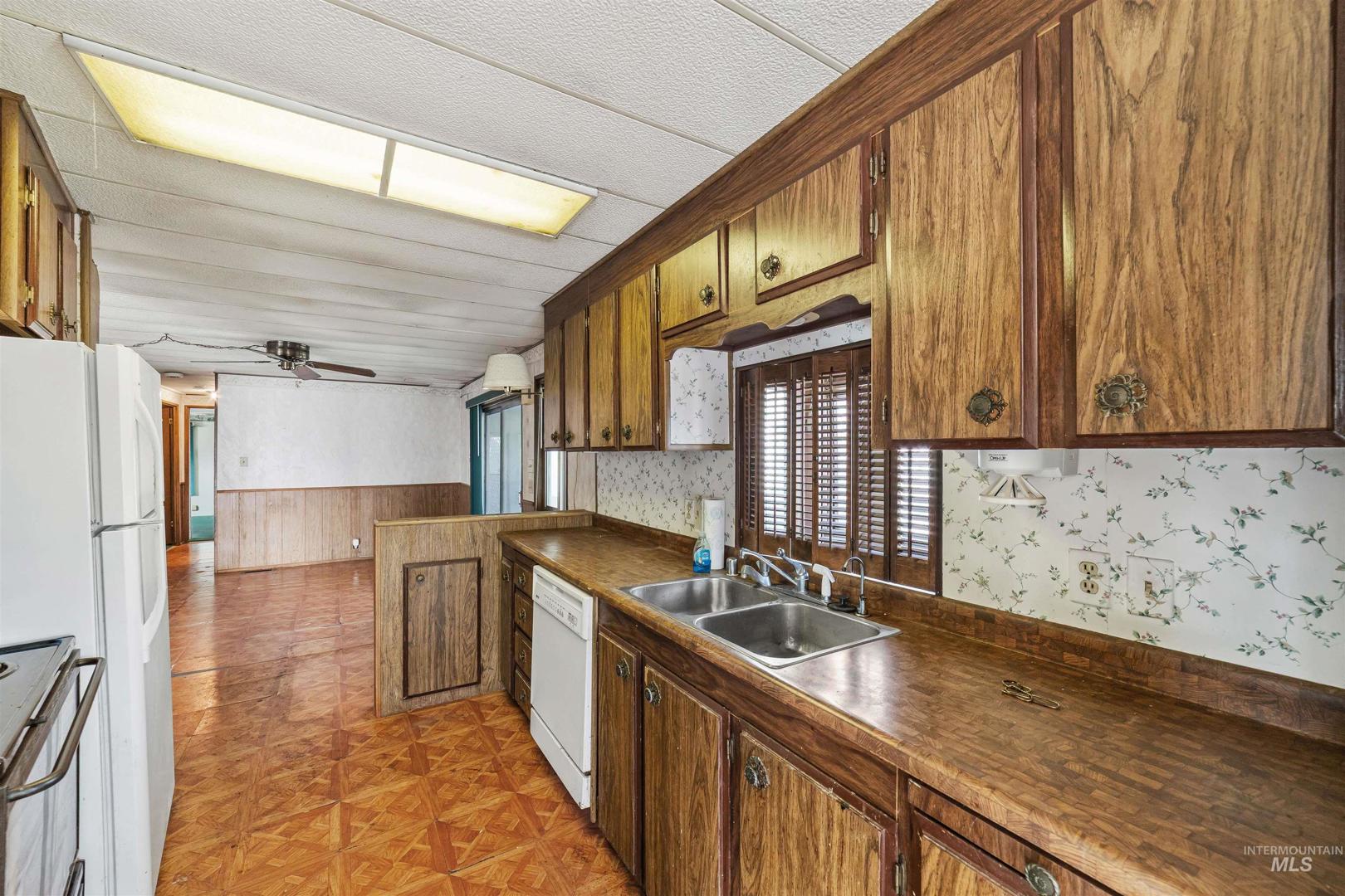Welcome to this unique manufactured home situated on a desirable corner lot in the sought-after 55+ gated community of West Meadows Estates. Offering great bones, abundant storage, and a rare two-car garage with a spacious workshop, perfect for hobbies, projects, or added flexibility. This property presents excellent potential. While it could use some TLC, it stands as a promising investment opportunity. Enjoy a fenced yard and a large enclosed porch filled with natural light. Conveniently located near shopping, dining, and entertainment, this home delivers an appealing mix of comfort, functionality, and future value.
