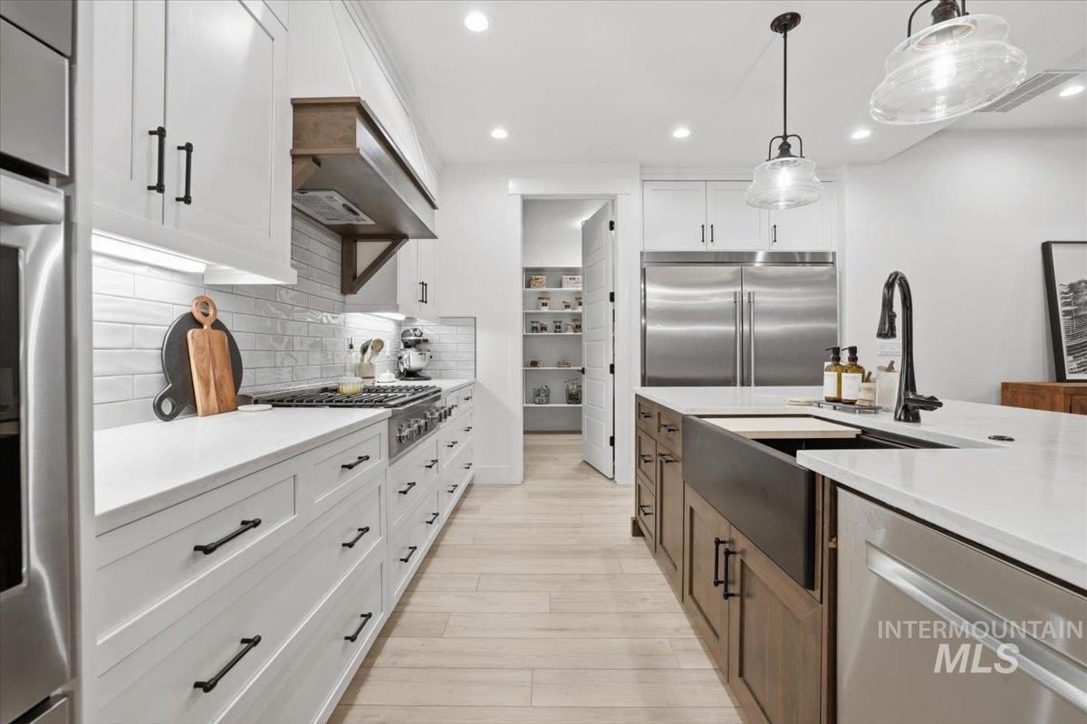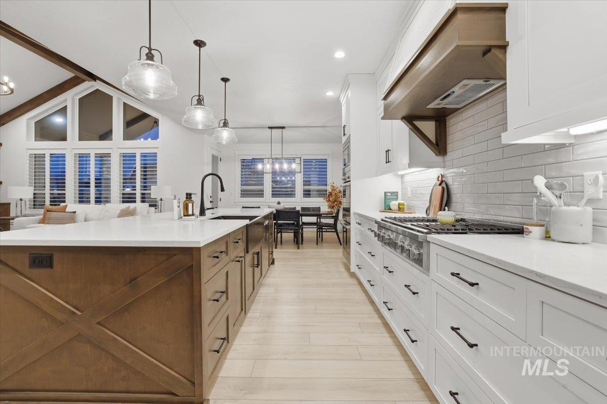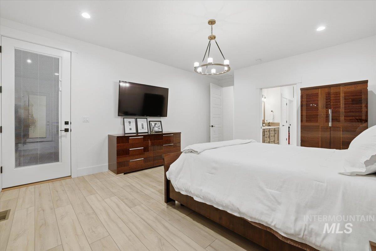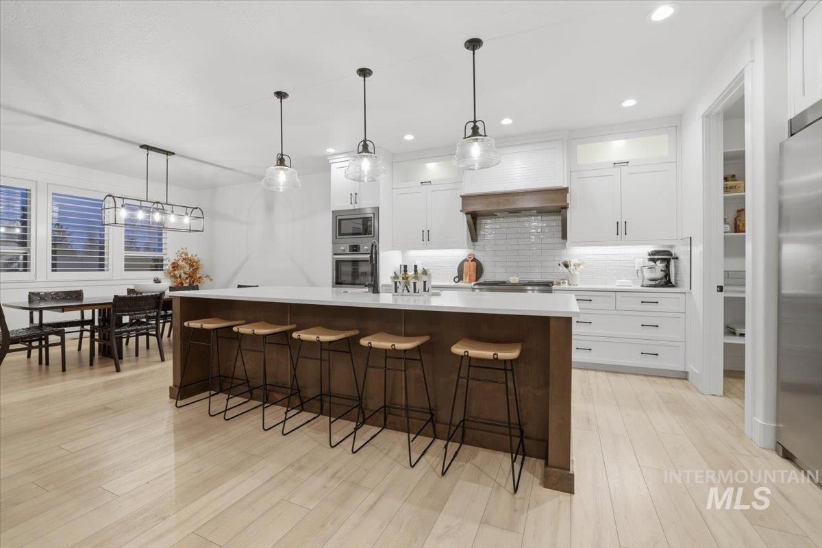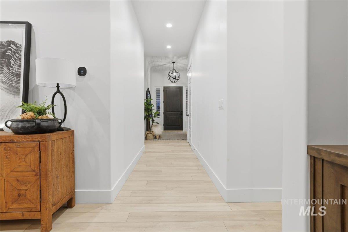 Luxury meets lifestyle in this exceptional 5-bed, 3-bath, 3,024 sq ft home set within one of Meridian’s most sought-after gated enclaves. A soaring 15-ft great room makes a striking statement, highlighted by a dramatic floor-to-ceiling stone fireplace and refined, light-filled living spaces. The chef’s kitchen is a true showpiece, featuring a massive 10’ x 4’ single-slab quartz island, a 2’ x 3’ farmhouse sink, an oversized Electrolux luxury refrigerator and freezer, and an impressive 12’ x 8’ walk-in pantry. Premium finishes and a motion-sensor faucet elevate the experience. Retreat to the primary suite with spa-caliber comforts, including heated master bathroom floors for year-round luxury. A rare highlight, the property showcases a 2,275 sq ft fully finished RV garage with premium epoxy floors, 50-amp power, RV dump and drain, and heating—ideal for RVs, luxury autos, or hobby space. The home is future-ready with electric and gas installed for an underground pool, gas run for a full outdoor kitchen, and utilities prepped for a separate ADU. The backyard is fully prepped to transform into an outdoor oasis, ready for your dream pool and resort-style living design. Entertainment is effortless with surround sound throughout the interior and speakers on the back patio. Minutes from The Village and within the top-rated West Ada School District, luxury living with rare, unmatched perks.