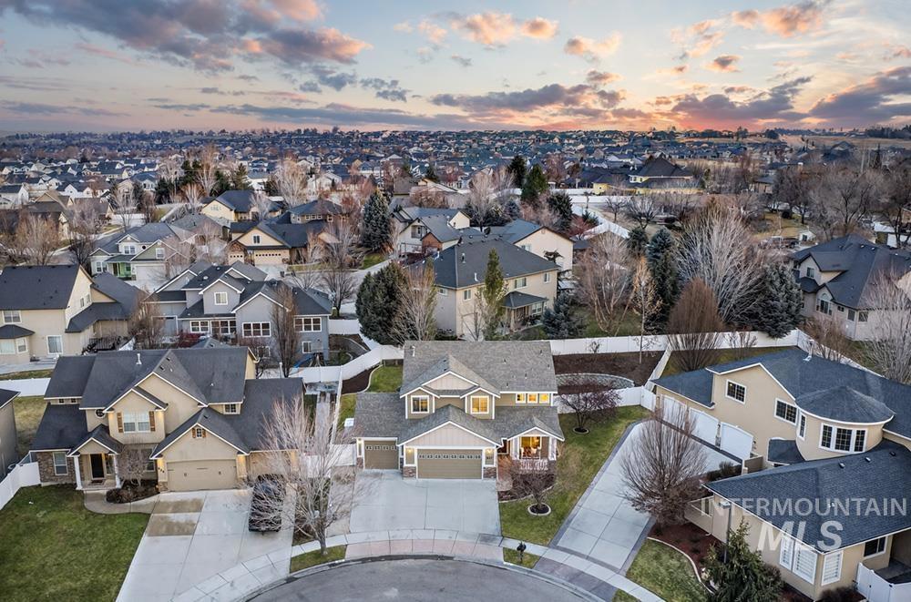 Tucked into a quiet cul-de-sac in a well-established neighborhood, this thoughtfully designed home offers the kind of layout and setting that adds ease & comfort to daily life. Set in a convenient location close to dining, shopping, St. Luke’s, and highly regarded local schools, this is a fantastic opportunity to truly love where you live. The kitchen flows seamlessly into the dining area & great room, where an upgraded fireplace creates a warm, welcoming hub for movie nights & relaxed weekends at home. With all 4 bedrooms privately situated upstairs and a dedicated main-level office, the floorplan provides both room for togetherness and personal space. The primary suite features peaked ceilings, walk-in closet & a generous en-suite featuring a soaking tub, dual vanity & a private water closet. 3 additional bedrooms, each with charming built-in window benches, share a full bath with dual sinks. Offering abundant storage throughout – with a three-car garage that provides plenty of room for cars, outdoor gear, & hobby equipment. Outside, thoughtful updates to the yard include a patio cover that extends living space into the backyard. Comfortable & move-in-ready, with fresh interior paint, and new carpet & exterior paint just last year. This peaceful street with minimal traffic is perfect for a basketball hoop, neighborhood gatherings, or simply enjoying a quieter pace.