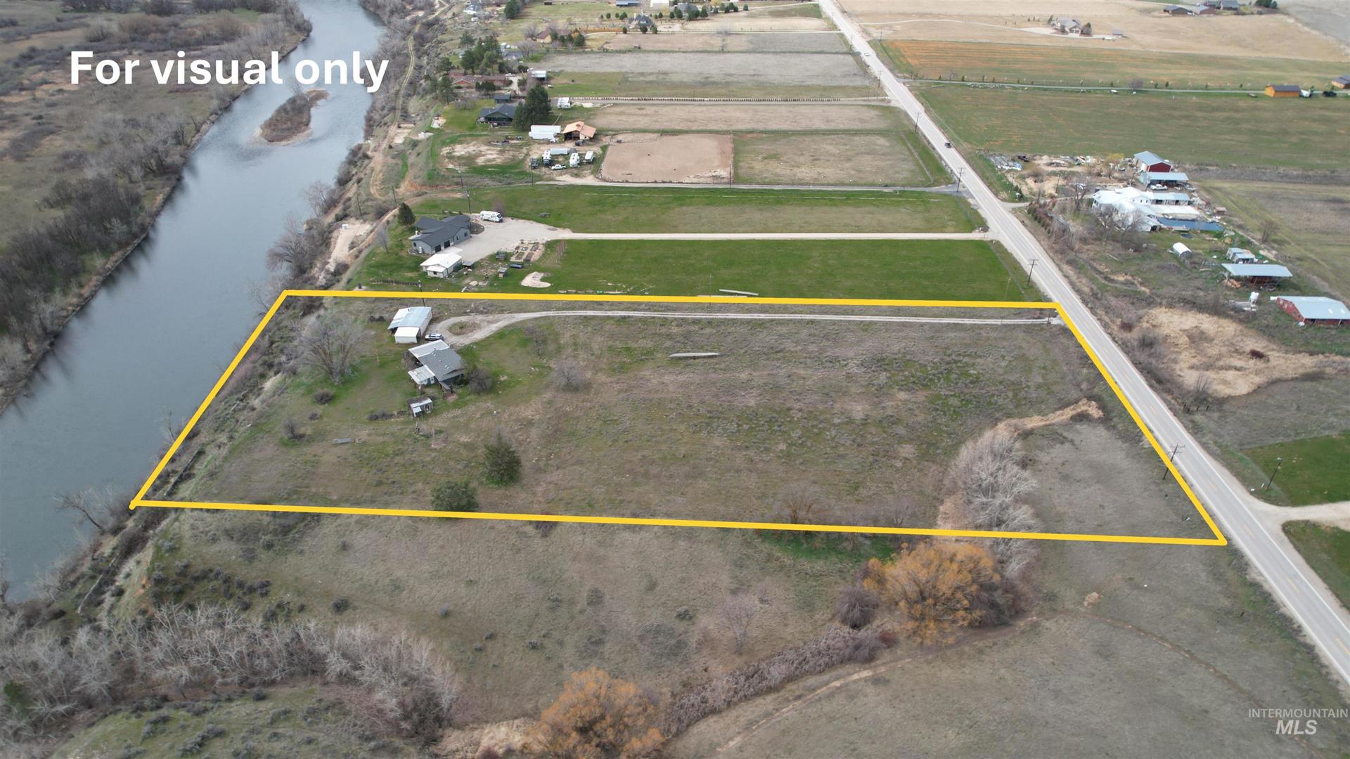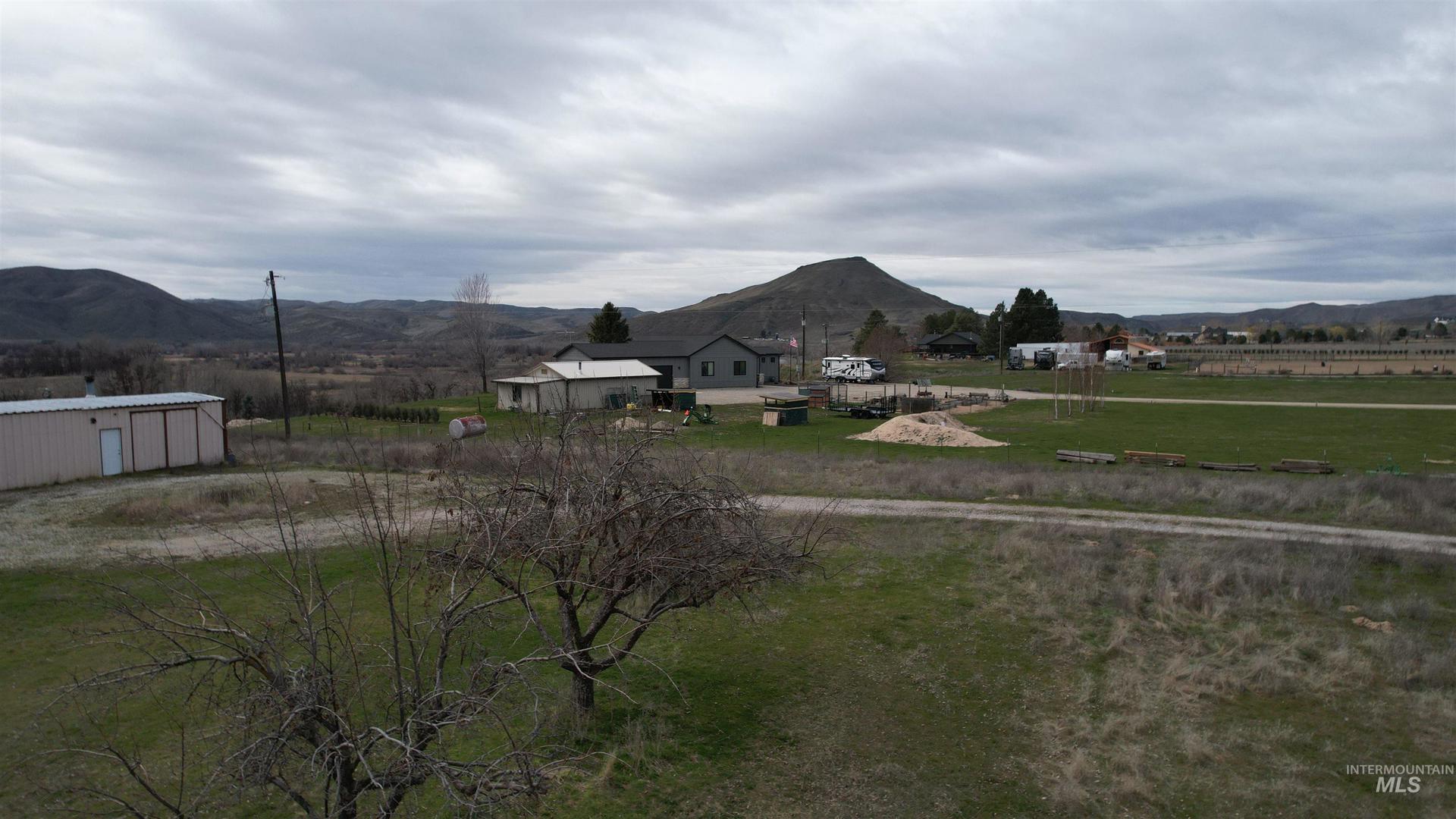 VIEWS VIEWS!!! Must see the view from the back yard of this 3 bedroom 1 bath house on 5.95 irrigated acres at the end of a private driveway. The view off the back yard of the Payette River and Montour Valley are amazing and our the front of the Butte and Foothills to the North. The 3 bedroom 1 bath house with living room and additional sun room/family room. 3 car attached carport. Detached metal frame shop with attached carport has power, woodstove and electric lift and work shop. Acreage can be irrigated for hay or pasture. Room for animals, toys, RV and more.