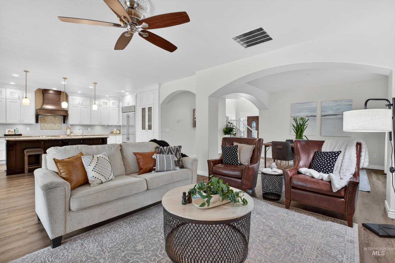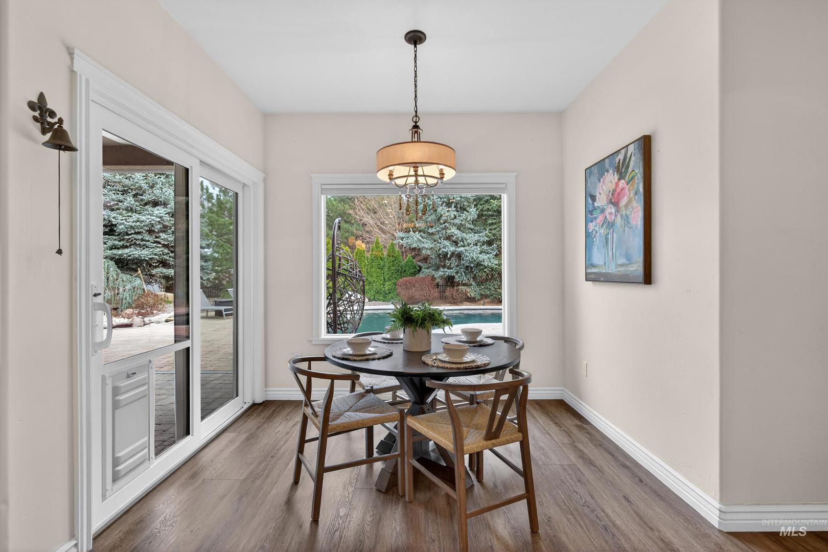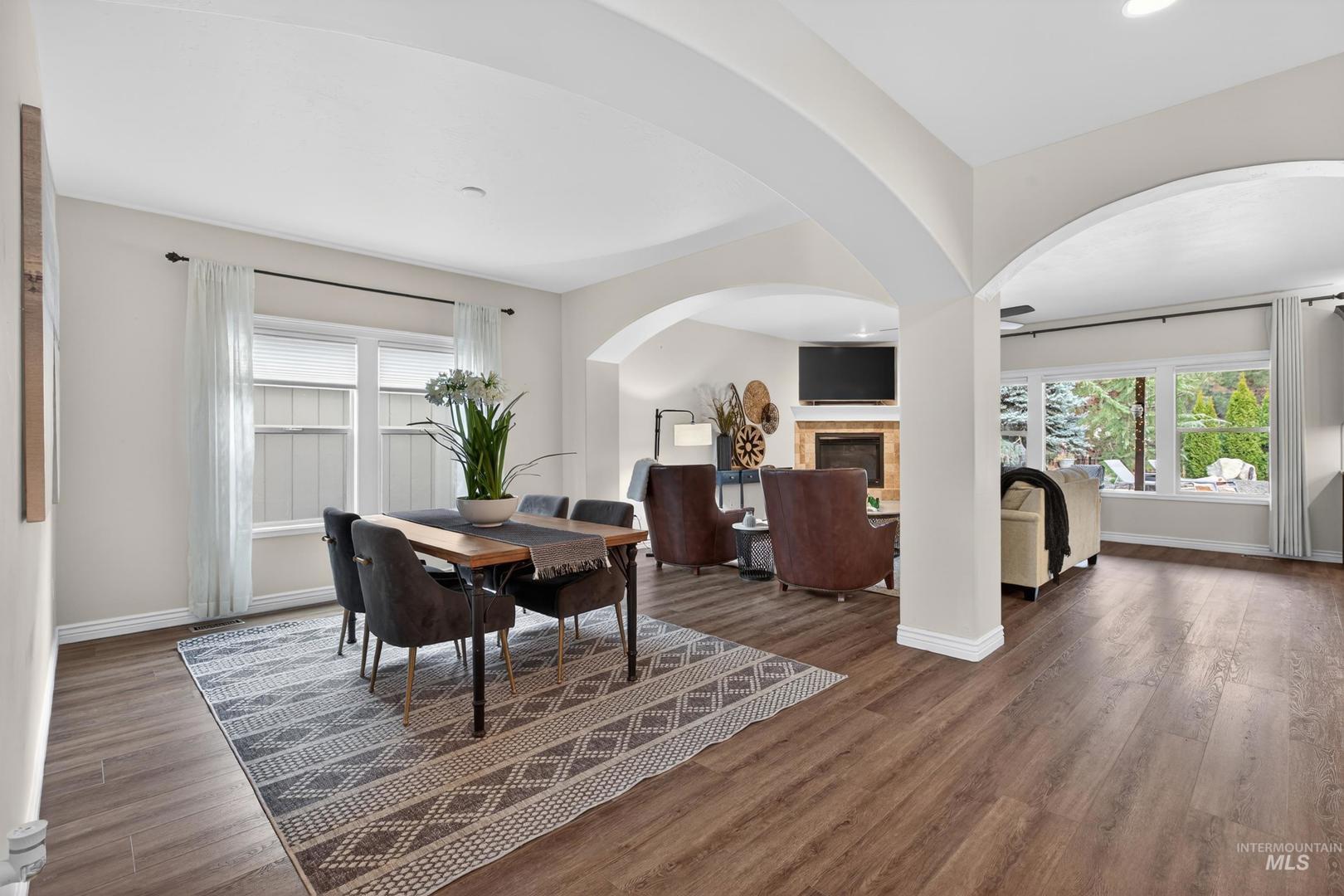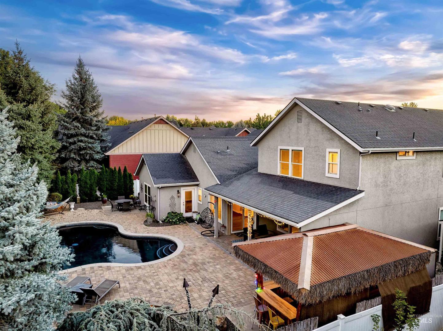 Landscaping only time can buy frames this South Meridian property, creating a level of privacy and setting that’s hard to replicate. Resort living only 5 minutes from the Meridian Road freeway on-ramp, 8 minutes to The District at Ten Mile, and only 15 minutes to both The Village and downtown Boise—this is convenience without sacrificing space or tranquility. This 3,391 SF home offers 4 bedrooms, 3.5 bathrooms, a main-level office, and an upstairs bonus room. The original owners have invested in meaningful upgrades throughout, including a six-figure kitchen and master bath remodel featuring Sub-Zero and Wolf appliances, along with all new flooring and carpet. The backyard is designed as a true escape; private, mature, and built for both entertaining and everyday living. A heated pool, updated equipment, waterfall feature, and tiki bar are surrounded by established landscaping that creates a resort-style setting you simply can’t recreate overnight. Well-maintained, thoughtfully updated, and set in one of Meridian’s most accessible locations.