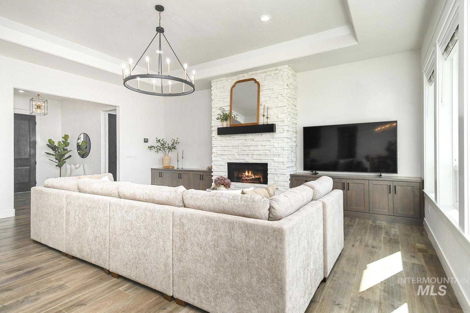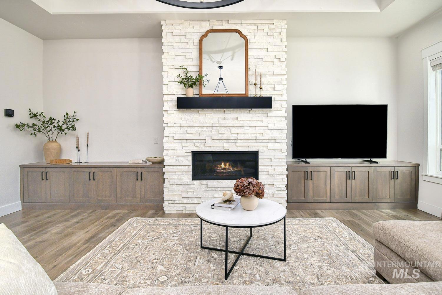Welcome to this beautifully maintained 4-bedroom, 2.5-bathroom home offering 2,745 sq ft of stylish living space, filled with exceptional upgrades. Built in 2021, the home features an office, a bright open-concept layout, a cozy fireplace in the living room, and a modern kitchen and a large pantry perfect for entertaining. Features tall 10 foot ceilings with 8 foot doors throughout home, upgraded cabinets, and a white brick 46" linear fireplace. Kitchen includes farm sink in island, large pantry, and great workspace. Spacious primary suite with large walk-in closet and dual vanities. Covered patio for outdoor living plus laundry room with utility sink and upgraded HVAC system. Functional layout with great storage including a 34` Rv bay and modern finishes throughout. Located in a desirable neighborhood, this home is close to local amenities and offers easy access to major roads for commuting.
