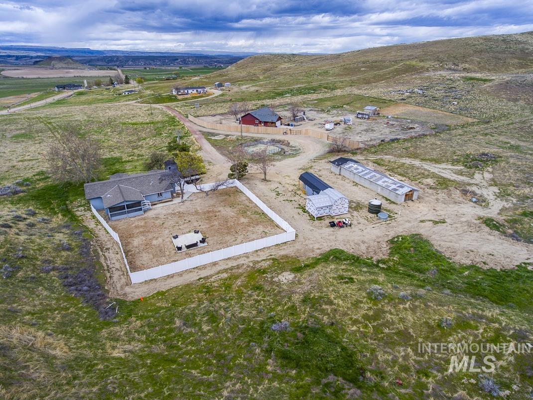 Great rural residential property offering serenity, privacy, beautiful views of the Marsing valley, and gorgeous sunsets! ! Fully remodeled 1792 sq ft home on 6.895 acres, vinyl fenced 1 acre yard, fully screened-in 14x14 covered patio to enjoy your summer evenings, a 30x15 cinder block shop with power, plus a 2 year old 14x40 (560 SF) detached 1 bedroom 1 bath w/loft frame construction ADU with all electrical & plumbing roughed-in and ready for your buyer to finish. Main home has new interior & exterior paint, LVP flooring, and quartz countertops. Kitchen has huge 8x10 walk-in pantry and primary suite has a jetted tub, a walk-in tiled shower, and dual sink vanity. New bath fixtures in secondary bathroom, Kinetico water softener/treatment system, and fully functional chicken coop to accomodate your egg-laying hens. Plenty of pasture for your horses, cows, or goats. Here`s your opportunity to enjoy country living! BVAI