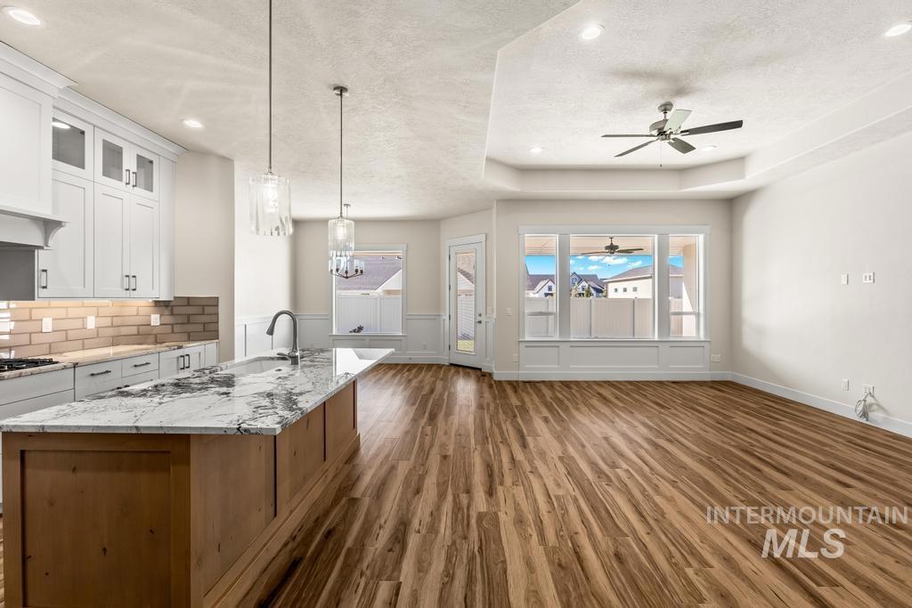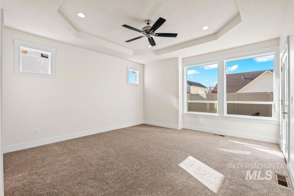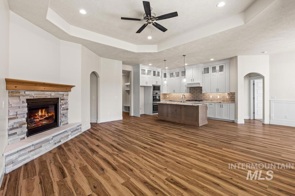 Welcome to The Estates at West Highlands—a premier new-construction community in Middleton, Idaho, where country charm meets modern living. Built by Stacy Construction, this award-winning Mahogany floor plan offers exceptional craftsmanship, panoramic valley and mountain views, and quick freeway access for an easy Boise commute. Enjoy 3 spacious bedrooms plus a versatile office (optional 4th bedroom), 2.5 baths, and an oversized RV bay perfect for boats, campers, or Idaho adventure toys. The fully fenced and landscaped backyard features an extended covered patio—ideal for entertaining or relaxing under wide-open Idaho skies. Inside, a chef’s kitchen shines with stainless steel appliances, a 36-inch cooktop, double ovens, and custom cabinetry. The primary suite includes a luxurious tiled walk-in shower and dual vanities, while tray and coffered ceilings, designer lighting, and high-end finishes showcase modern elegance throughout. Experience new construction living in Middleton—a peaceful, friendly community just minutes from Star, Meridian, and Boise. Don’t miss your chance to call this stunning home yours!