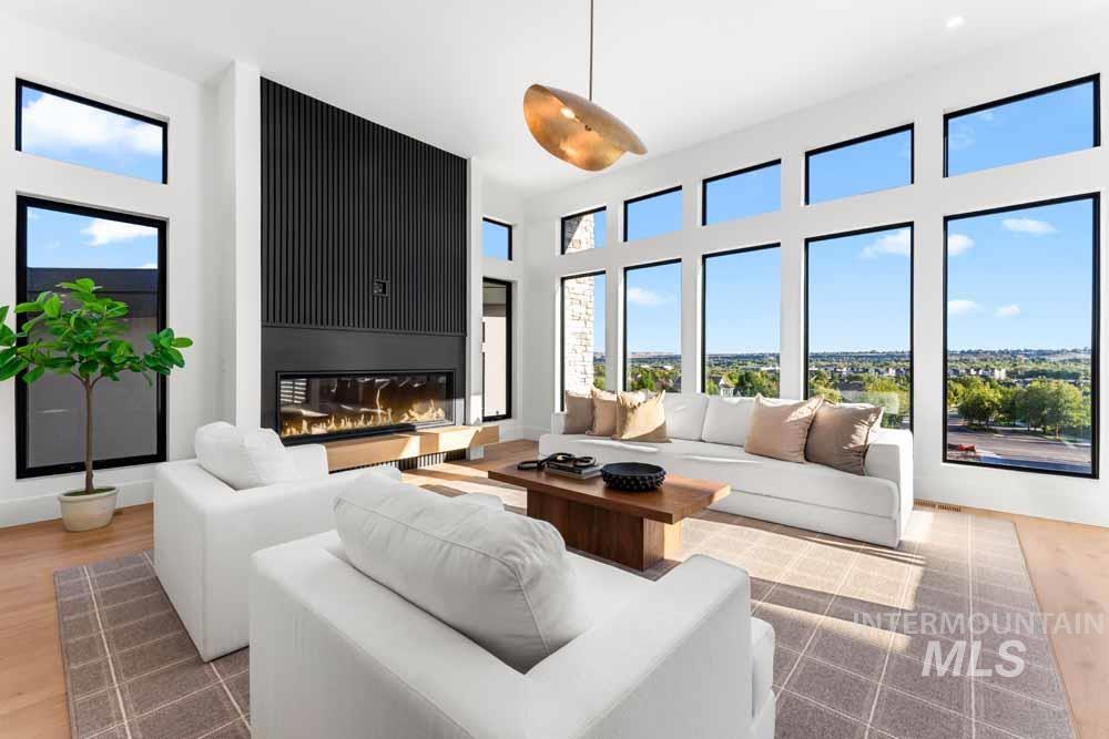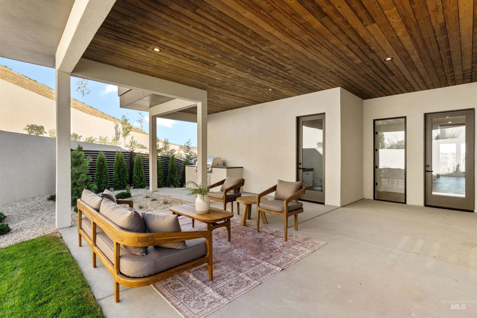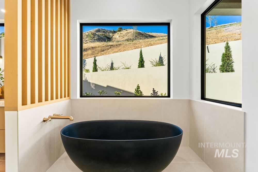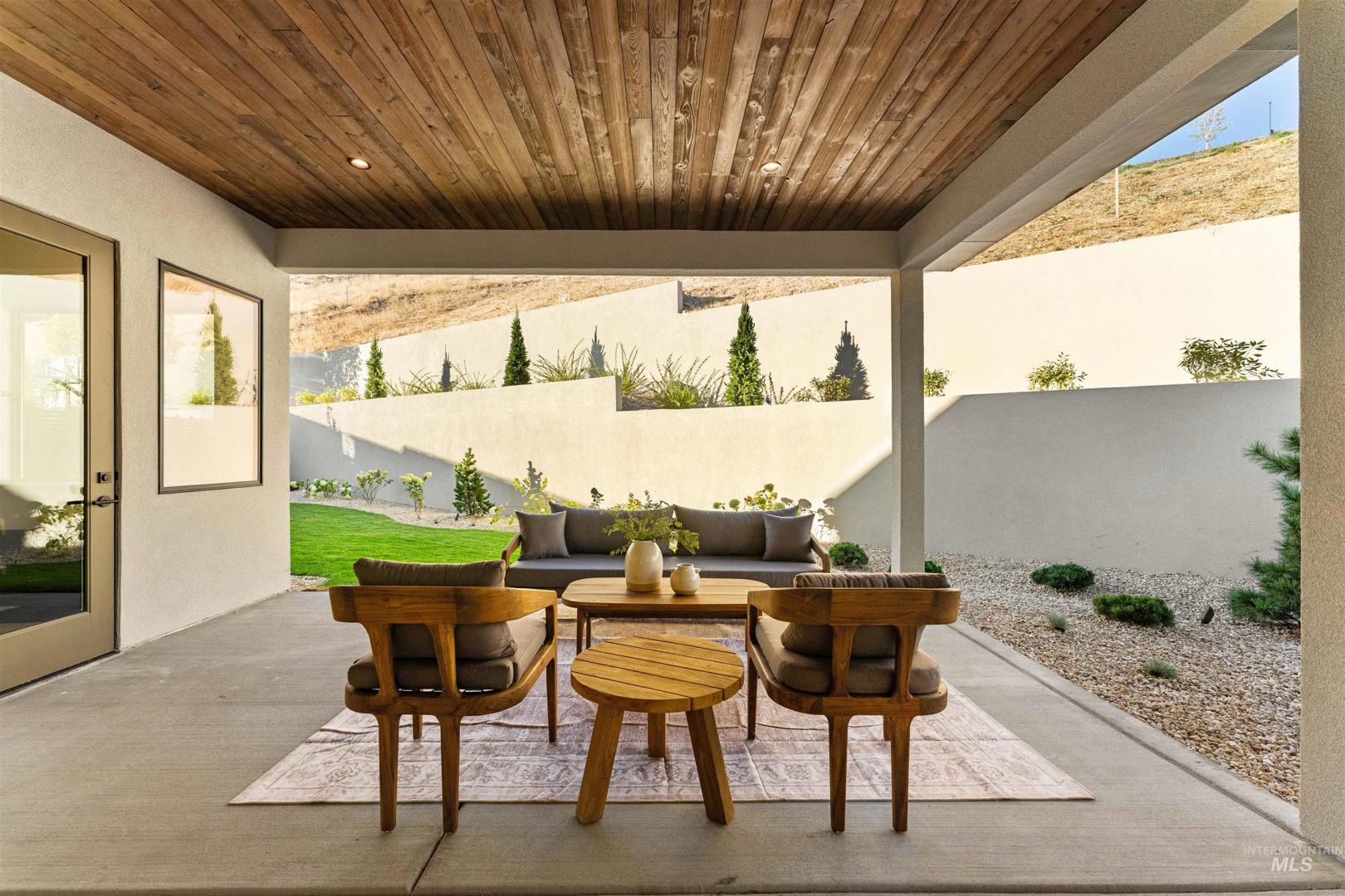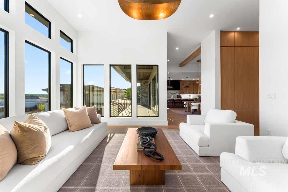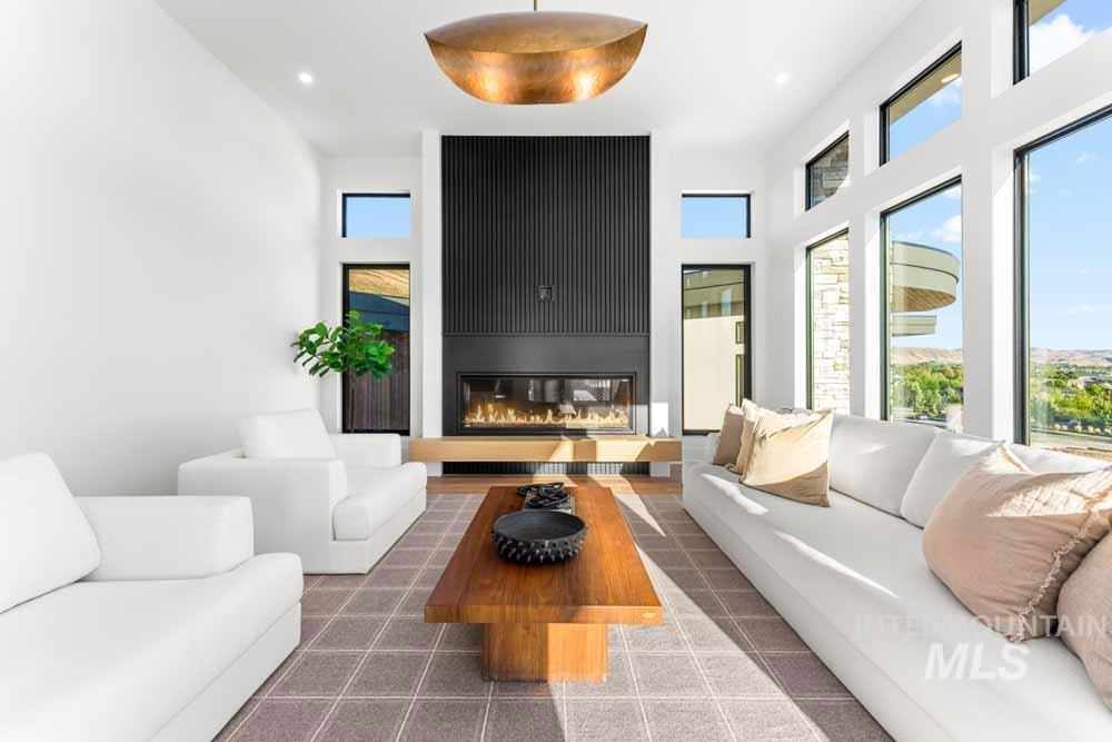 Striking modern architecture, brought to life by Teal Point Custom Homes. Set against the foothills with expansive valley views, every detail surpasses the standard of new construction. Inside, warm white oak flooring and smooth hand-plastered walls provide a sophisticated canvas for designer lighting & curated finishes. The showpiece kitchen is centered around a waterfall-edge marble island, complemented by two-toned cabinetry, stainless steel appliances, & paneled full-size refrigerator, freezer, & wine cooler. Retreat to the primary suite, where a spa-like bathroom awaits with dual vanities, a freestanding tub with a privacy wall, an oversized shower, & direct access to a private patio. True to Teal Point’s signature style, each bedroom includes its own en suite. Entertainment and work needs are met with a private home theater and a dedicated office. The sprawling outdoor covered living room is complete with a built-in kitchen for exceptional entertaining. Set in SE Boise just minutes from downtown Boise!