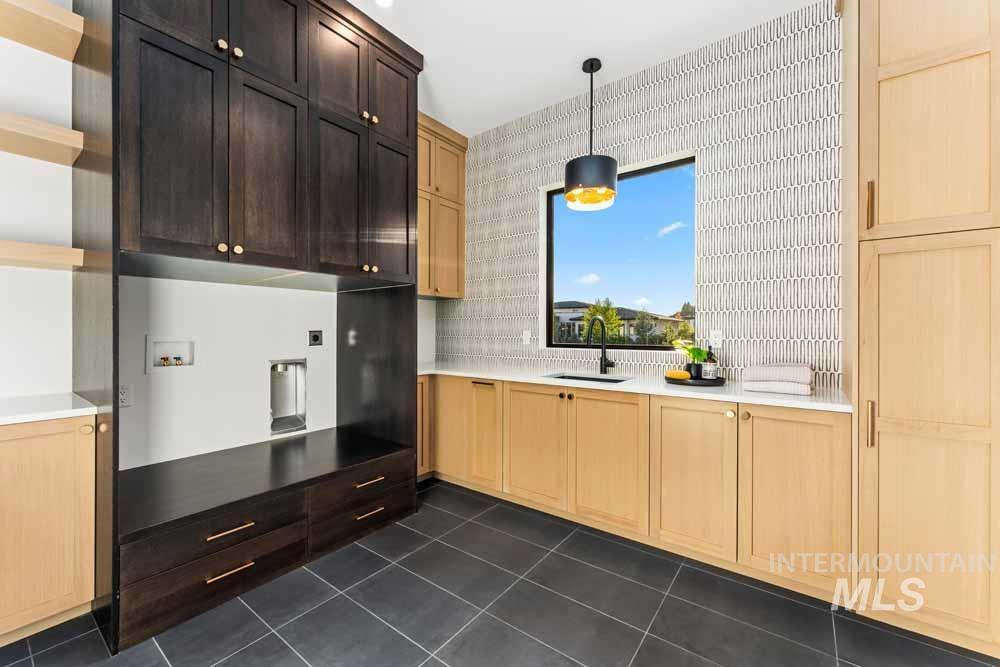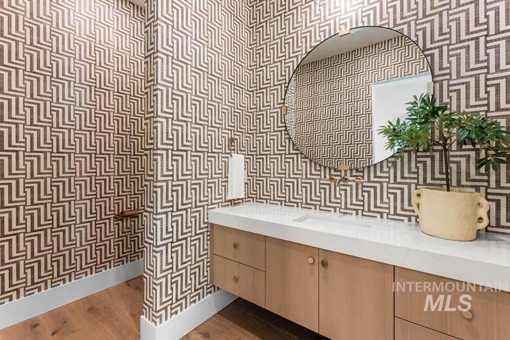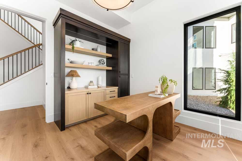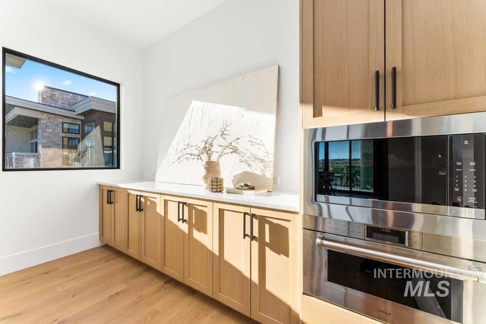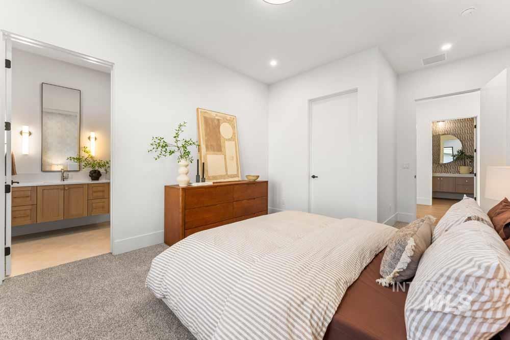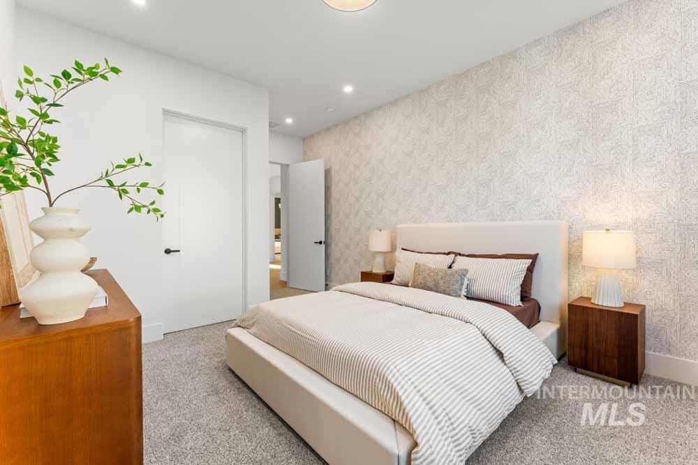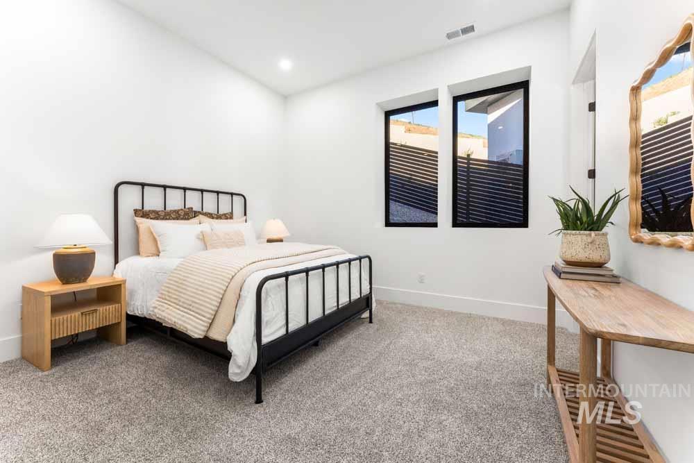 Striking modern architecture, brought to life by Teal Point Custom Homes. Set against the foothills with expansive valley views, every detail surpasses the standard of new construction. Inside, warm white oak flooring and smooth hand-plastered walls provide a sophisticated canvas for designer lighting & curated finishes. The showpiece kitchen is centered around a waterfall-edge marble island, complemented by two-toned cabinetry, stainless steel appliances, & paneled full-size refrigerator, freezer, & wine cooler. Retreat to the primary suite, where a spa-like bathroom awaits with dual vanities, a freestanding tub with a privacy wall, an oversized shower, & direct access to a private patio. True to Teal Point’s signature style, each bedroom includes its own en suite. Entertainment and work needs are met with a private home theater and a dedicated office. The sprawling outdoor covered living room is complete with a built-in kitchen for exceptional entertaining. Set in SE Boise just minutes from downtown Boise!