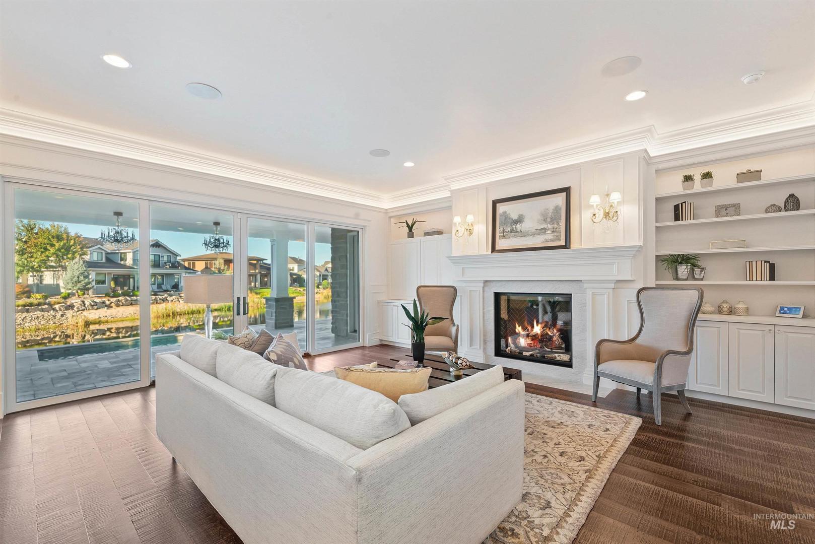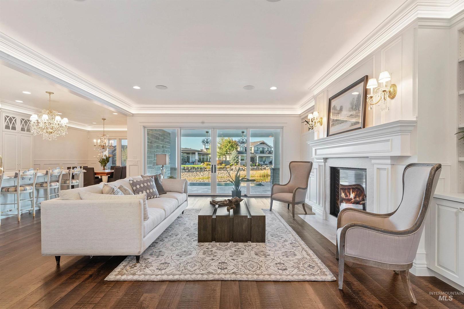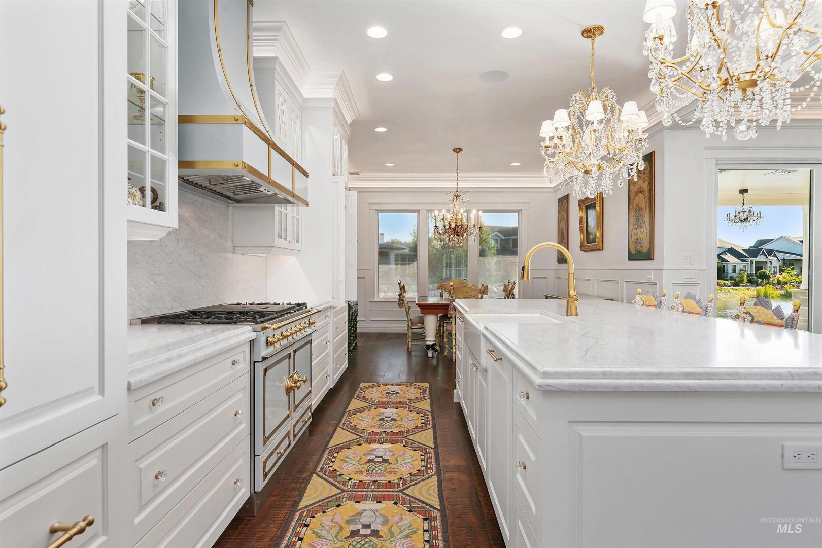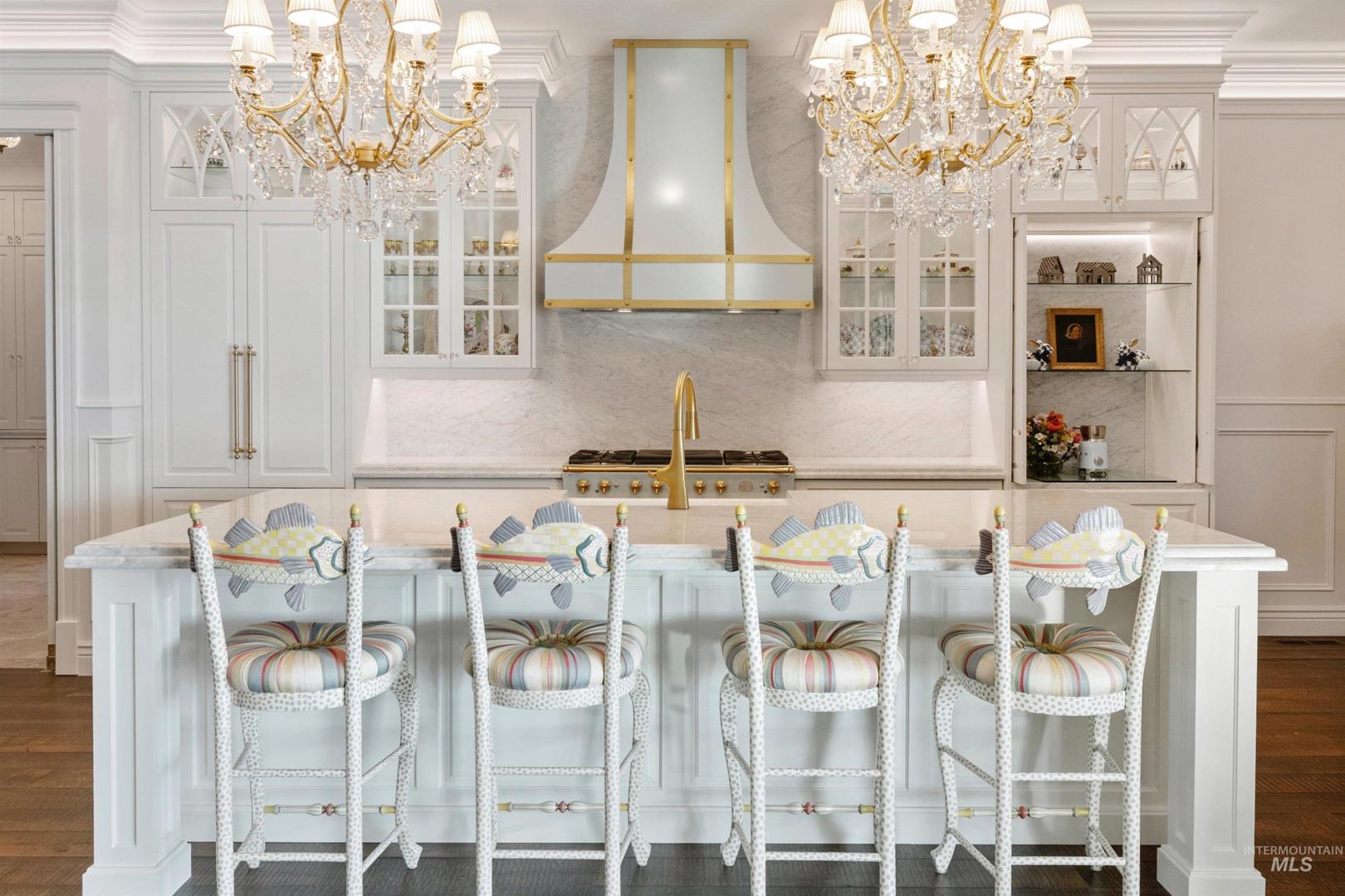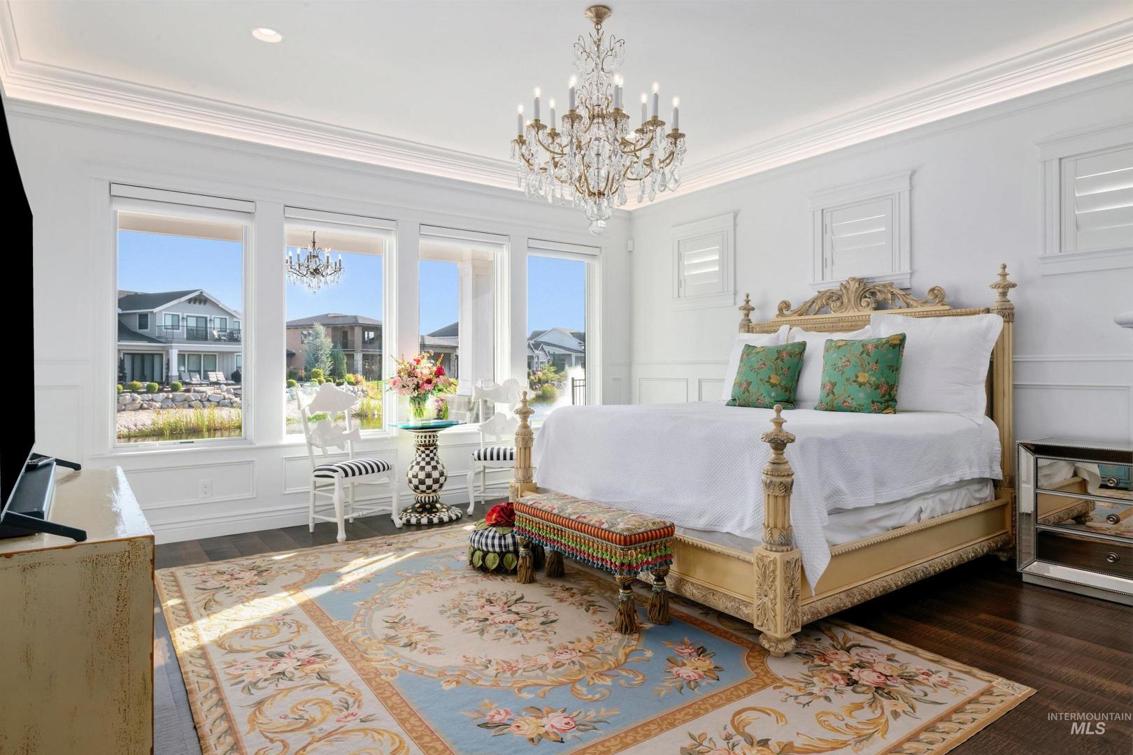 Experience the romance of French-inspired design in this exquisite residence, perfectly crafted for effortless entertaining. A sparkling pool takes center stage in the backyard, set beside a tranquil community pond--creating a private, resort-like setting with serene water views. Inside Carrera marble flows throughout, complementing warm walnut hardwood floors and extensive crown molding. The heart of the home is a culinary masterpiece: the main kitchen features a LaCornue French oven beneath a custom-painted hood, the perfect centerpiece for creating unforgettable meals. A separate prep kitchen, fully outfitted with Thermador appliances--keeping the main space pristine while you cook. A sweeping staircase w/ ornate metalwork leads to an upstairs living w/ bedrooms, office, and covered balcony with a fire pit-perfect for evening soirees under the stars. Additional luxuries include an elevator for convenience and bespoke arch details at every turn. Here`s your invitation to live the French lifestyle.
