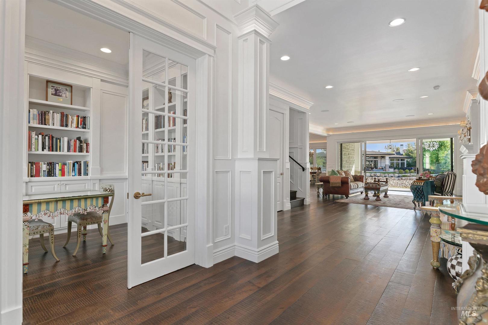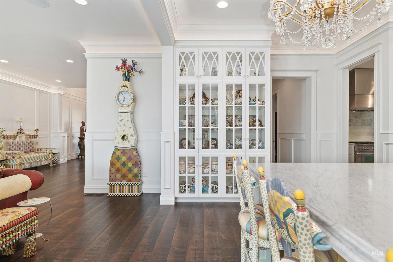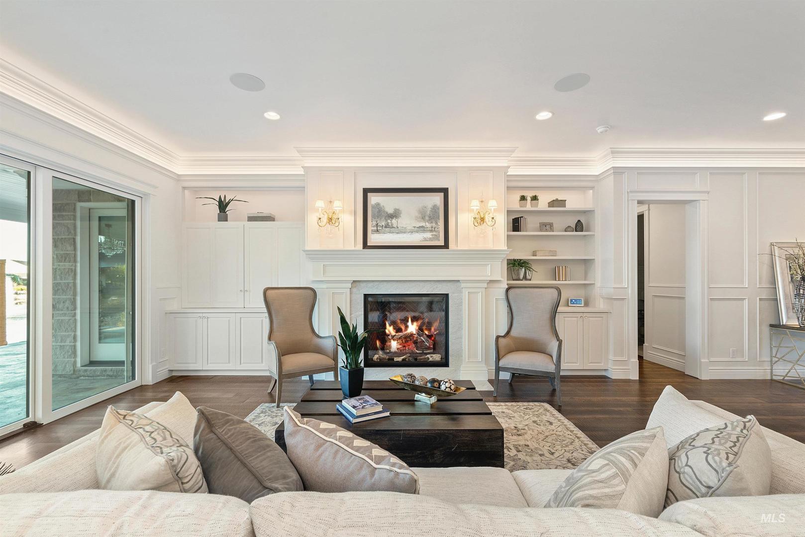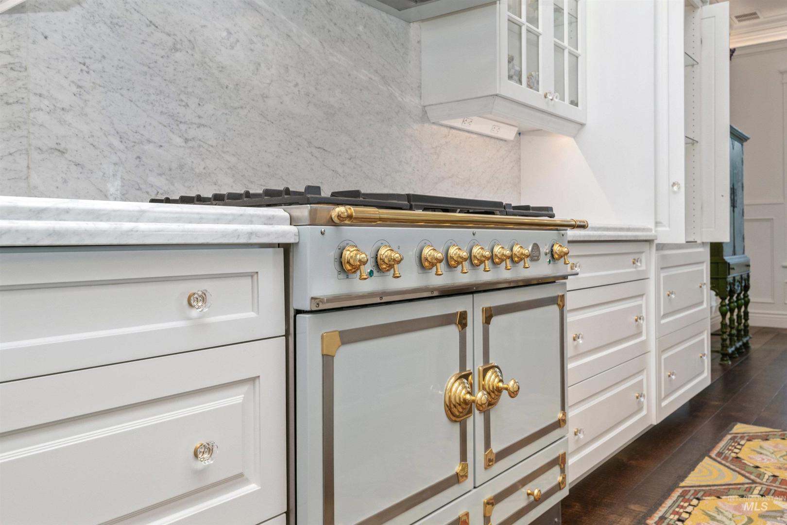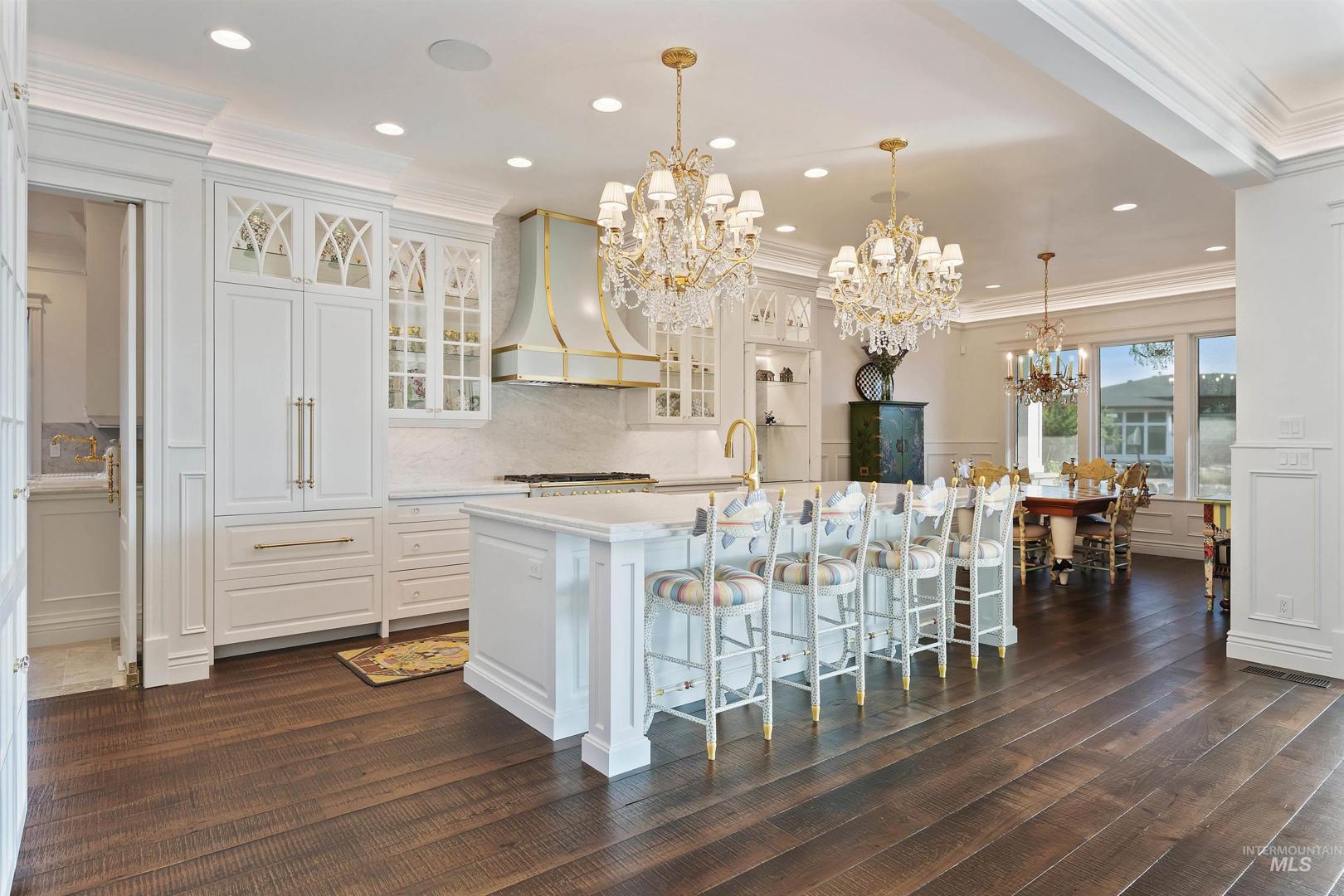Experience the romance of French-inspired design in this exquisite residence, perfectly crafted for effortless entertaining. A sparkling pool takes center stage in the backyard, set beside a tranquil community pond--creating a private, resort-like setting with serene water views. Inside Carrera marble flows throughout, complementing warm walnut hardwood floors and extensive crown molding. The heart of the home is a culinary masterpiece: the main kitchen features a LaCornue French oven beneath a custom-painted hood, the perfect centerpiece for creating unforgettable meals. A separate prep kitchen, fully outfitted with Thermador appliances--keeping the main space pristine while you cook. A sweeping staircase w/ ornate metalwork leads to an upstairs living w/ bedrooms, office, and covered balcony with a fire pit-perfect for evening soirees under the stars. Additional luxuries include an elevator for convenience and bespoke arch details at every turn. Here`s your invitation to live the French lifestyle.