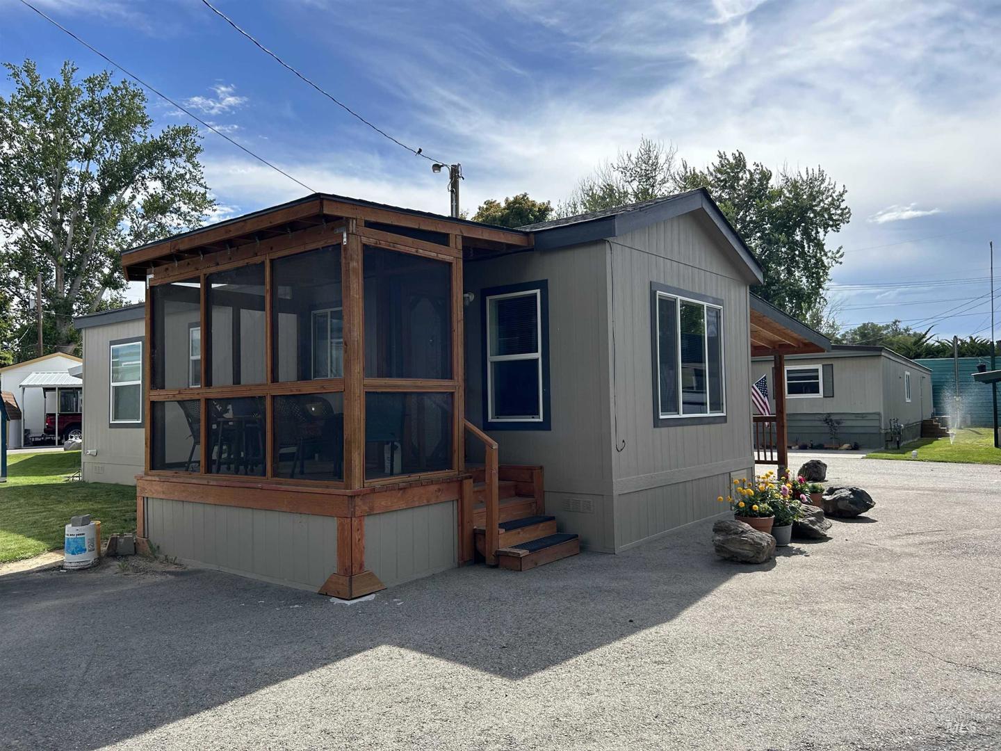 Do you dream of waking up every day to stunning views of the Payette River! This charming 1 Bed/1 Bath manufactured home, offers a smart floor plan with minimal upkeep perfect for easy living. Relax on your custom oversized 14x9 ft screened-in porch, watch the river flow by. The home is filled with natural light: living room, bedroom, and kitchen windows all showcasing picturesque river views. Inside you`ll find modern comforts incl. SS appliances in the kitchen, built-in microwave, dishwasher, refrigerator, oven range, and an apron sink. HVAC all electric. For your convenience, the home comes with a brand new 27x15.5 ft carport, equipped with a ramp and stairs to protect you from the elements. An 8x6 storage shed and beautifully landscaped yard add to the appeal. 55+ community, this home is a gem. Just minutes away from hospitals, stores, and restaurants. Plus, you can fish right out your front door!