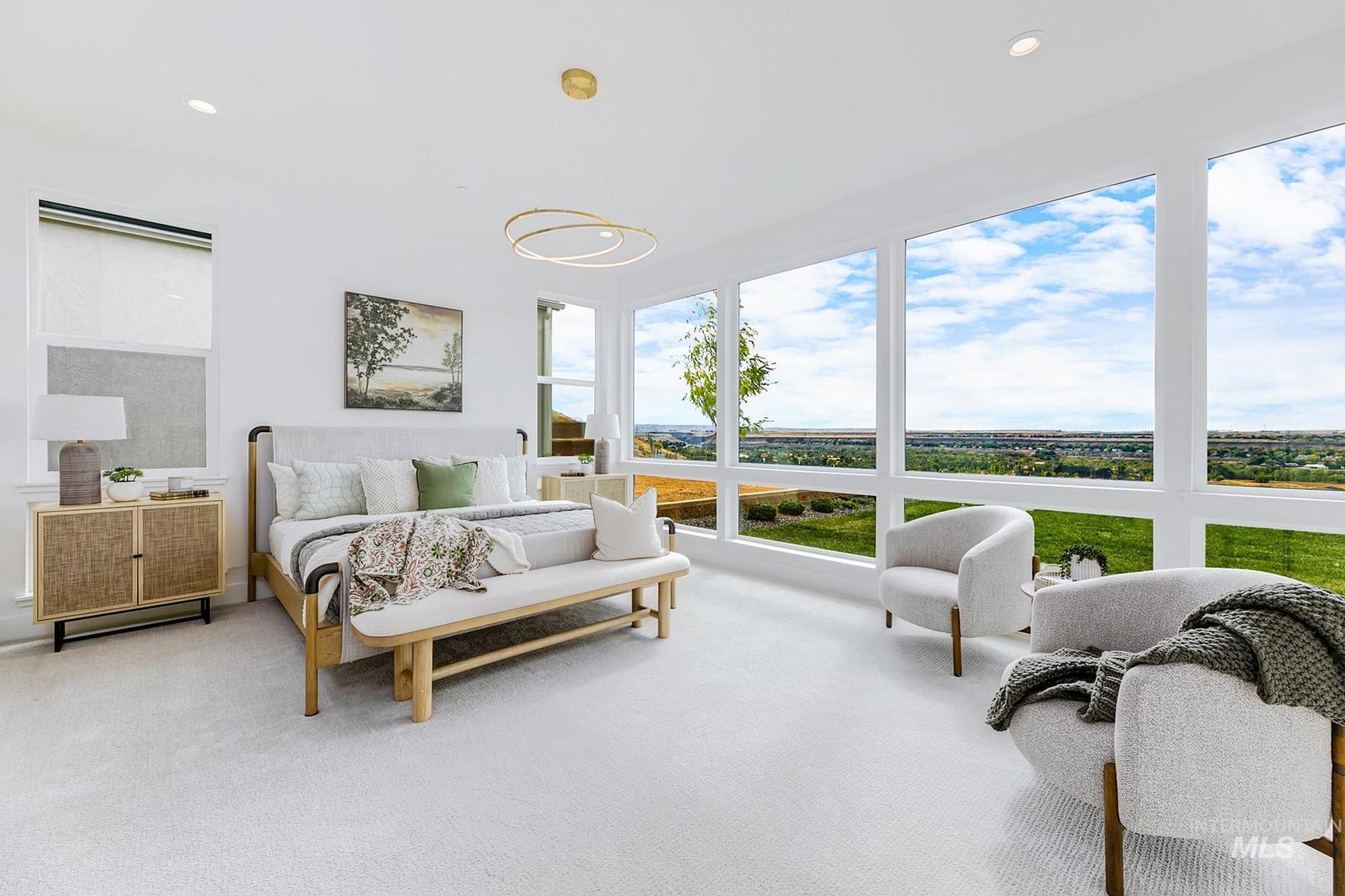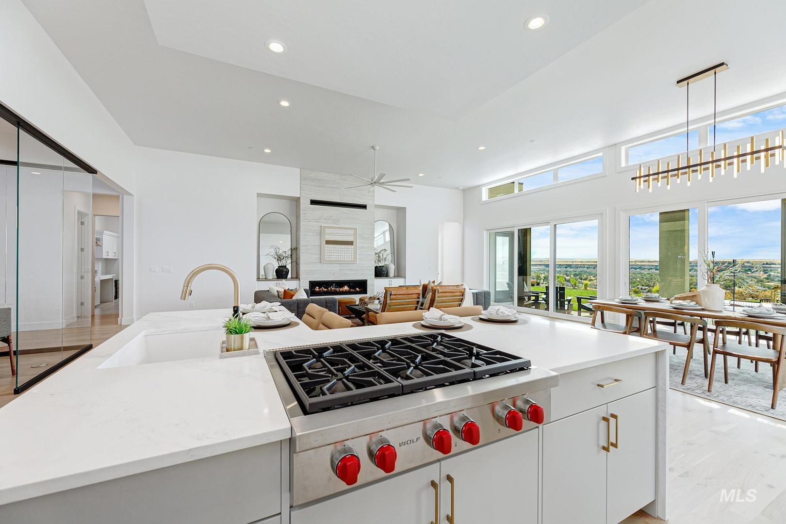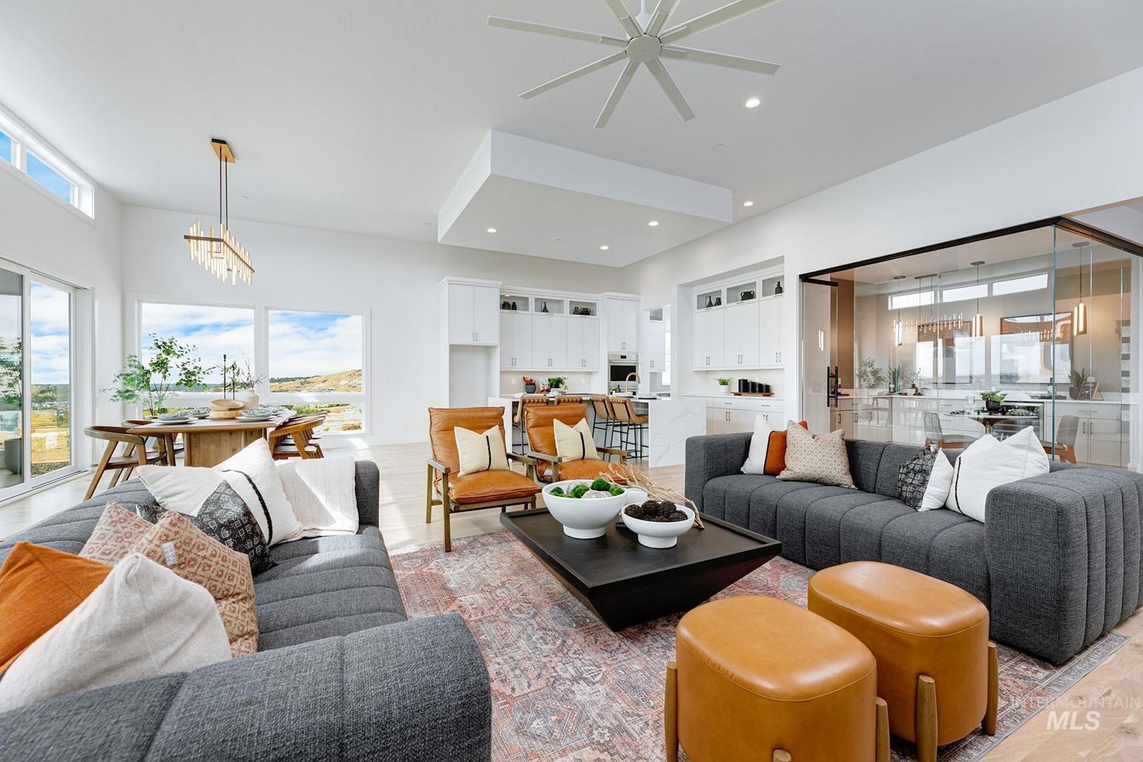 Ask about 3.49% interest rate with a 3-2-1 buydown. Discover this stunning home with unobstructed panoramic views, positioned on a rim lot in Boise’s premier foothills community. From the grand foyer, step into a great room with 12-foot ceilings, a sleek linear fireplace, and abundant natural light. The open kitchen is a chef’s dream, featuring a large island, Wolf and Sub-Zero appliances, and handsome cabinetry, illuminated by oversized glass multi-sliding doors. Tucked away you’ll find the primary, where a wall of windows frames breathtaking views, complemented by a luxurious bath with a freestanding tub, full-tiled shower, and dual walk-in closets. Other highlights include a glass-enclosed wine room, a club room, and a spacious covered patio that’s perfect for taking in the best views in the city. Nestled in the Boise Foothills, Harris Ridge offers breathtaking scenery, luxurious amenities, extensive recreational opportunities, and convenient access to downtown Boise. Home is ready now.