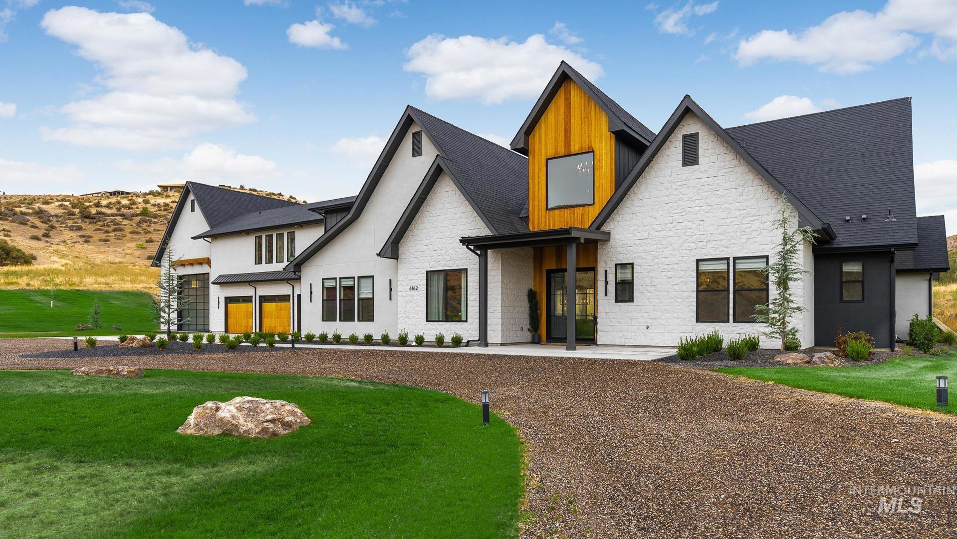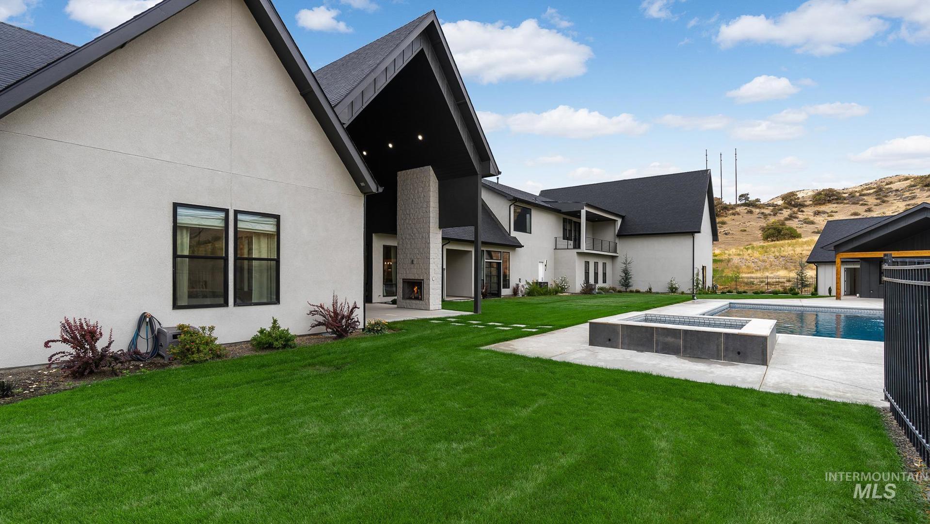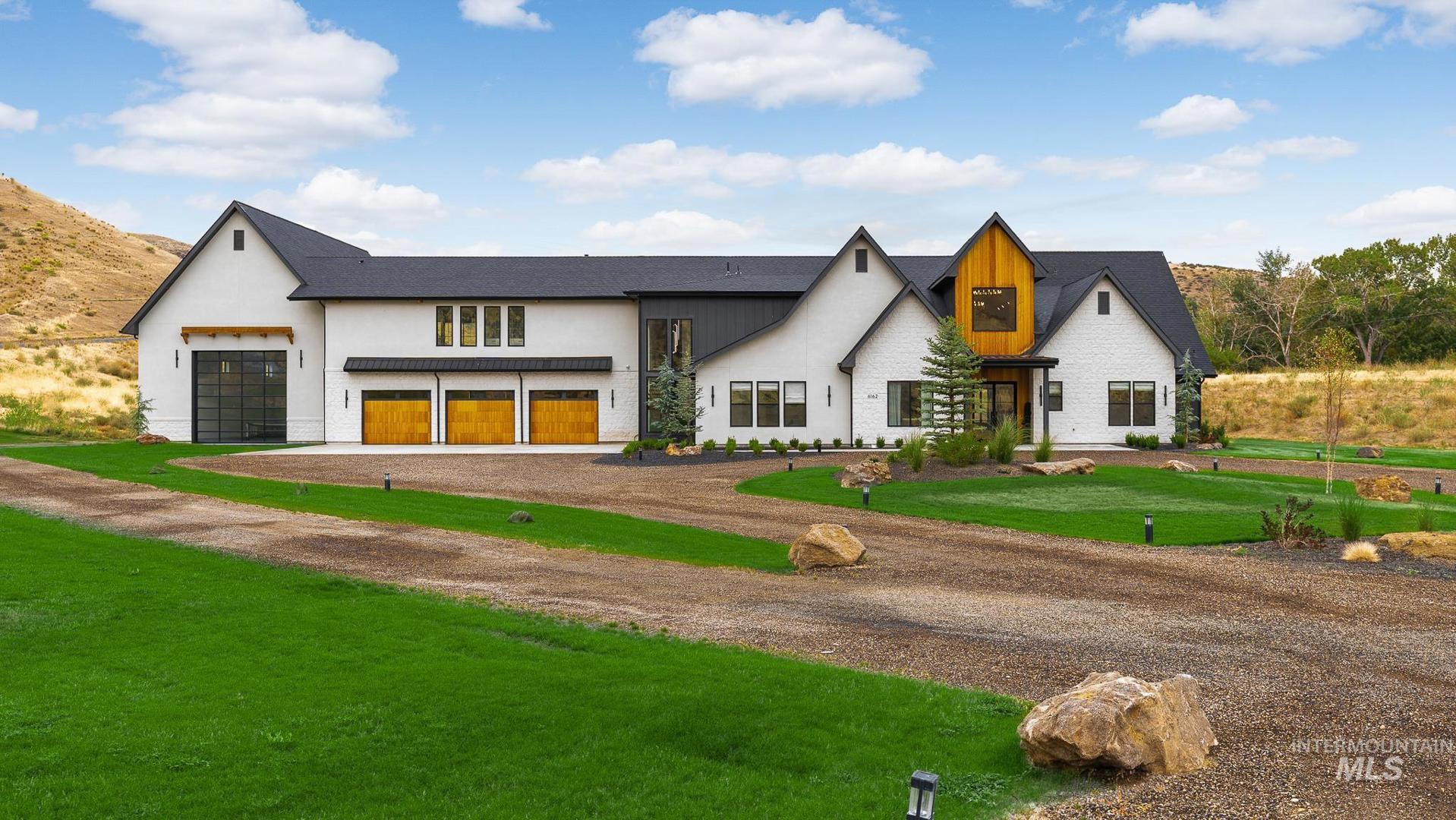 This brand new, custom-built masterpiece—a true gem of the Treasure Valley is soon to be annexed into Eagle. Sitting on two parcels totaling 10.49 acres with no HOA and agricultural zoning, this property benefits from ag-tax rate and allows for equestrian use. With over 6,600 sqft of meticulously designed living space—including a pool house—this property defines modern luxury. No expense was spared in the creation of this extraordinary home. Highlights include: Chef’s kitchen featuring a 72" Thermador built-in refrigerator, built-in espresso machine, 1,000 CFM range hood, Restoration Hardware light fixtures and architectural framed glass throughout. Indoor wellness and entertainment amenities such as a gym with sauna, indoor sports court, and a private movie theater. Smart, modern comforts throughout: motorized sheer and blackout curtains, indoor/outdoor speaker system, heated bathroom floors, and premium high-end furnishings. Resort-style backyard with a 400,000 BTU pool/spa heater and 20-person sunken fire pit—perfect for year-round enjoyment. The 1200ft primary suite is a private sanctuary, featuring a custom king bedroom set, fireplace, private deck, ensuite laundry, and a spa-inspired bathroom that rivals 5-star resorts. Once finished, the pool house can accommodate guests or extended family with ease—ideal for entertaining or multi-generational living! Don`t miss out! BTVAI.