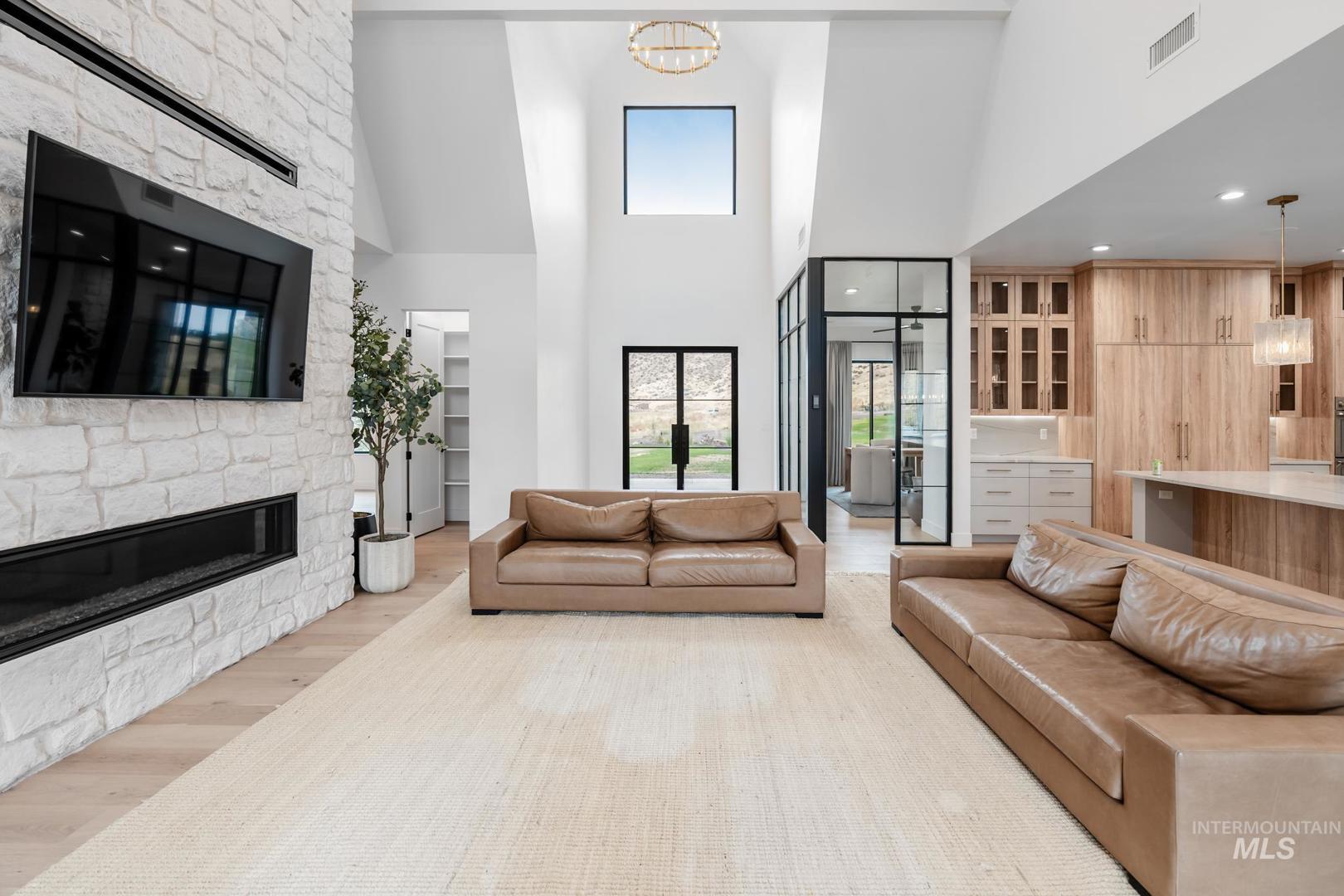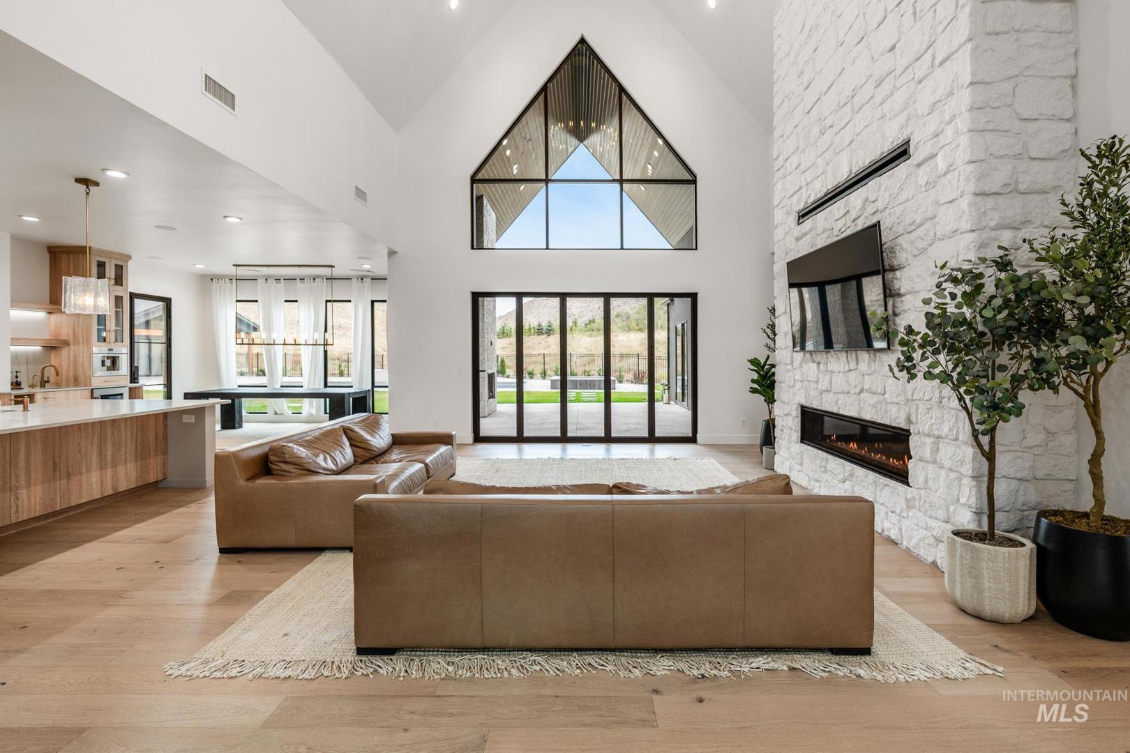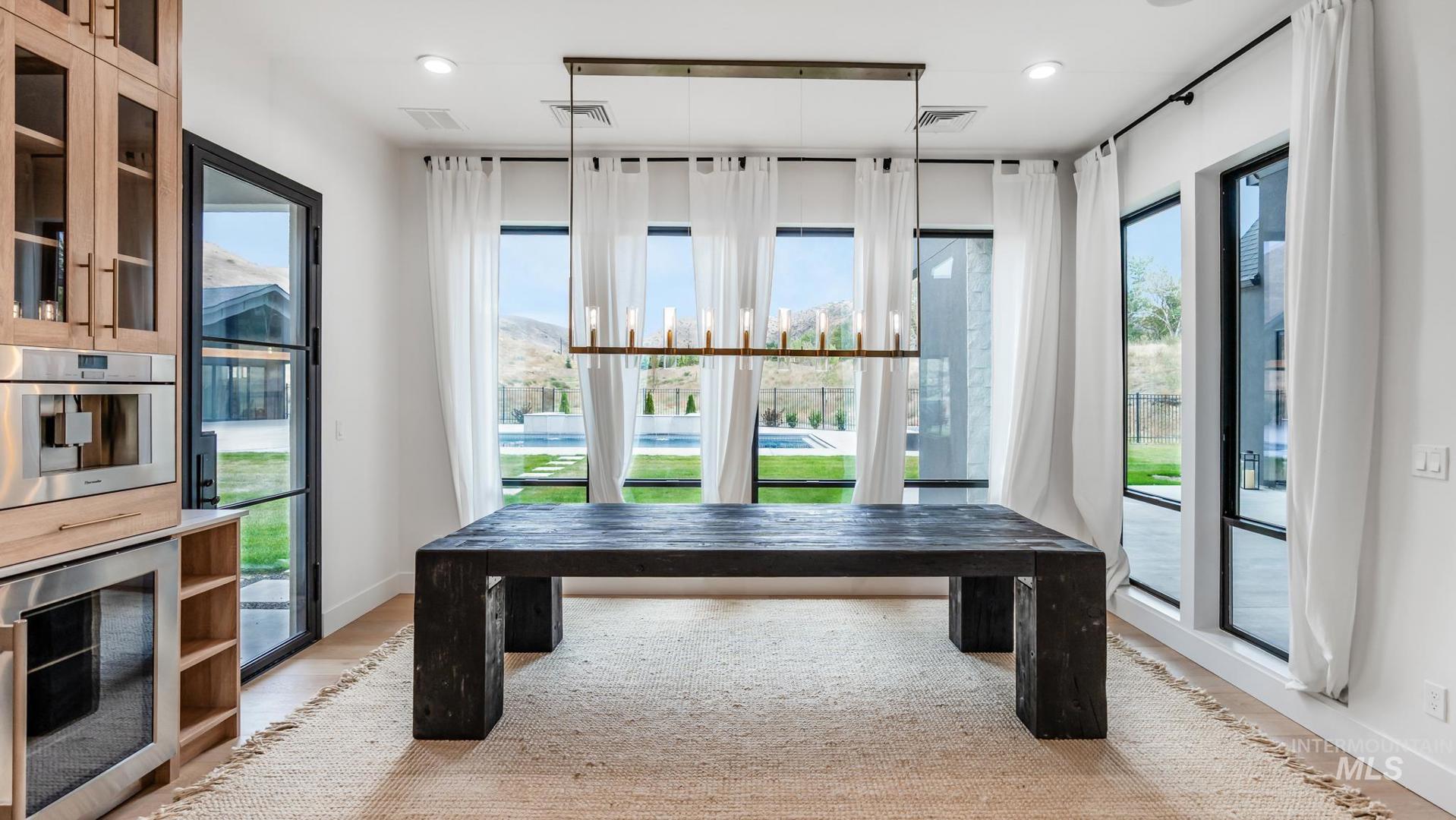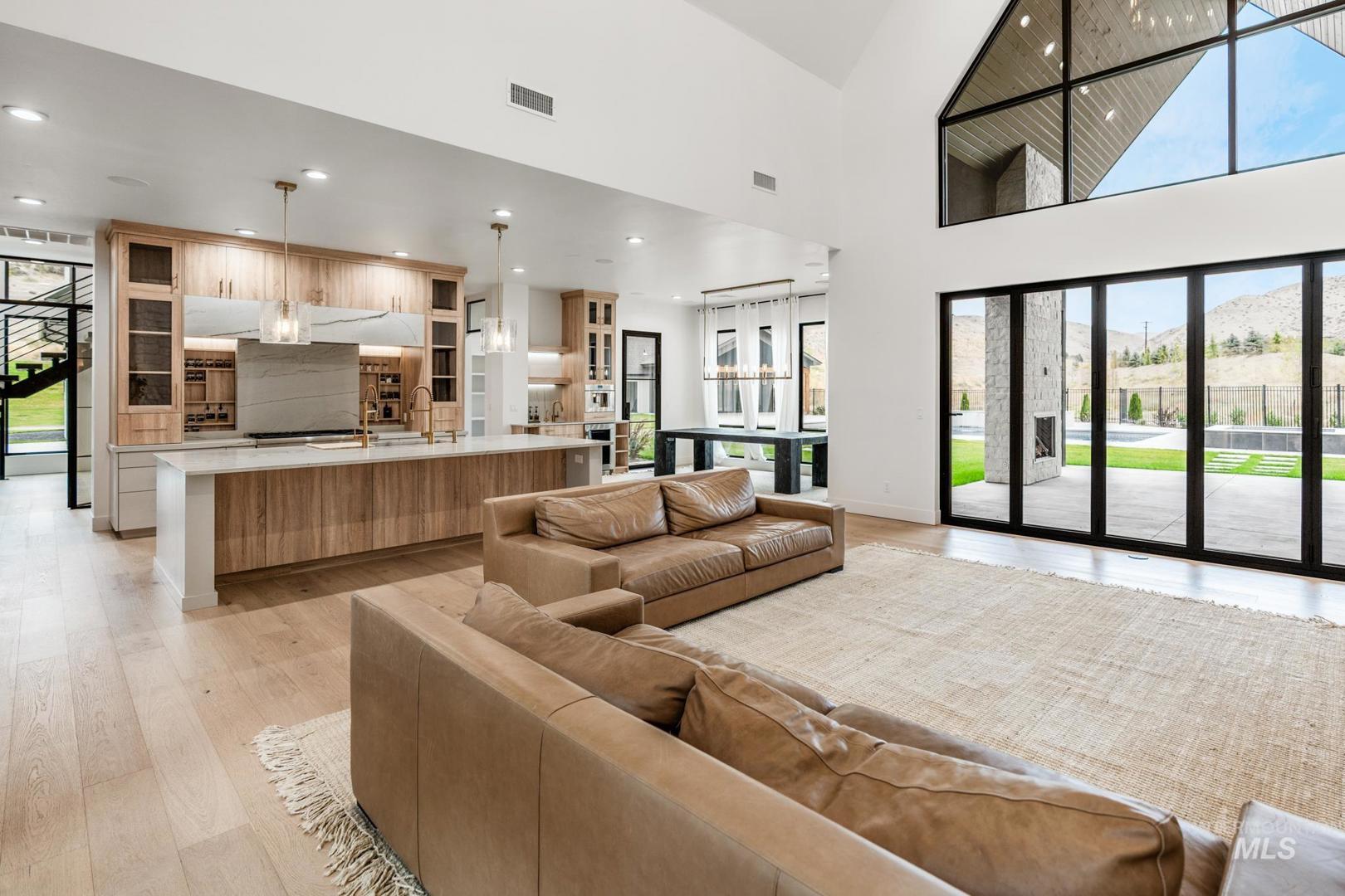 This brand new, custom-built masterpiece—a true gem of the Treasure Valley is soon to be annexed into Eagle. Sitting on two parcels totaling 10.49 acres with no HOA and agricultural zoning, this property benefits from ag-tax rate and allows for equestrian use. With over 6,600 sqft of meticulously designed living space—including a pool house—this property defines modern luxury. No expense was spared in the creation of this extraordinary home. Highlights include: Chef’s kitchen featuring a 72" Thermador built-in refrigerator, built-in espresso machine, 1,000 CFM range hood, Restoration Hardware light fixtures and architectural framed glass throughout. Indoor wellness and entertainment amenities such as a gym with sauna, indoor sports court, and a private movie theater. Smart, modern comforts throughout: motorized sheer and blackout curtains, indoor/outdoor speaker system, heated bathroom floors, and premium high-end furnishings. Resort-style backyard with a 400,000 BTU pool/spa heater and 20-person sunken fire pit—perfect for year-round enjoyment. The 1200ft primary suite is a private sanctuary, featuring a custom king bedroom set, fireplace, private deck, ensuite laundry, and a spa-inspired bathroom that rivals 5-star resorts. Once finished, the pool house can accommodate guests or extended family with ease—ideal for entertaining or multi-generational living! Don`t miss out! BTVAI.