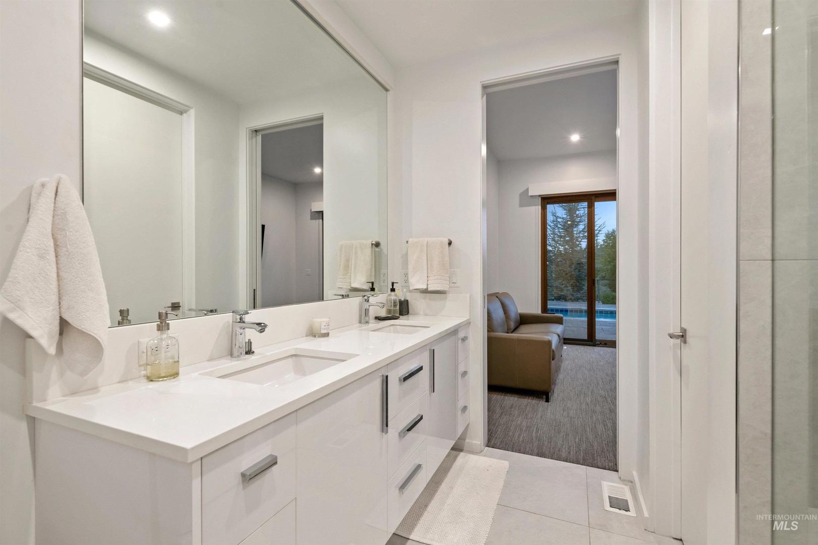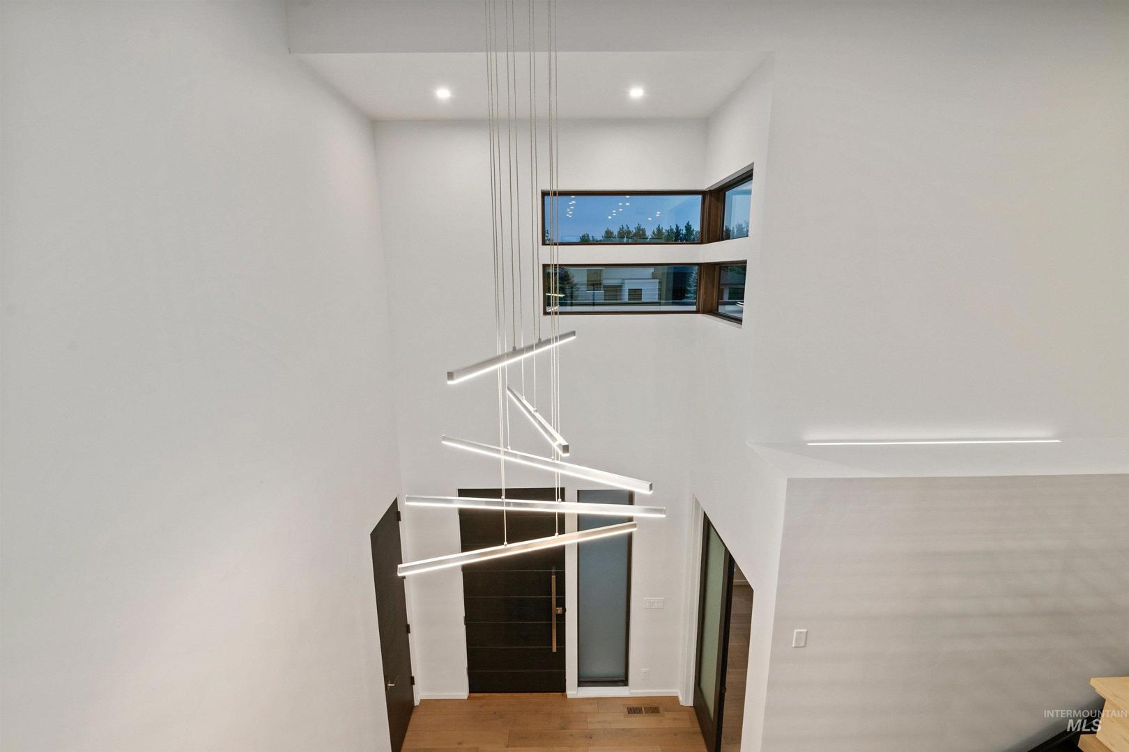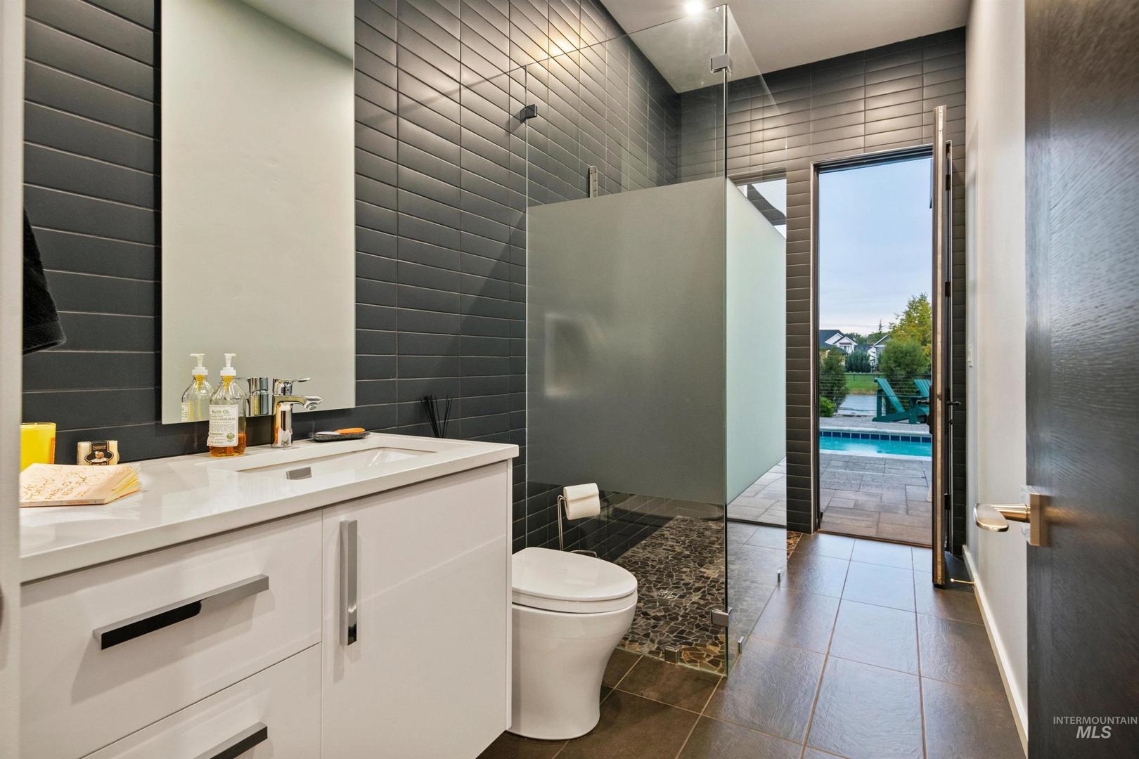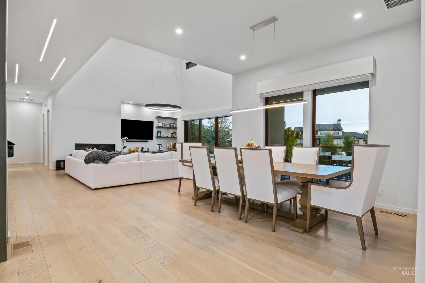 Set on a peaceful lake in the gated section of Mace River Ranch along the Boise River, this modern architectural masterpiece captures the essence of refined waterfront living. Clean lines, warm textures, and expansive glass frame mountain and water views from every angle. The great room is the heart of the home—soaring ceilings, a floating staircase, and seamless indoor/outdoor flow create an atmosphere of calm sophistication. Designed for connection, the living spaces open to a private outdoor retreat with heated saltwater pool, paver terrace, and multiple areas to relax or entertain. The chef’s kitchen combines form and function with custom cabinetry, statement lighting, and a generous island perfect for gatherings. Two main-level suites offer comfort and privacy, while the upper level provides flexible spaces for work, guests, theatre room, and workout areas. Theatre room is the 4th bedroom. Every finish, every line, every view reflects an uncompromising attention to detail. This is lakefront living—modern, effortless, and breathtaking.