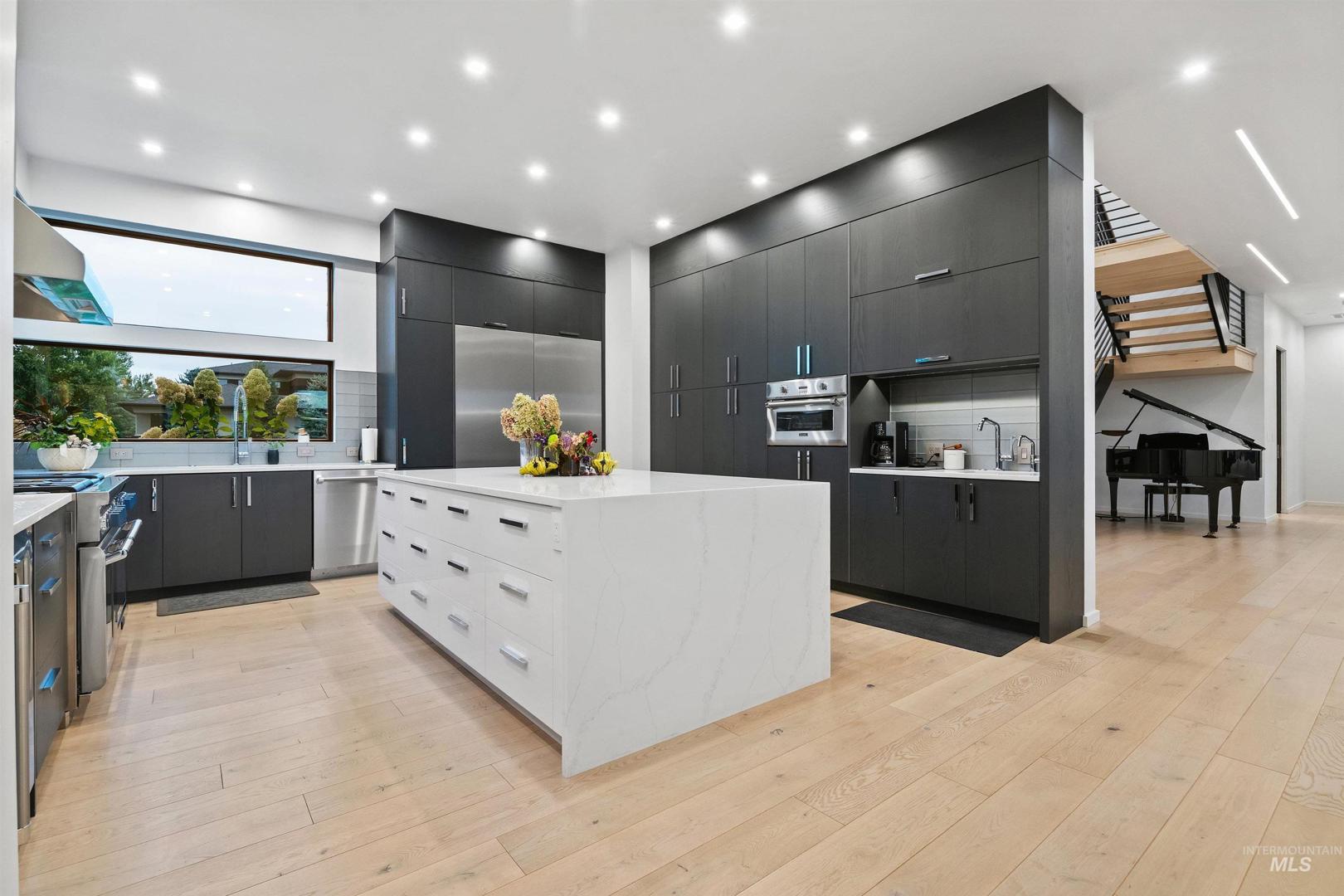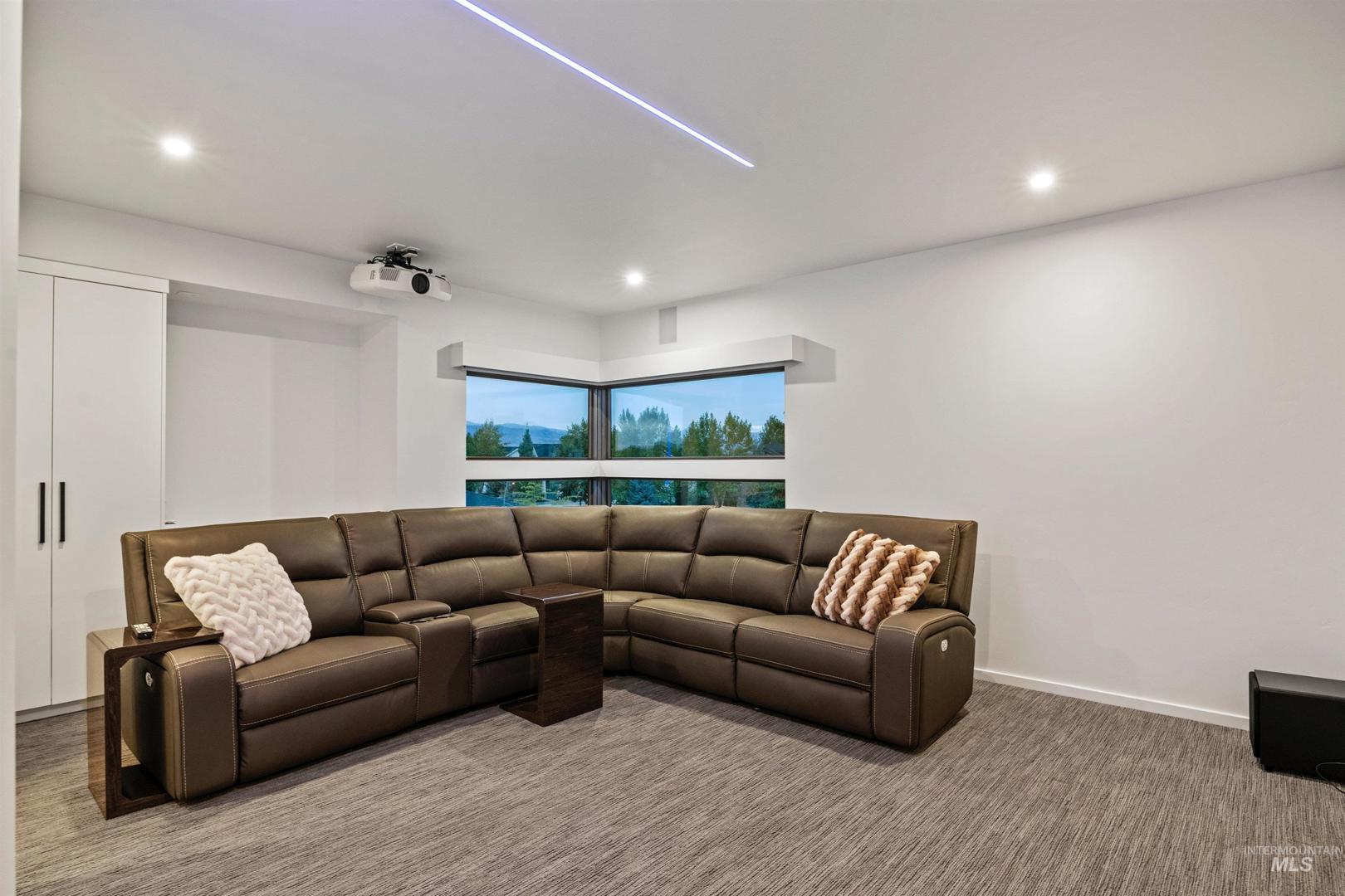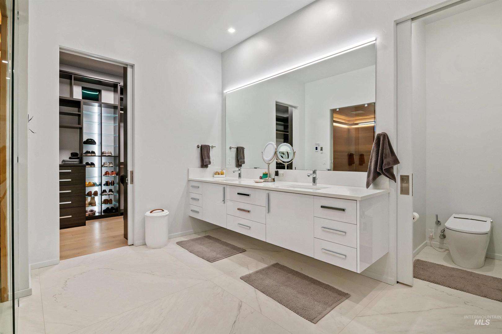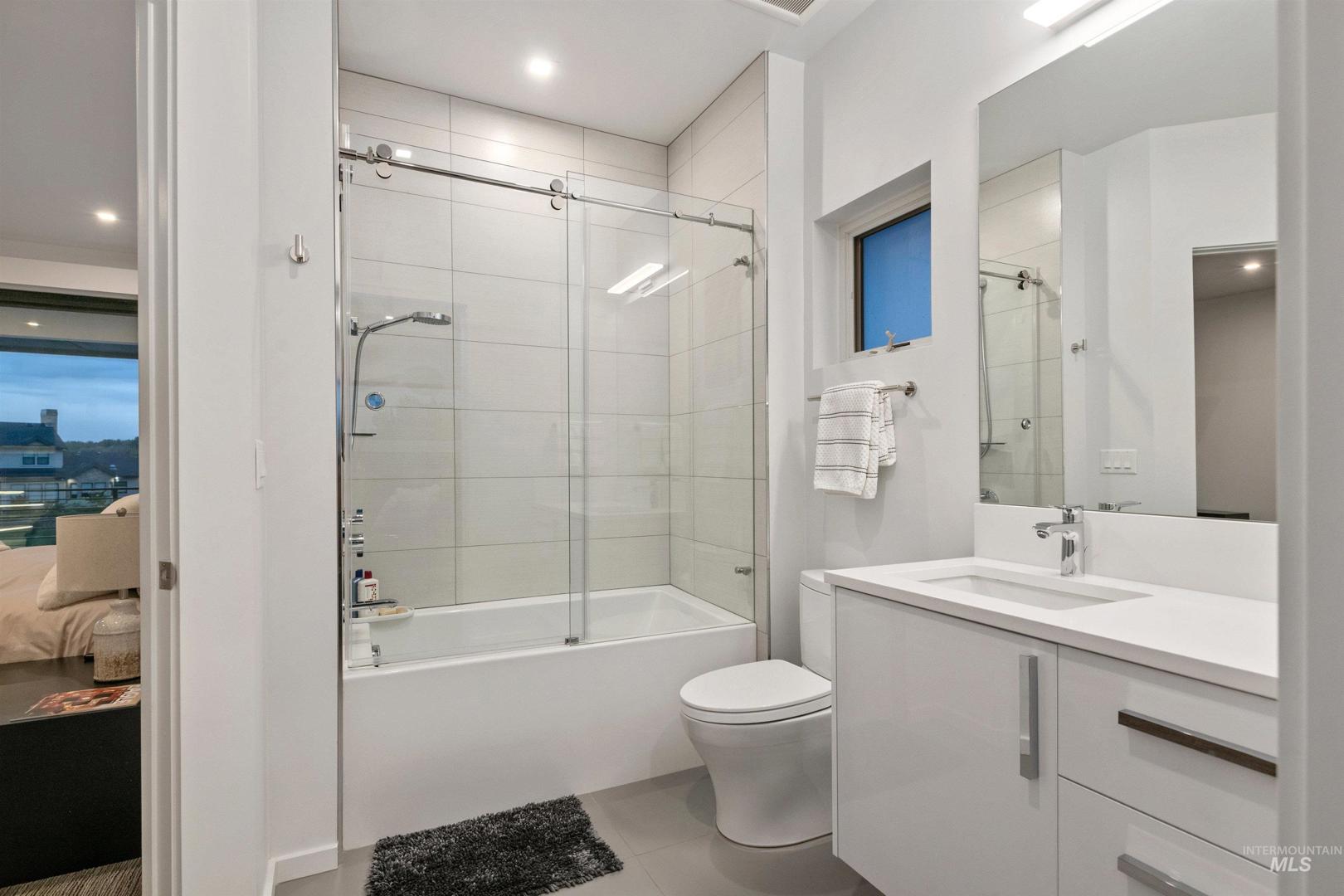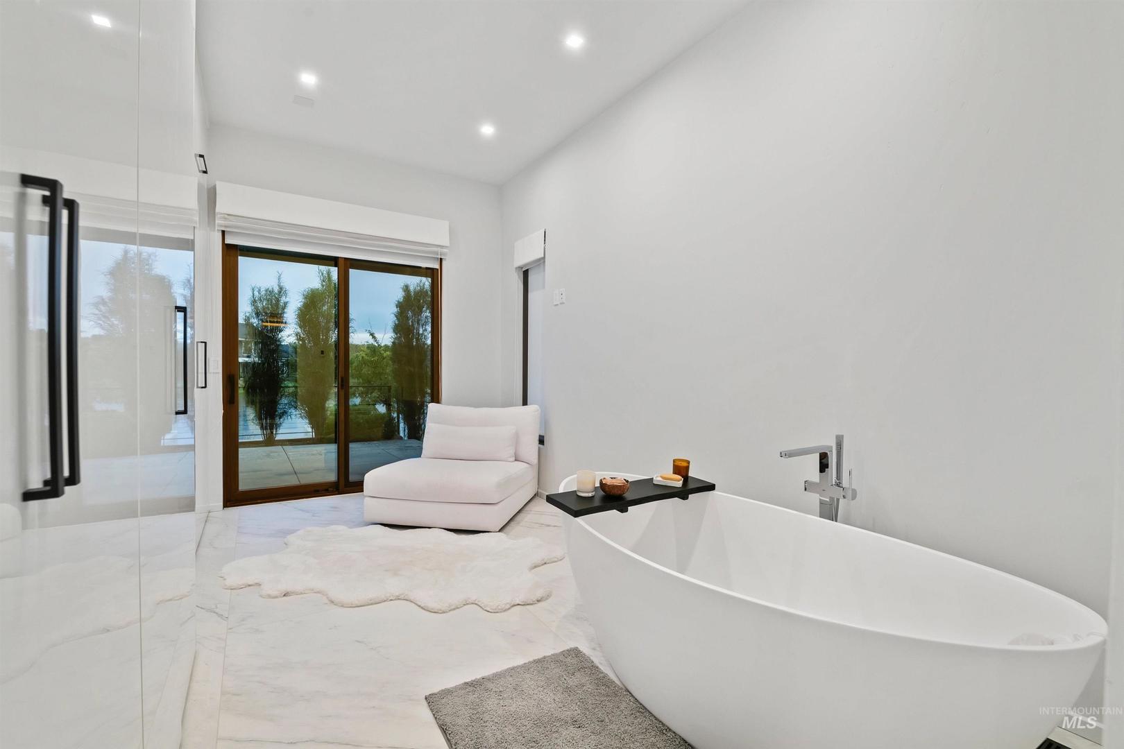 Set on a peaceful lake in the gated section of Mace River Ranch along the Boise River, this modern architectural masterpiece captures the essence of refined waterfront living. Clean lines, warm textures, and expansive glass frame mountain and water views from every angle. The great room is the heart of the home—soaring ceilings, a floating staircase, and seamless indoor/outdoor flow create an atmosphere of calm sophistication. Designed for connection, the living spaces open to a private outdoor retreat with heated saltwater pool, paver terrace, and multiple areas to relax or entertain. The chef’s kitchen combines form and function with custom cabinetry, statement lighting, and a generous island perfect for gatherings. Two main-level suites offer comfort and privacy, while the upper level provides flexible spaces for work, guests, theatre room, and workout areas. Theatre room is the 4th bedroom. Every finish, every line, every view reflects an uncompromising attention to detail. This is lakefront living—modern, effortless, and breathtaking.