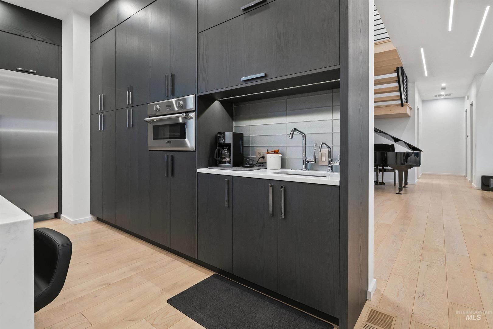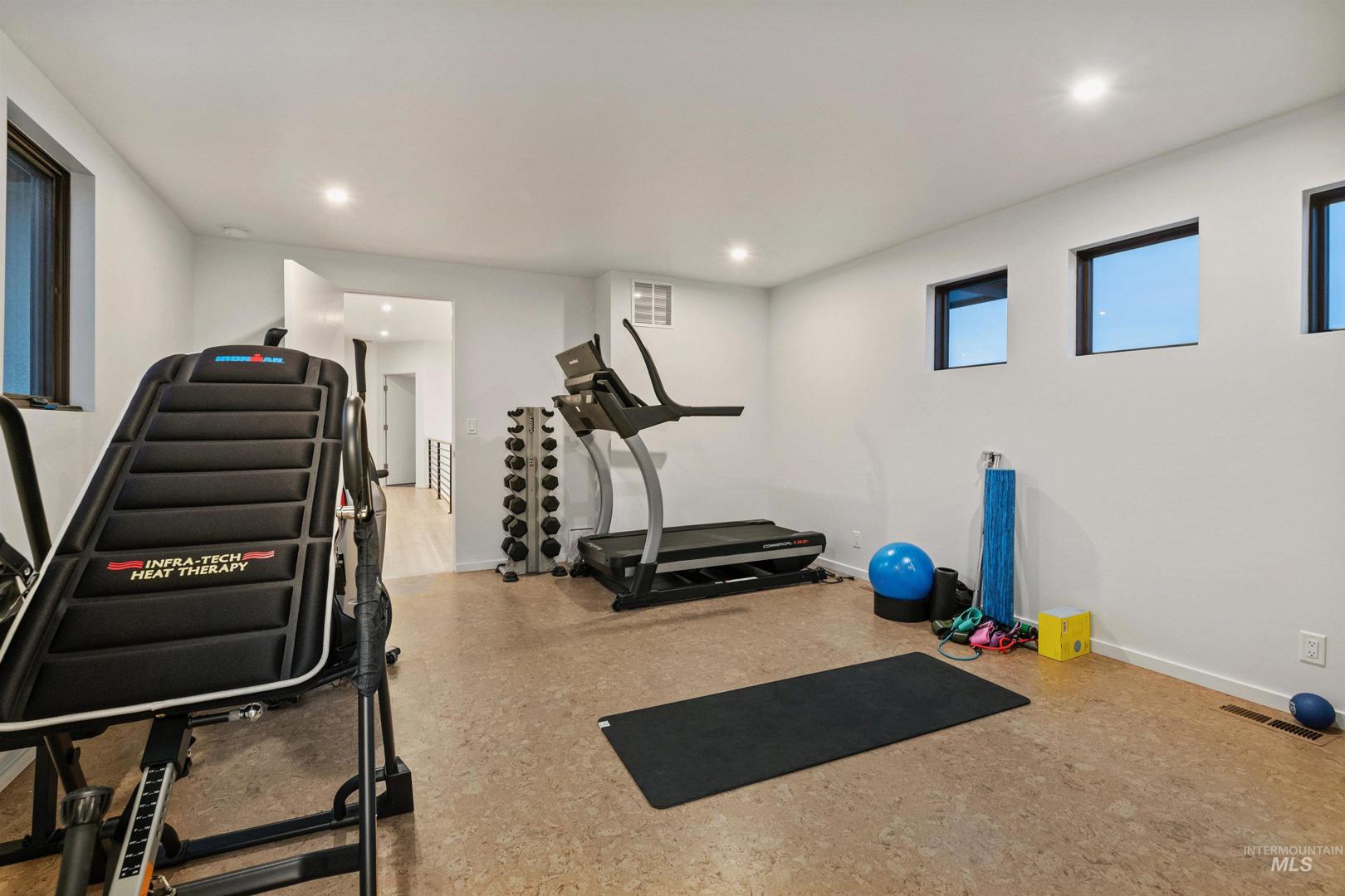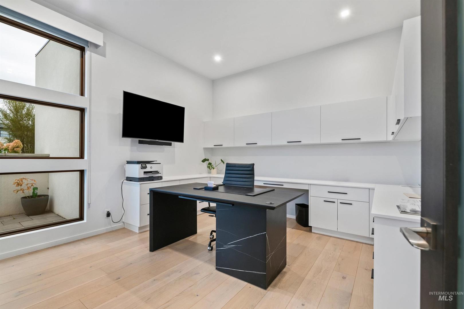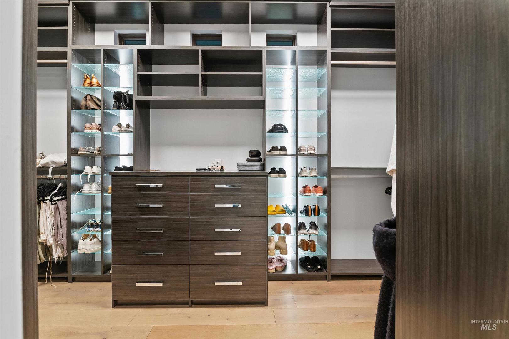 Set on a peaceful lake in the gated section of Mace River Ranch along the Boise River, this modern architectural masterpiece captures the essence of refined waterfront living. Clean lines, warm textures, and expansive glass frame mountain and water views from every angle. The great room is the heart of the home—soaring ceilings, a floating staircase, and seamless indoor/outdoor flow create an atmosphere of calm sophistication. Designed for connection, the living spaces open to a private outdoor retreat with heated saltwater pool, paver terrace, and multiple areas to relax or entertain. The chef’s kitchen combines form and function with custom cabinetry, statement lighting, and a generous island perfect for gatherings. Two main-level suites offer comfort and privacy, while the upper level provides flexible spaces for work, guests, theatre room, and workout areas. Theatre room is the 4th bedroom. Every finish, every line, every view reflects an uncompromising attention to detail. This is lakefront living—modern, effortless, and breathtaking.