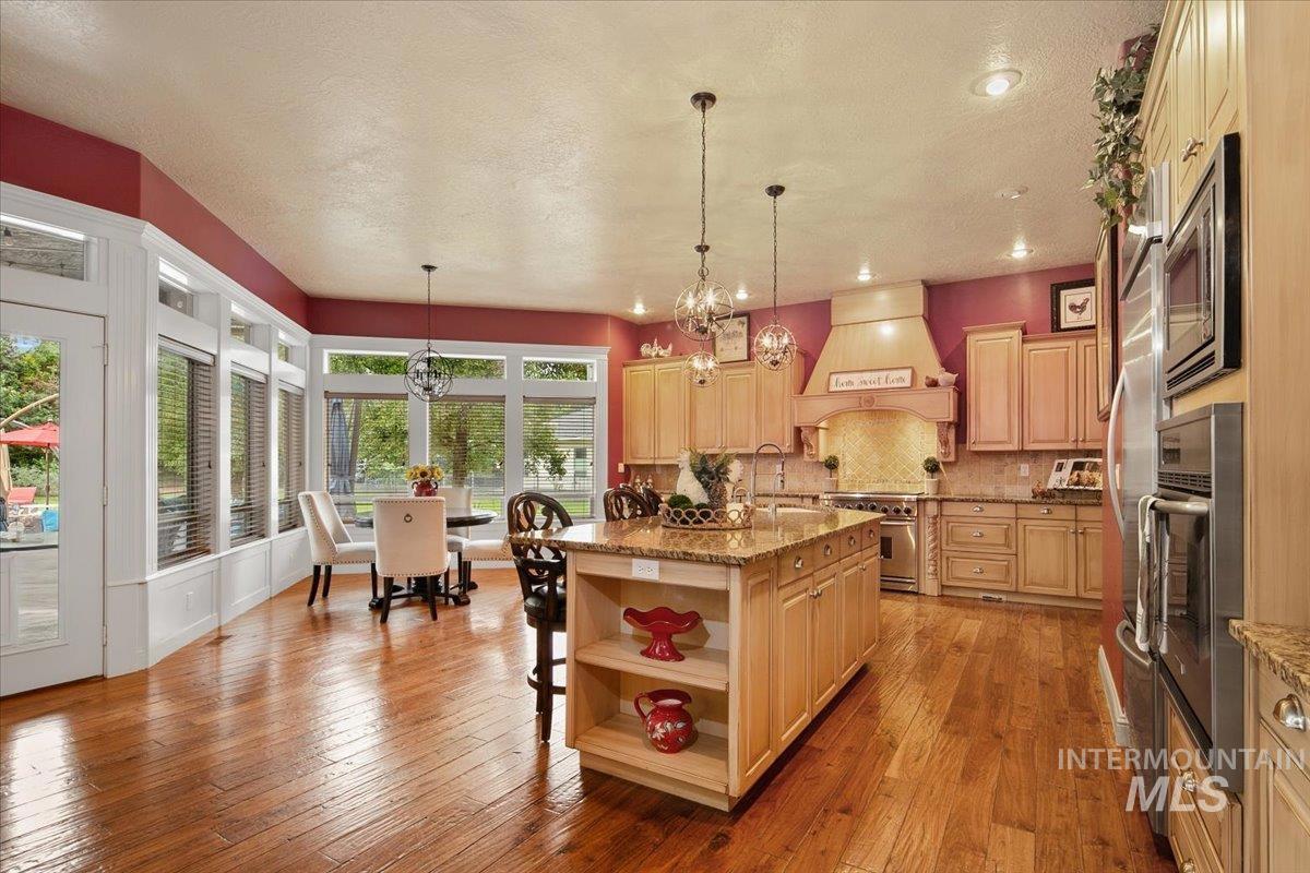 This exceptional Wedgewood Estates residence in Eagle is the epitome of refined luxury. Impeccably landscaped grounds highlight a stately circular drive and a commanding portico entrance that offers an arrival of distinction. Inside, soaring ceilings and graceful interior balconies enhance the grandeur, while three exquisite fireplaces and impeccable craftsmanship create a timeless sophistication. The gourmet kitchen is a true showpiece, designed to indulge culinary passions and elevate entertaining. Two lavish master suites provide unmatched comfort, with the main-level retreat featuring a spa-inspired bathroom of remarkable opulence. A spacious four-car garage completes the estate, offering both elegance and practicality in perfect harmony. Plenty of room for an RV garage on the west side of the back yard!