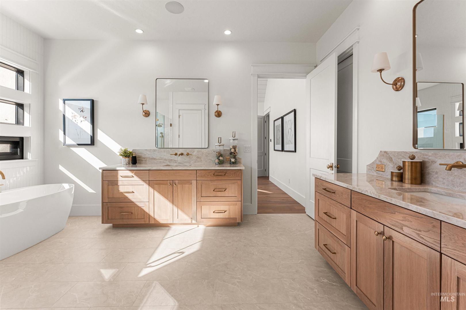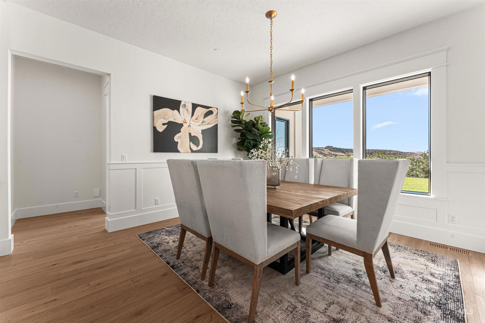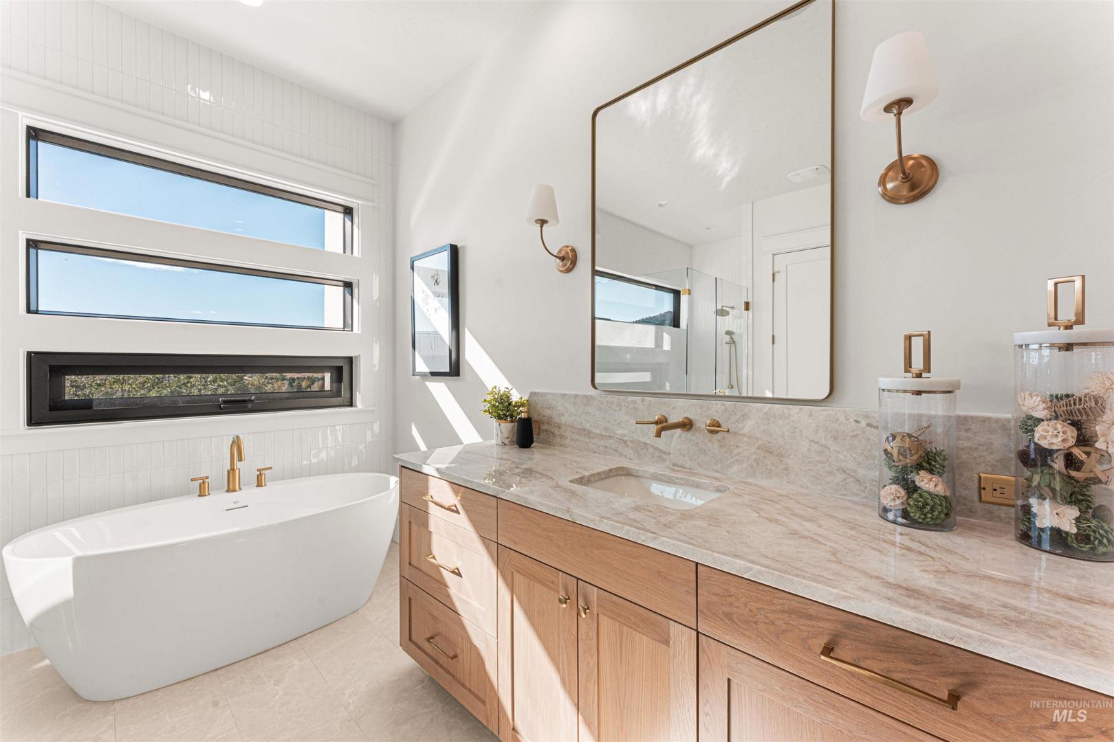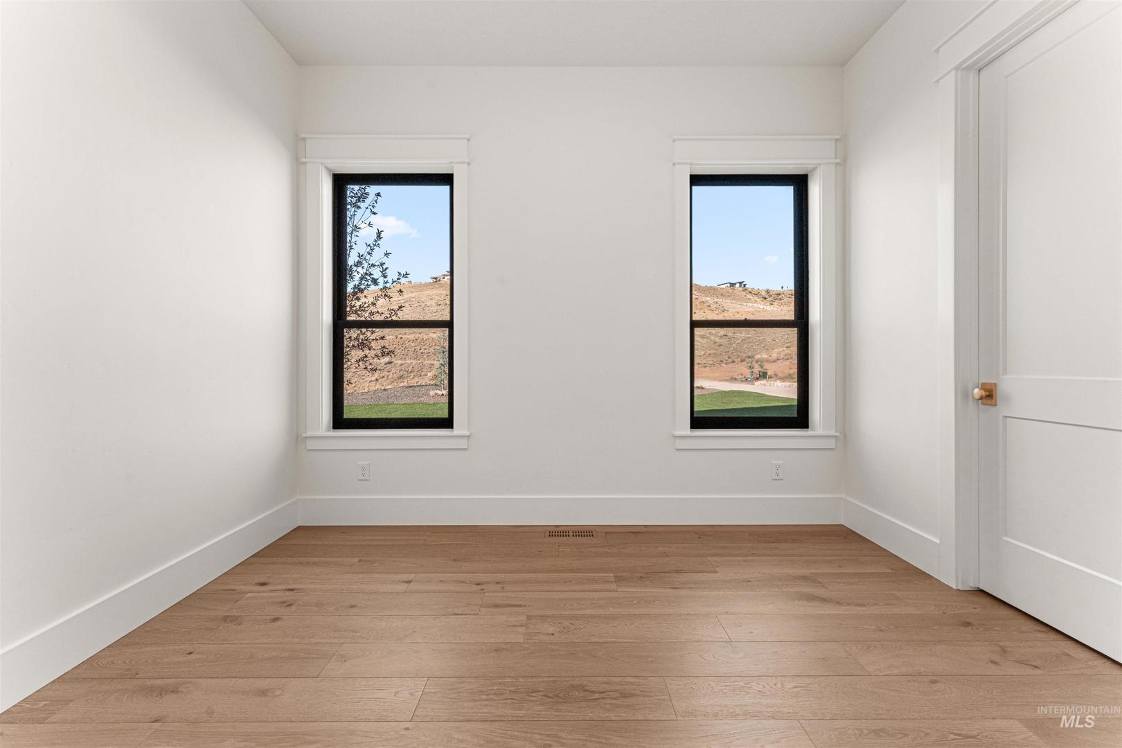 Acreage. Privacy. Views that linger. Welcome to a design-forward, new construction Eagle estate set on 10 private acres with a front-row panorama of the foothills and Shadow Valley Golf course. Inside, glass and light lead the way: a wall of bifold doors opens the great room to an elevated entertaining patio, framing sunrise coffees and sunset horizons. The chef’s kitchen anchors the home with a statement island of Taj Mahal granite, Thermador appliances, hidden/working pantry options, and bespoke lighting; the sleek linear fireplace and white oak floors add quiet luxury. The primary suite is a retreat—serene bedroom, spa-caliber bath (dual vanities, generous shower), and custom-ready closets. A true multi-gen/guest suite offers independence and comfort for long stays. Flexible spaces accommodate office, game, or fitness needs. Purpose-built for Idaho living, the property pairs acreage freedom with modern resilience: EV-charger, Generac generator, premium window package, efficient mechanicals, and a heated 2-car garage/RV bay for toys and travel. Thoughtful drive/parking and gear-friendly storage make weekend adventures effortless. Within reach of Eagle/Boise, beyond the everyday-open the doors and let the cinematic views set the scene.