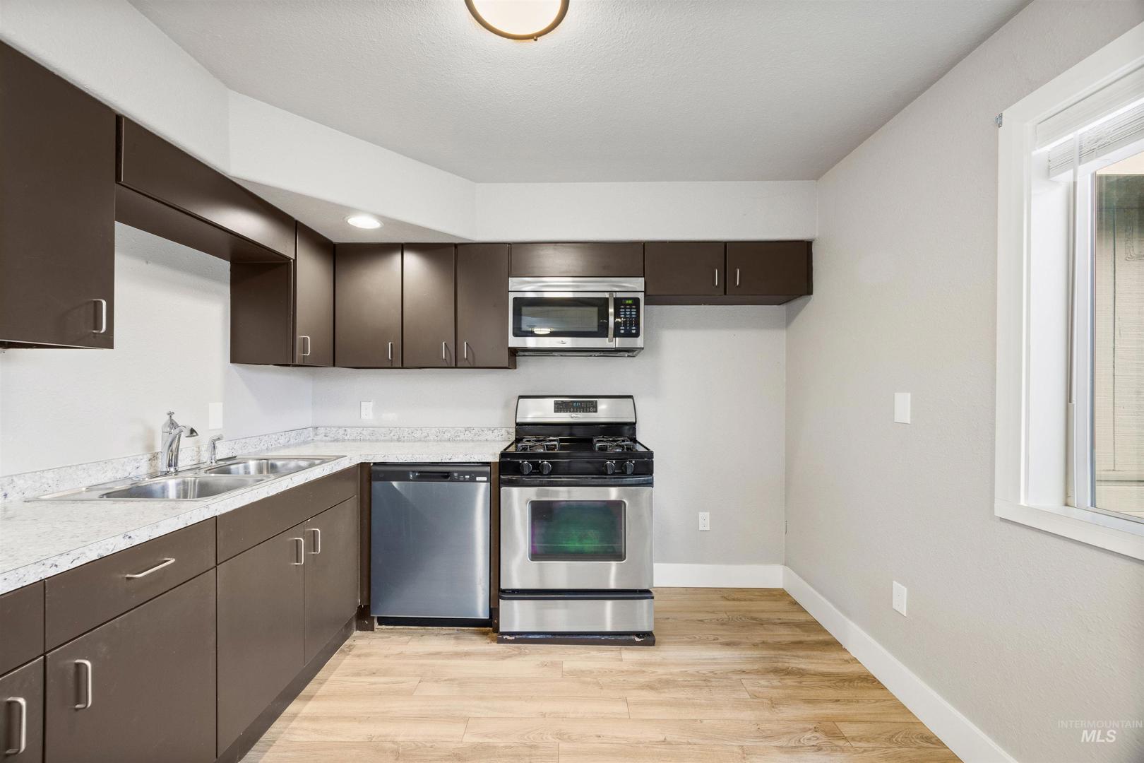 Versatile living in great location near the Eagle foothills. Don`t miss this 4 bedroom, 3 bathroom updated single level home compatible for multi generational living with an optional separate entry to the newly remodeled studio. Studio has all new appliances, flooring, cabinets, windows and paint. Exterior of the home boasts a new roof and exterior paint. Located near biking trails in the foothills, shopping and restaurants. Under a 5 min drive to the Boise river. No CC&R`s. Virtual Staging