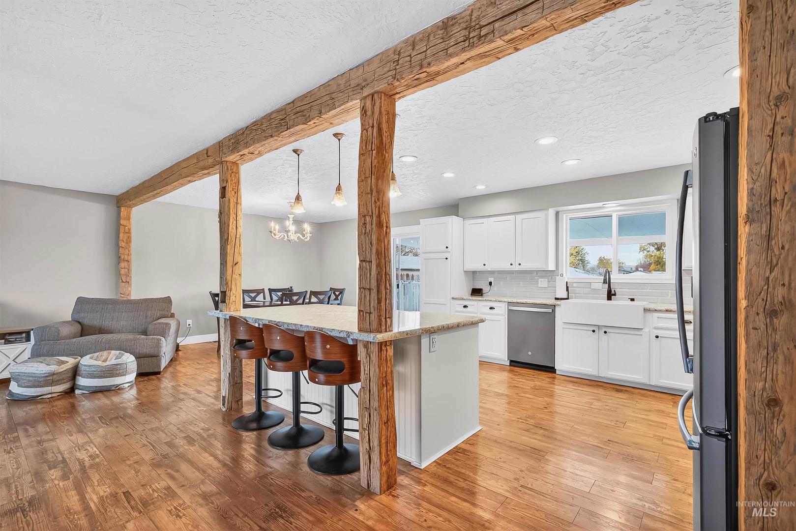 Welcome to your dream oasis — where comfort, space, and style come together beautifully. This impressive 5-bedroom, 3-bathroom home sits on nearly an acre of serene land, offering the perfect blend of functionality and relaxation. Whether you’re looking for room to entertain or space to unwind, this property delivers. The fully fenced grounds feature a dedicated area for animals and in-ground pool that sets the stage for summer gatherings and peaceful evenings outdoors. Inside, the heart of the home is the completely remodeled kitchen showcasing an open-concept layout with gorgeous wood beam accents, ideal for everyday living and entertaining. The spacious primary suite includes a large ensuite bathroom and dual closets, while two additional main-level bedrooms and a guest bath provide plenty of flexibility for family or guests. Downstairs, you’ll discover two more bedrooms, a generous second living area, an office or den, and a utility room. The walkout basement opens directly to the pool and backyard, creating an effortless flow for indoor-outdoor living. This home truly captures the essence of modern comfort and country charm, ready to welcome you home.