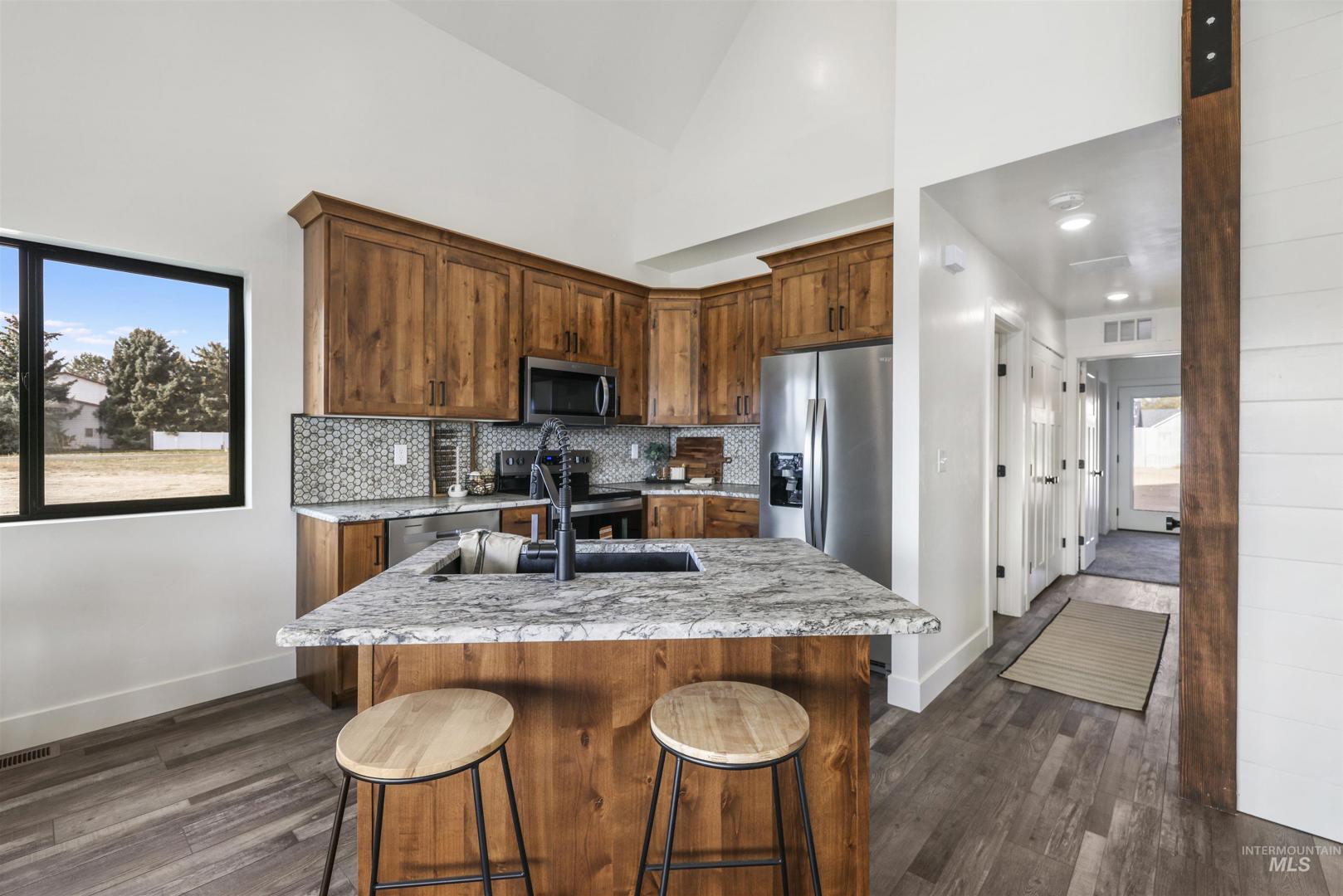 Welcome to brand-new living in the heart of Wendell. This charming three bedroom, two bath home blends modern comfort with small-town Idaho charm. Step inside to an open concept layout filled with natural light, highlighted by soaring 24-foot vaulted ceilings that create a spacious and airy feel. The kitchen and living area flow seamlessly together, providing the perfect space for everyday living and entertaining. Relax on the cute front porch and enjoy quiet mornings or evening sunsets, or retreat to the private primary suite for a peaceful escape. Thoughtful finishes, efficient design and quality craftsmanship make this home move in ready and built for comfort. Whether you are a first-time buyer or looking to simplify, this new construction home delivers the lifestyle you have been searching for in beautiful Wendell, Idaho.