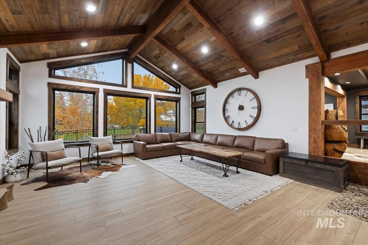 Stunning 6-bed, 6.5-bath modern farmhouse with a PNW twist gated estate on 4.29 acres! 5,546 sqft of luxury living with a climate controlled 4-car garage. Recently built attached 1-bed, 1-bath guest house with full kitchen, office and laundry. Main home features 5 bedrooms with walk-in closets, 5.5 baths, office, multiple family rooms and dining areas. Outside, enjoy a 48’x36’ shop recently finished with closed cell foam insulation, fully rewired, painted and mini-split added for year round temperature control with lean-to, a huge custom chicken coop, and an enclosed animal shelter—perfect for hobby farming or storage. Fully fenced with RV parking, pond, and beautiful open views. The upgrades in 2025 alone were approx. $200k. The entire home was also repainted inside/out this year. There’s NO HOA. Bring your horses, cattle, or most any other farm animals. Located on a nice quiet dead end street. Conveniently close to downtown Middleton, the Boise River and the new Fred Meyer opening in 2026—country living with modern convenience!
