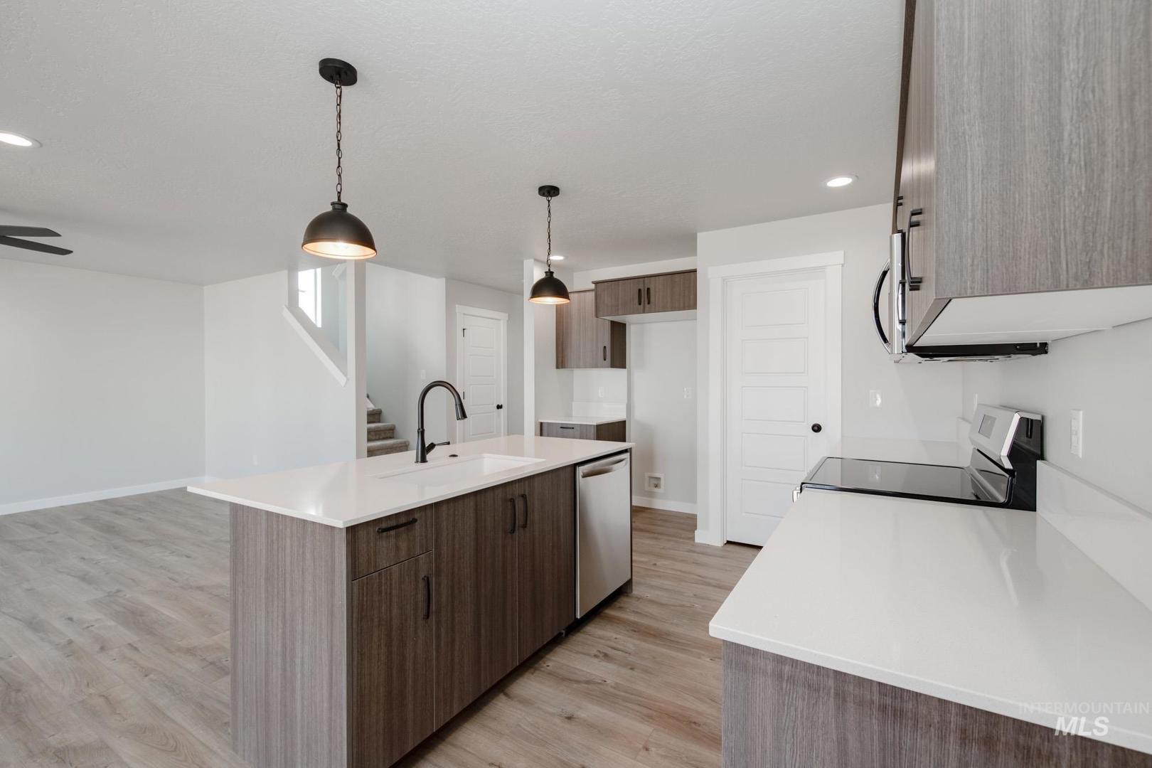 Get up to $30K now thru 11/30/2025 with the Festival of Homes Promo! This brand new home located in vibrant Meridian, Idaho welcomes you with open arms. Live an elevated life in the Dryden 1851. On the main floor, you`ll find an open living room, kitchen, and dining area that has plenty of room to move, plus large windows to allow in natural light. The kitchen comes with stainless steel appliances and stylish solid surface countertops, adding both functionality and aesthetics to the kitchen. Upstairs is a cozy loft, perfect for a media room or playroom. The upper level primary suite is exquisite, including a walk-in closet, walk-in shower, and double vanity sinks. The secondary bedrooms are generously sized and thoughtfully placed for privacy. Plus, it even comes with an upstairs laundry room for the ultimate in convenience. With its thoughtful layout, this home offers a perfect balance of style and function. Enjoy a seamless flow from room to room, making everyday living easy and enjoyable. Photos are similar. All selections are subject to change without notice, please call to verify.