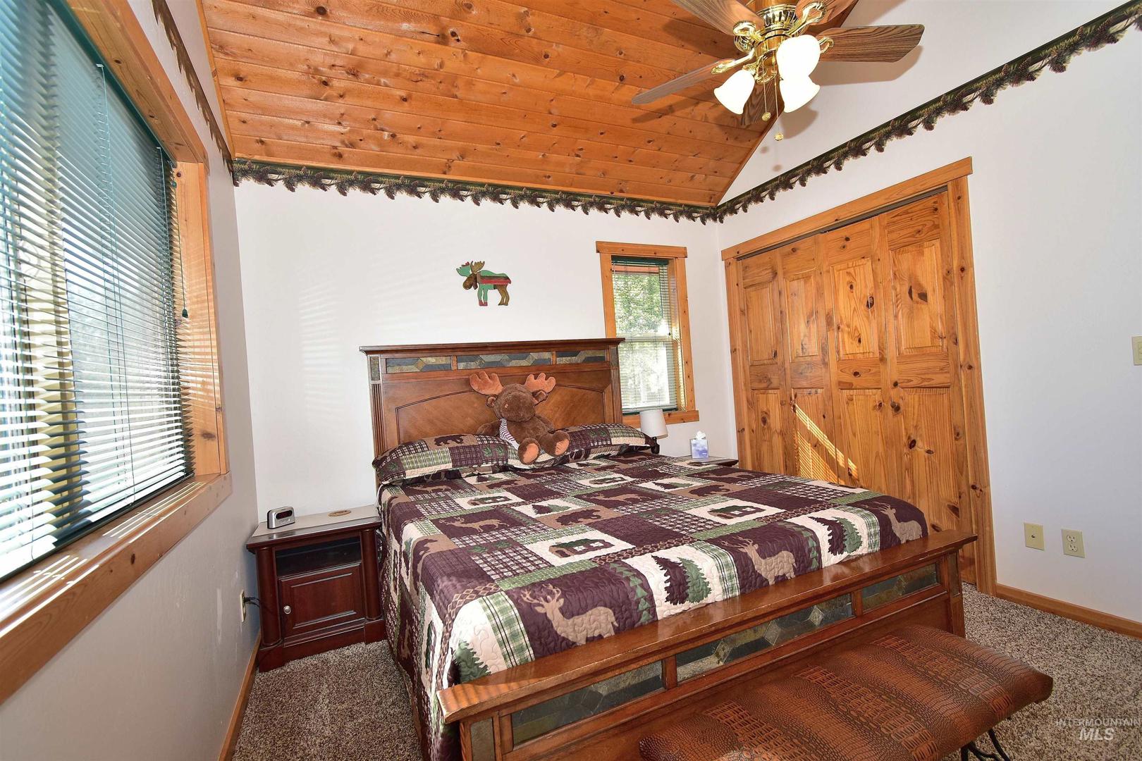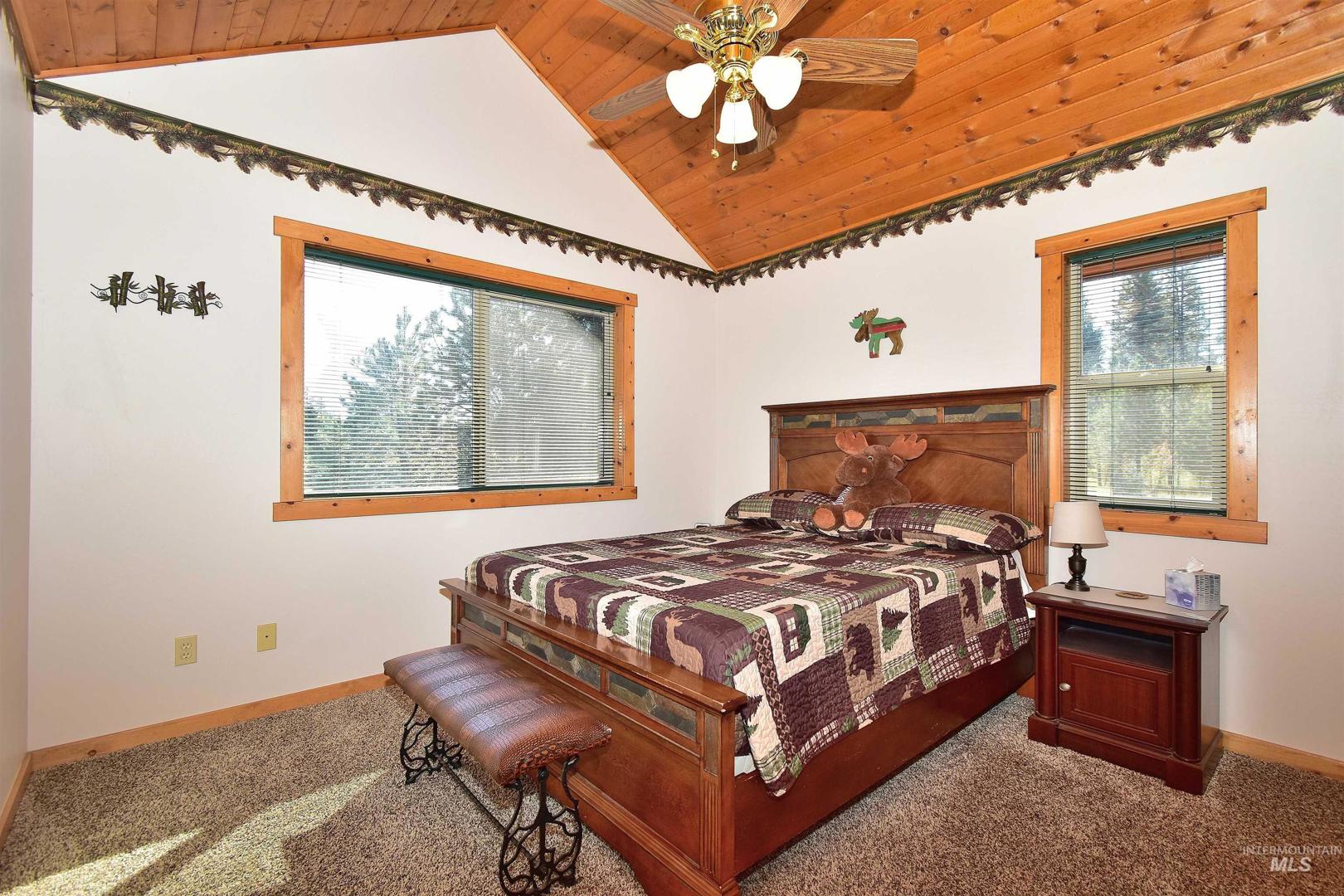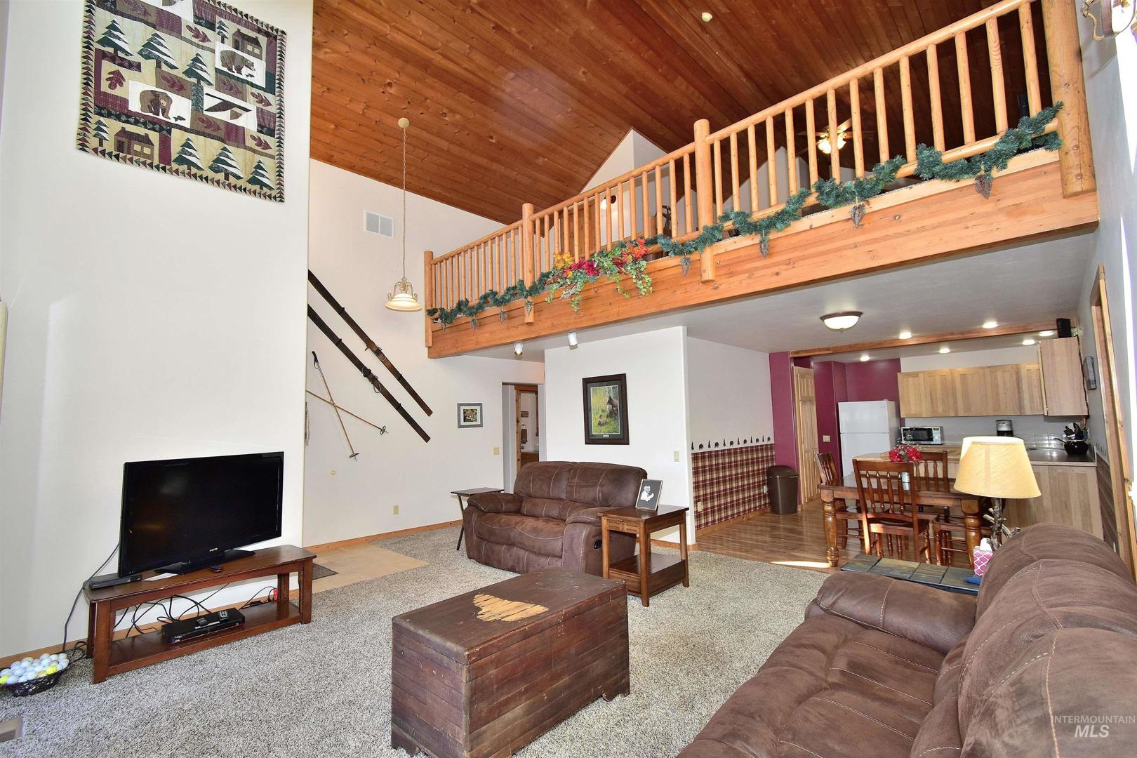 Welcome to this move-in ready home nestled in the exclusive Meadowcreek golf community. This fully furnished property boasts a great room with a stunning 2-story vaulted ceiling and expansive windows offering breathtaking mountain views. The layout is ideal for hosting friends and family, featuring 2 main level bedrooms with 2 full bathrooms, plus a spacious loft with another full bathroom and walk-in closet, perfect as an additional bedroom or bonus space. Exterior just stained this past summer. Relax with your favorite drink on the covered front deck sitting on a .69-acre lot across from the 15th fairway, while enjoying views of passing wildlife. The community offers amazing amenities, including an 18-hole golf course, swimming pool, pickleball, tennis courts, a stocked pond, and is located less than 30 minutes from Brundage Ski Resort. It`s the perfect home for year-round living or a weekend retreat!