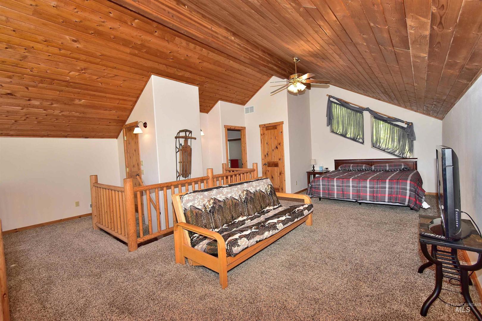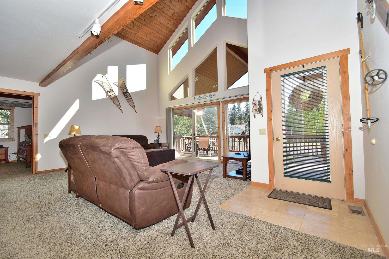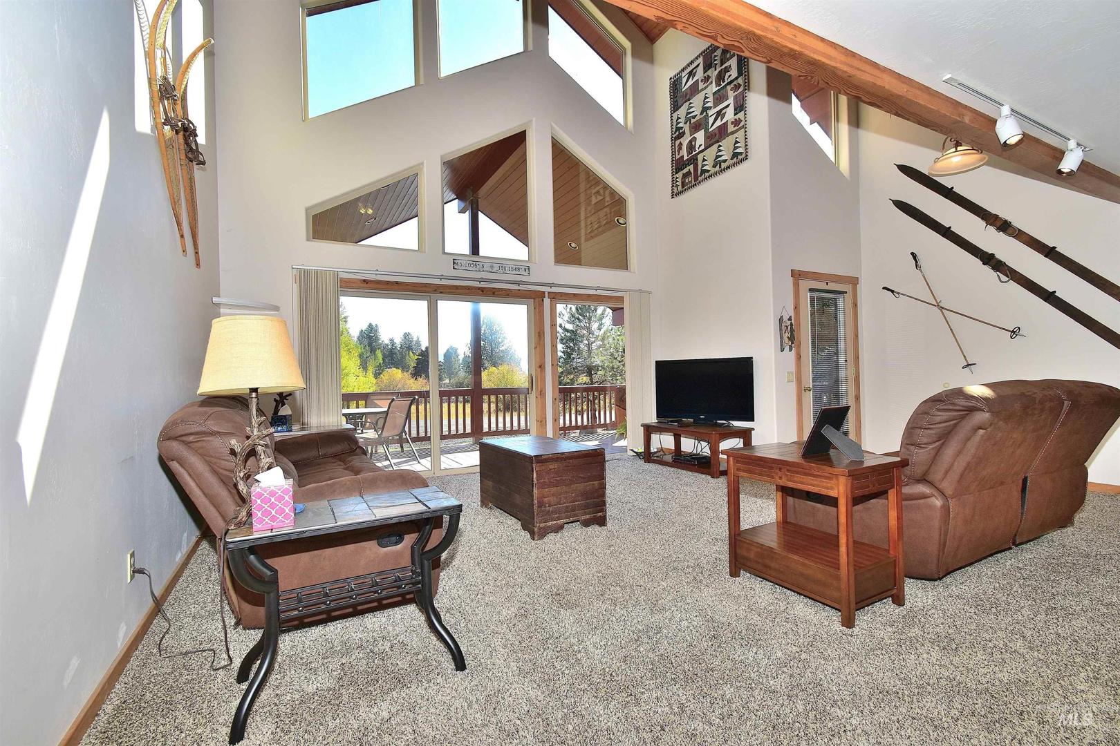 Welcome to this move-in ready home nestled in the exclusive Meadowcreek golf community. This fully furnished property boasts a great room with a stunning 2-story vaulted ceiling and expansive windows offering breathtaking mountain views. The layout is ideal for hosting friends and family, featuring 2 main level bedrooms with 2 full bathrooms, plus a spacious loft with another full bathroom and walk-in closet, perfect as an additional bedroom or bonus space. Exterior just stained this past summer. Relax with your favorite drink on the covered front deck sitting on a .69-acre lot across from the 15th fairway, while enjoying views of passing wildlife. The community offers amazing amenities, including an 18-hole golf course, swimming pool, pickleball, tennis courts, a stocked pond, and is located less than 30 minutes from Brundage Ski Resort. It`s the perfect home for year-round living or a weekend retreat!