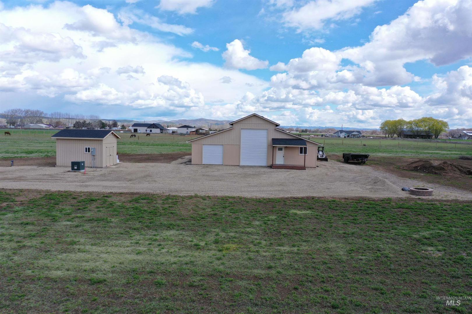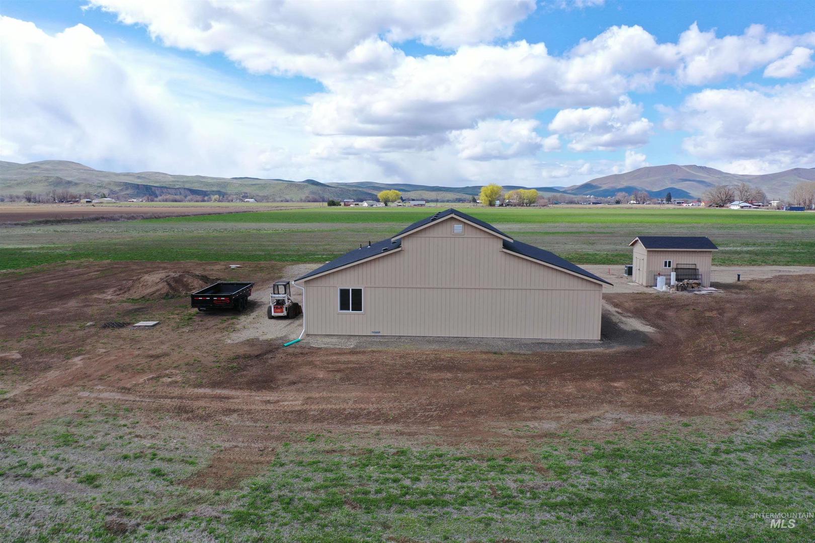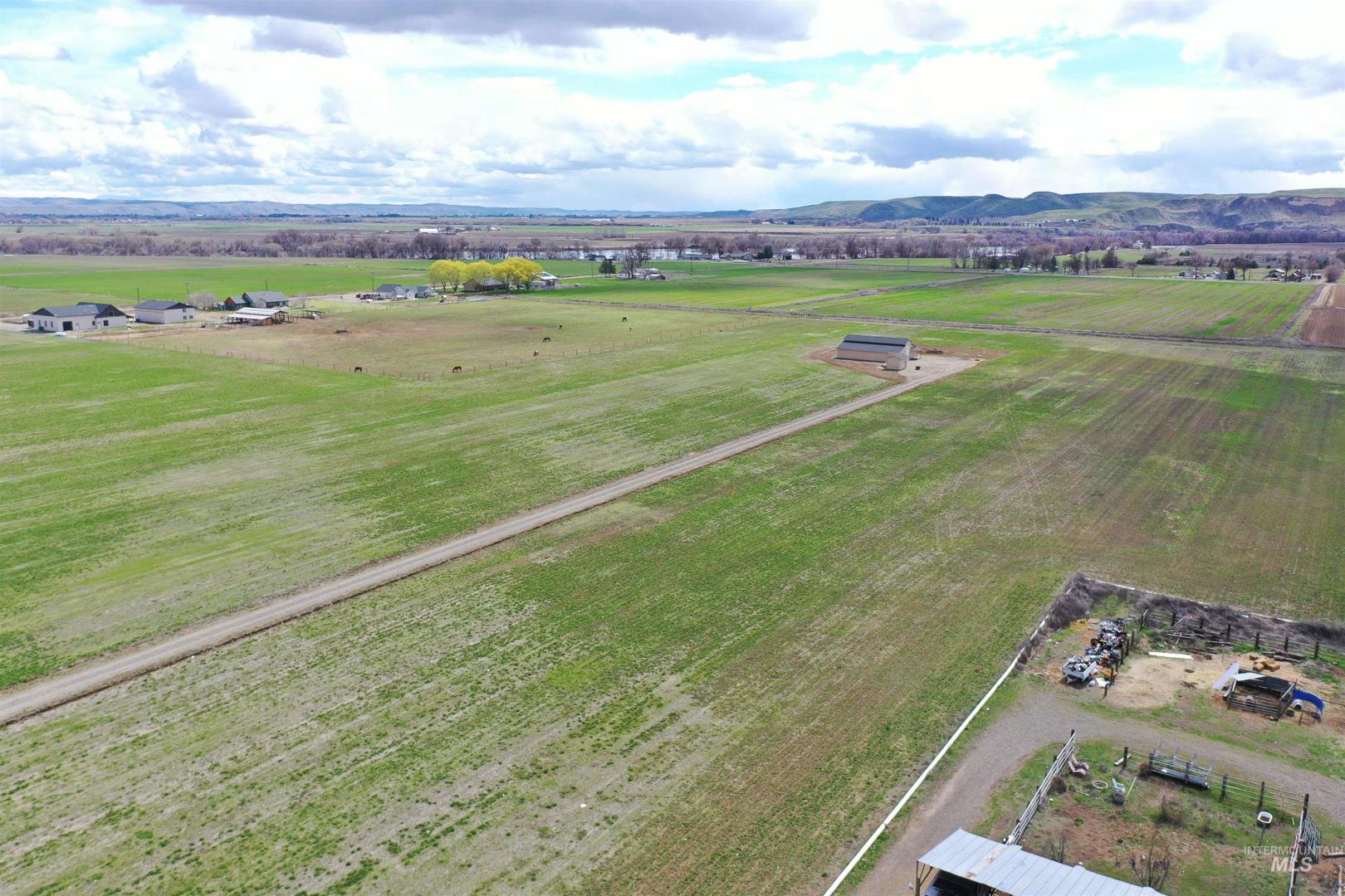 Build your dream home on 20.65 acres of prime farmland in Weiser, offering stunning views in every direction. Includes water rights. A 47x60 Monitor-style outbuilding has potential for a shop or barndominium. Electricity, well, and septic (approved for up to a 4-bedroom home) are in place. The insulated section features finished sheetrock, lights, heat, A/C, and a full bathroom. The building also includes two 16x60 enclosed bays, a 10x15 insulated storage room, and a 10x15 loft. A large well/pump house with solar and an on-demand pump is included. The property can be fenced for livestock or horse boarding. Located just a mile from Boat Dock Rd and Snake River access, the quiet building site sits 1,000 ft off Haas Rd. Abundant wildlife, including deer and pheasants. Bring a full price offer and keep the tractor with 3 implements! Per seller and Washington County, property may be eligible to split which would have its own building right. Buyer to verify with the county.