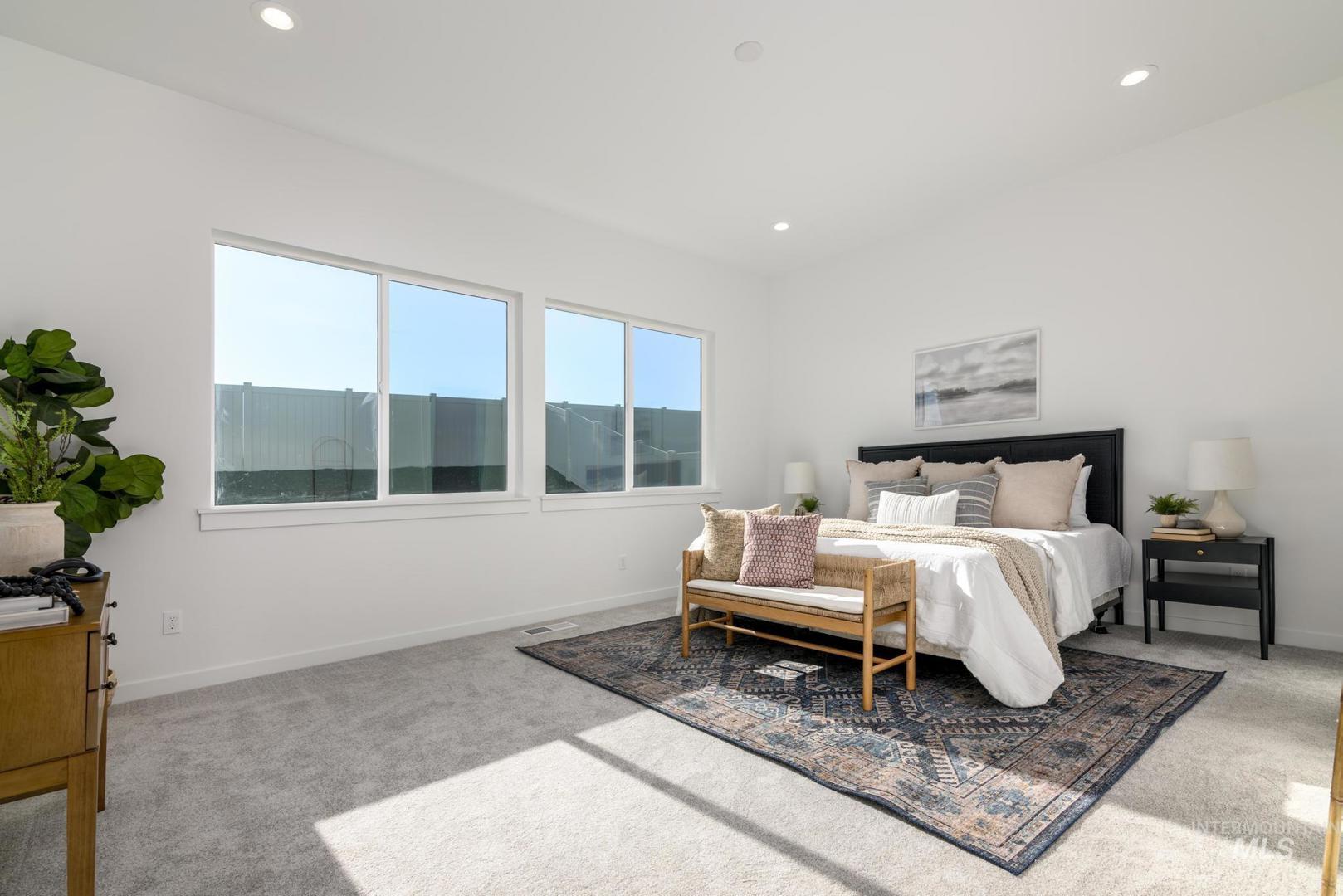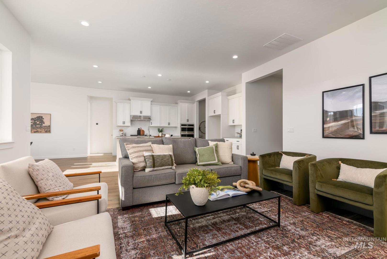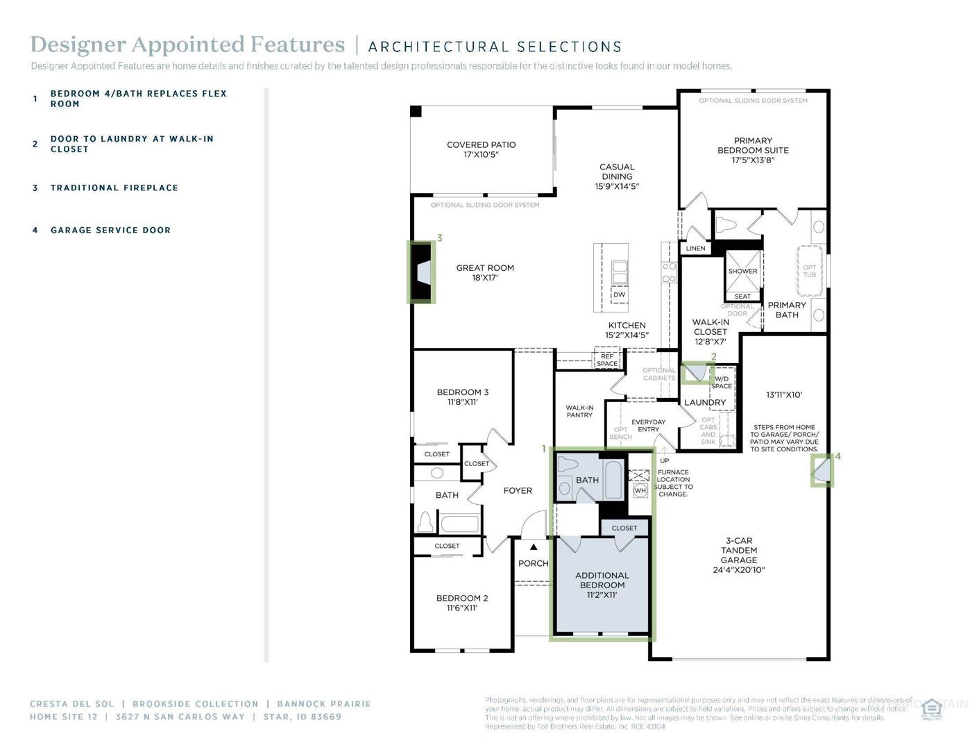 "The Bannock" exudes contemporary comfort and functionality, exemplified by its thoughtfully crafted single-story layout. A long foyer sets the stage, leading to a spacious great room seamlessly connected to the kitchen, casual dining area, and covered patio—an ideal setting for gatherings and relaxation. The kitchen is centered around a striking large center island and enhanced by its expansive walk-in pantry. The primary bedroom suite, nestled in the rear of the home, features a serene sanctuary complete with a luxurious walk-in closet and a primary bath with separate vanities, and a luxe shower. Off the foyer, three secondary bedrooms and two hall bathrooms offer privacy and comfort. 3 car garage. Front and rear landscape included. Home is under construction and photos are similar. BTVAI