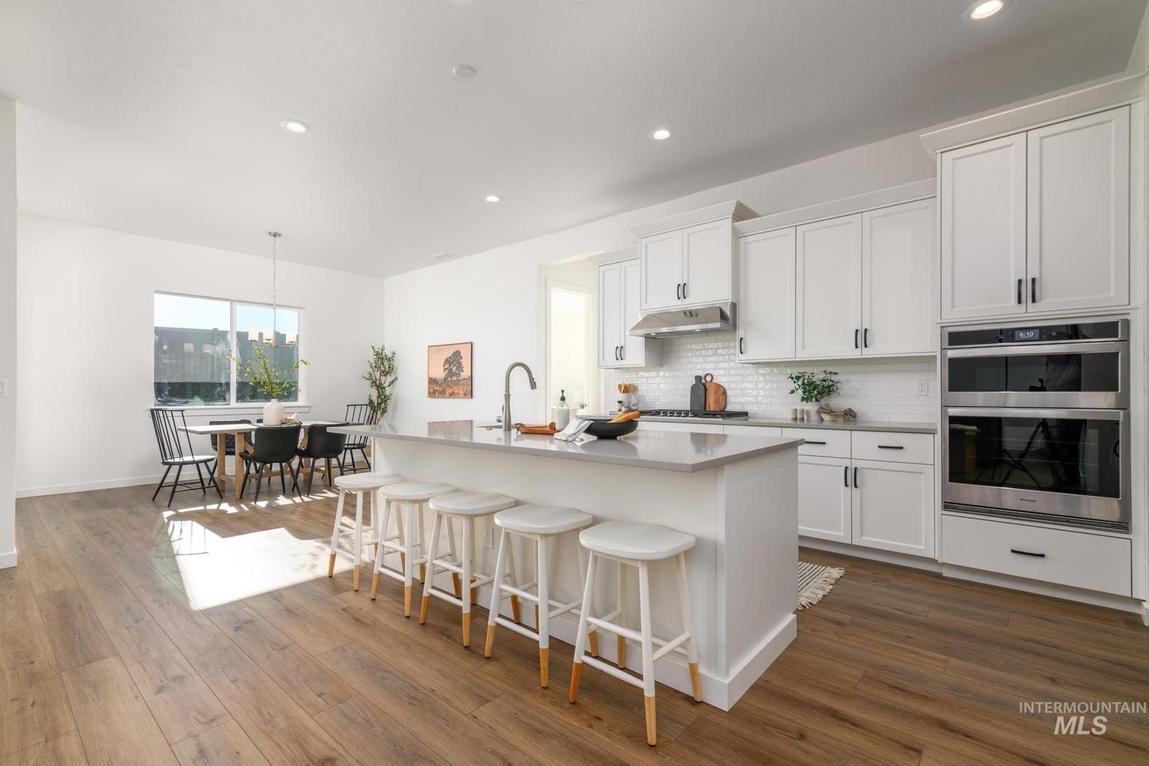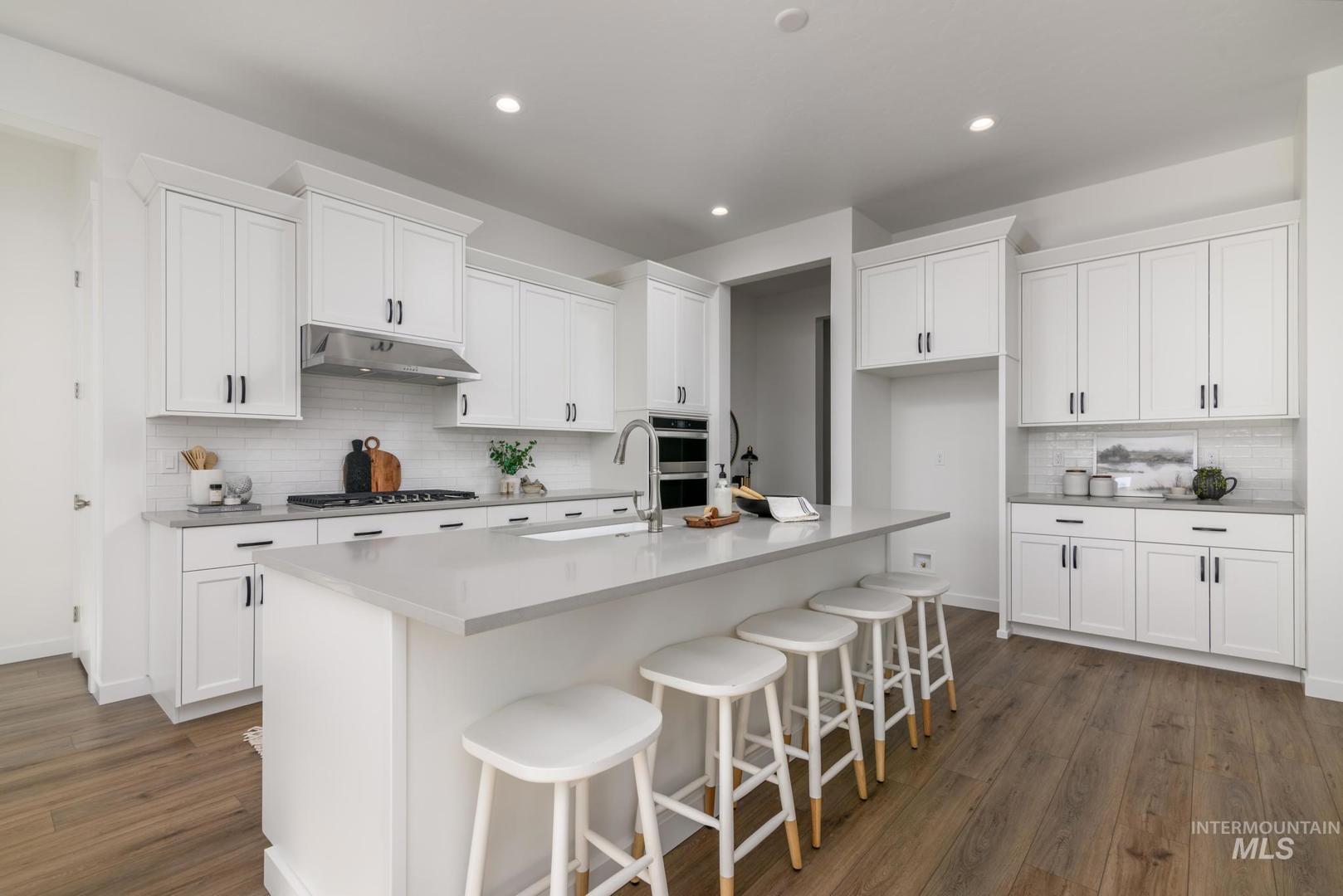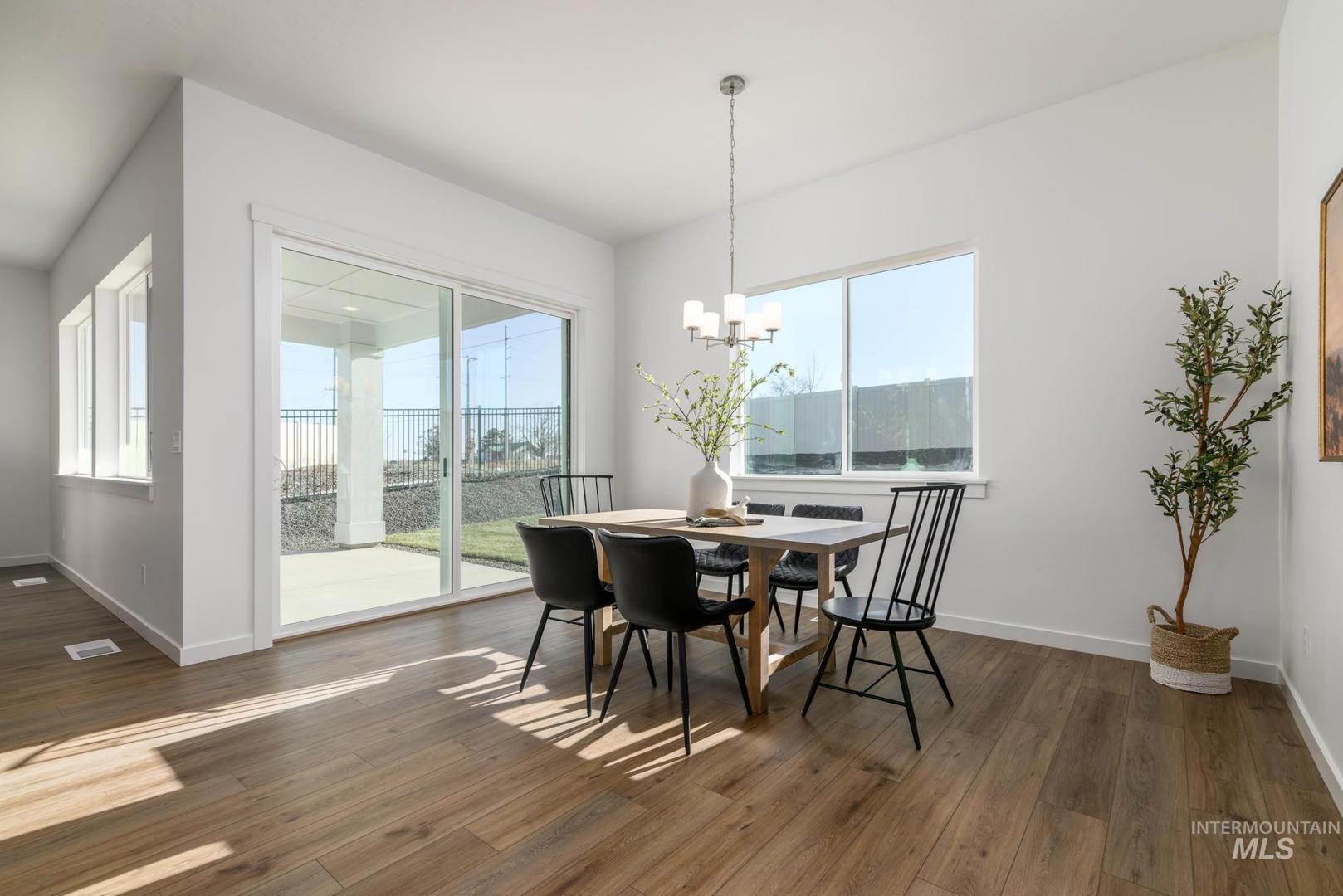 "The Bannock" exudes contemporary comfort and functionality, exemplified by its thoughtfully crafted single-story layout. A long foyer sets the stage, leading to a spacious great room seamlessly connected to the kitchen, casual dining area, and covered patio—an ideal setting for gatherings and relaxation. The kitchen is centered around a striking large center island and enhanced by its expansive walk-in pantry. The primary bedroom suite, nestled in the rear of the home, features a serene sanctuary complete with a luxurious walk-in closet and a primary bath with separate vanities, and a luxe shower. Off the foyer, three secondary bedrooms and two hall bathrooms offer privacy and comfort. 3 car garage. Front and rear landscape included. Home is under construction and photos are similar. BTVAI