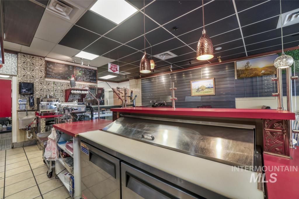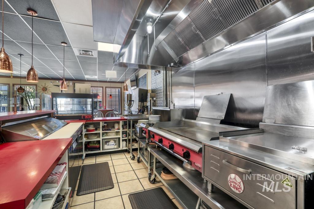Live in the back and run your business in the front! Located in the heart of Buhl, Idaho, this versatile building is the perfect spot to open a restaurant or business of your choice. The front space features newer windows, seating for 50+, LED lighting, tile floors, a prep kitchen with a gas stove, stainless backsplash, and a massive new range hood that will impress. An all-new addition includes a private studio apartment with alley access and parking. The studio offers its own kitchen with a gas range, washer/dryer, and modern finishes—ideal for owner occupancy, staff housing, or rental income. The opportunities here are endless!