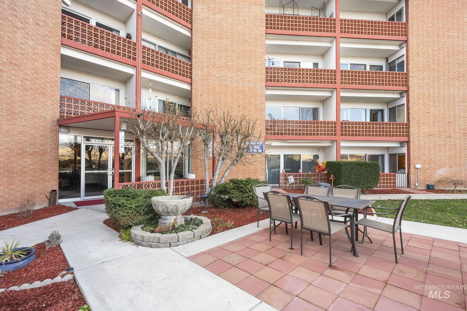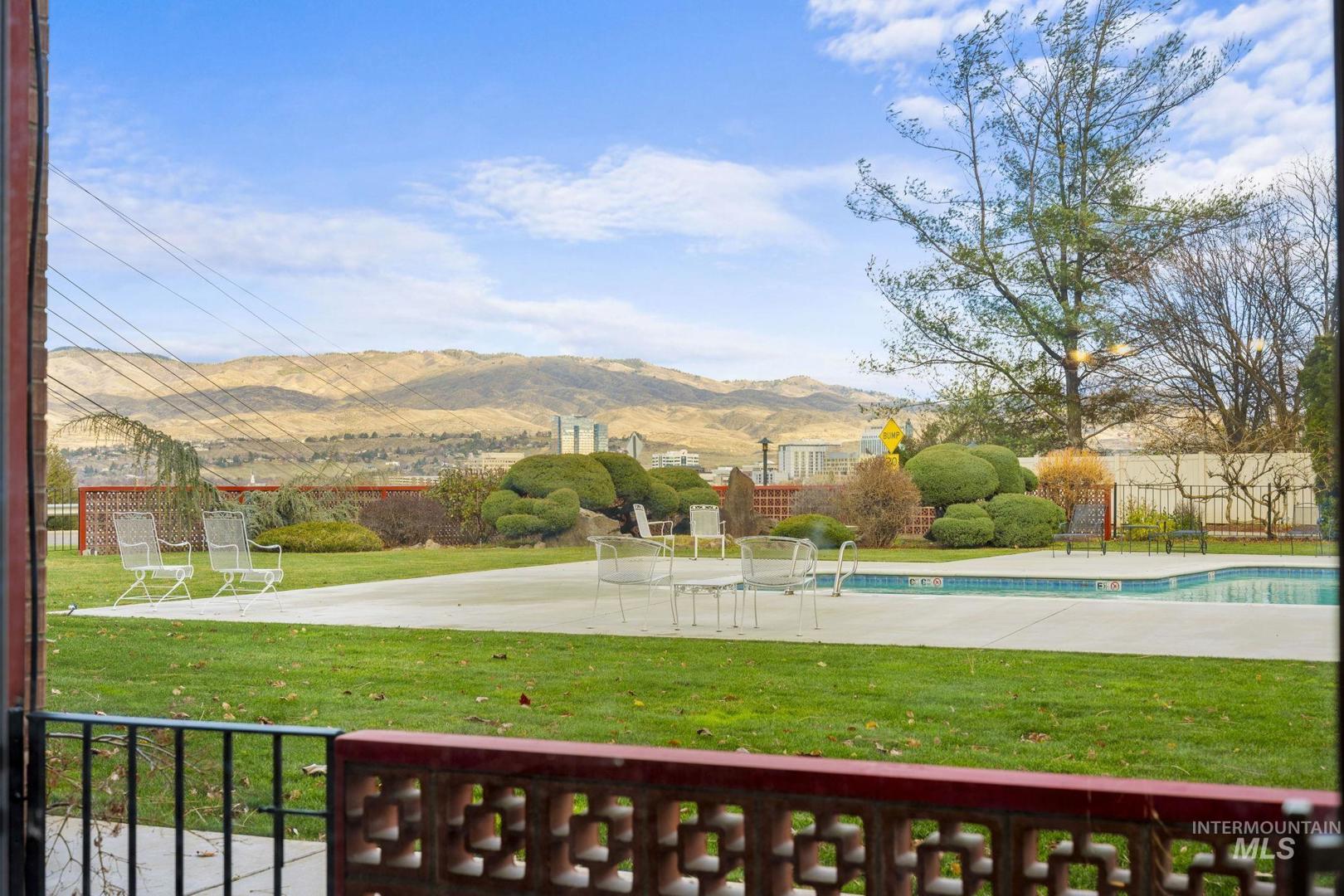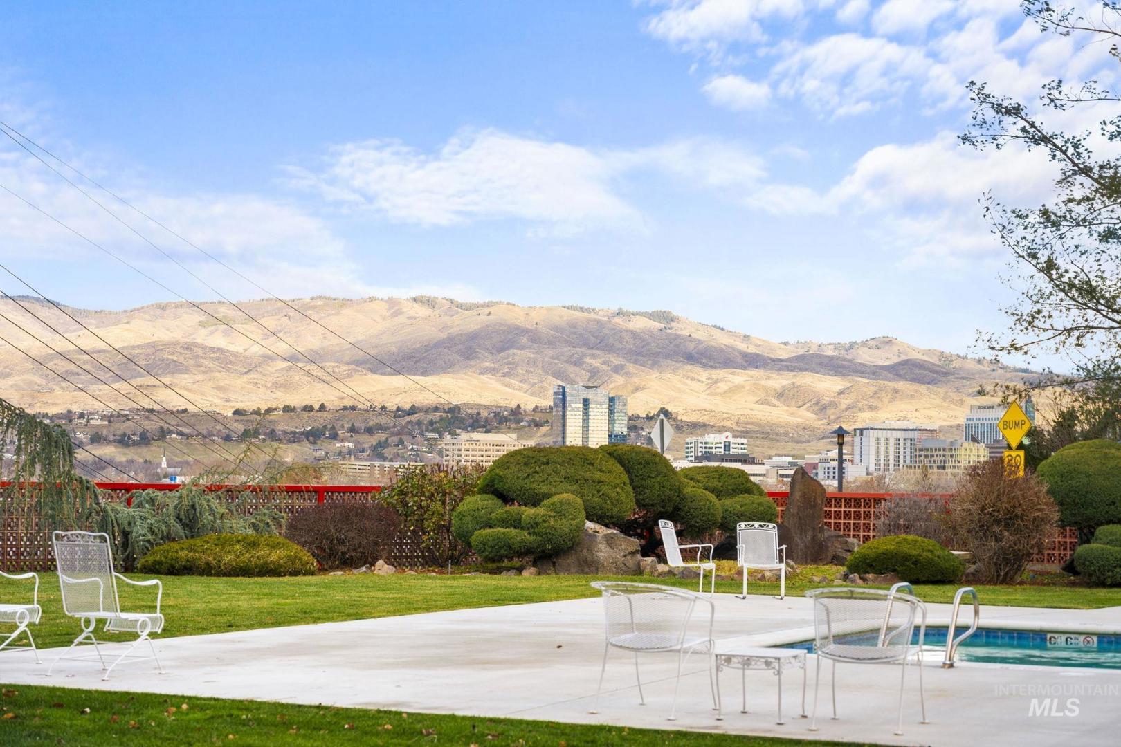 Experience elevated urban living in this iconic 1964 downtown Boise condominium, where timeless architecture meets modern ease. This thoughtfully designed 926 sq ft, 2-bedroom, 1-bath residence is ideally positioned on the ground floor, offering seamless access while capturing sweeping views of the city skyline and foothills. Natural light fills the living space, with sliding glass doors opening to a private patio that extends into a beautifully curated common courtyard and resort-style swimming pool—an elegant retreat in the heart of the city. This secured, four-story building offers a refined lifestyle with elevator access to downstairs laundry area, covered parking, private storage, and professionally maintained grounds. The comprehensive HOA package enhances everyday living by covering all utilities, including water, sewer, trash, heating, cooling, internet, building maintenance, and amenities—allowing for effortless, lock-and-leave convenience. Perfectly situated just moments from downtown Boise’s premier dining, boutique shopping, cultural venues, and nightlife, this residence offers the ideal balance of sophistication, comfort, and location. A rare opportunity for luxury, simplicity, and iconic downtown living—designed for those who value quality, convenience, and timeless appeal.
