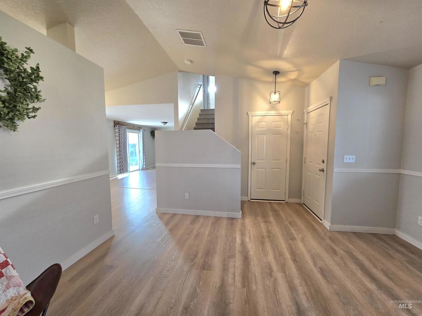 Home Based Business Owners, this is an ideal setup for your separate entrance work area & parking! Come see the bang for your buck with this S Nampa home in a great location with no HOA or CCR’s. 3 bedrooms (all upstairs) 2.5 baths and 1602 sf. of living space (not including the 3rd bay of the garage that`s been converted to a bonus room/office with its own entrance- or it could be ideal for a teen area). Laminate plank throughout main area downstairs, upstairs bathroom renovated, HVAC & water heater + updated plumbing all within the past few years. Enjoy the existing living + family rooms, with two outdoor covered patios extending your space to the outdoors with comfort! Curbing, automatic sprinklers, fully fenced with a garden area & storage shed with room to park your trailer or work vehicle at your own house!