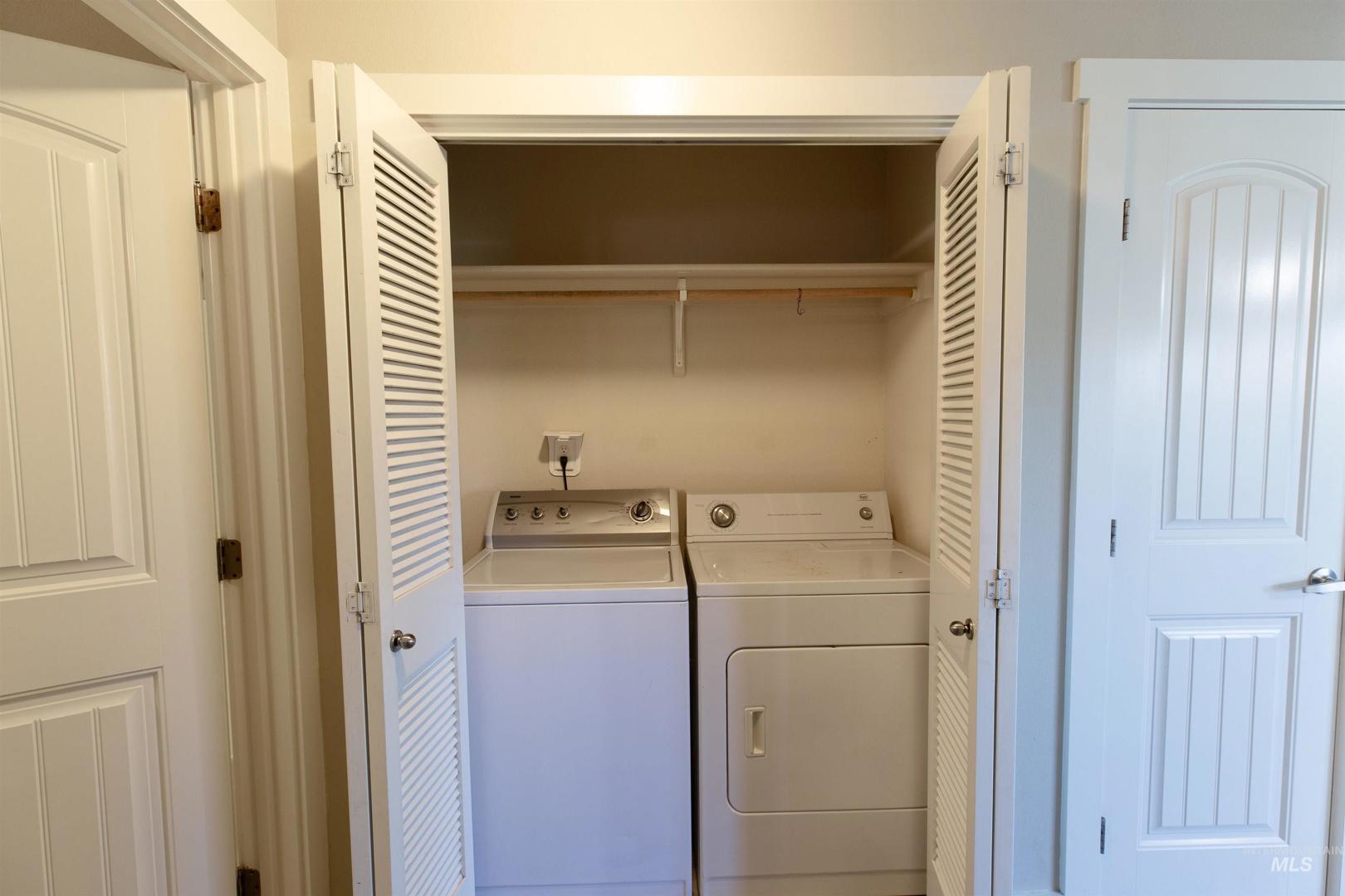 Welcome to this cute two-story unit w/spacious floorplan! Recently updated w/brand new carpet, mostly new interior paint, newer exterior paint & newer water heater (12/2023) & new laminate in downstairs bath. Inviting living room features cozy gas fireplace & ceiling fan, kitchen boasts tile flooring, granite counters & breakfast bar. Bright eating area with sliding door to a concrete back patio ideal for outdoor dining & entertaining. Main level bedroom, full bath w/new vinyl & in-unit laundry. Upstairs you`ll find another bedroom with a spacious walk-in closet & full bath. Located across from the community pool perfect for summer fun. All appliances (incl washer/dryer & refrigerator) included. The HOA covers water, sewer, trash, landscaping, and all exterior (including roof & paint) and pool maintenance. Fantastic central location close to downtown and Meridian with easy access to schools, shopping, dining & entertainment. TWO condo units for sale, next door to each other! 2nd unit is 3 bed, 2 bath #104. Call with any questions!