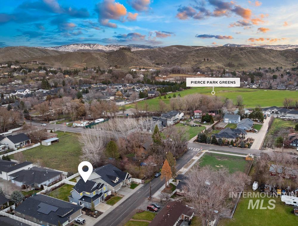Set in a quaint neighborhood with open land nearby and foothill views beyond, this meticulously maintained home offers a lifestyle that feels both peaceful and connected. Everything about the residence lives like new -- bright, fresh, and thoughtfully cared for. Inside, the livable layout is filled with natural light and clean finishes. The entryway welcomes you into an open great room with seamless flow from living to dining to kitchen, featuring Shaker cabinetry, quartz countertops, stainless steel appliances, a walk-in pantry, & a generous island for everyday meals and gathering. A gas fireplace warms the space and windows showcase the outdoors. A flexible main-level office provides a fourth bedroom option or quiet workspace. Three additional bedrooms are set privately upstairs, each with custom closet storage. The spacious primary suite offers tray ceilings, foothill views, & ensuite bath with soaking tub, dual vanity, and large walk-in closet. The backyard is a true highlight -- spacious, grassy, and fully fenced with a covered patio, lush greenery & foothill views. An oversized three-car garage with built-in storage adds functionality. Enjoy the best of Boise living - city convenience, rural views, and outdoor access. Close to foothill trails, Pierce Park Greens, neighborhood parks, the Greenbelt, and 15 minutes from downtown.